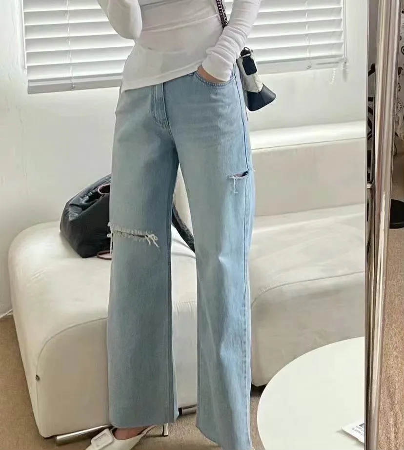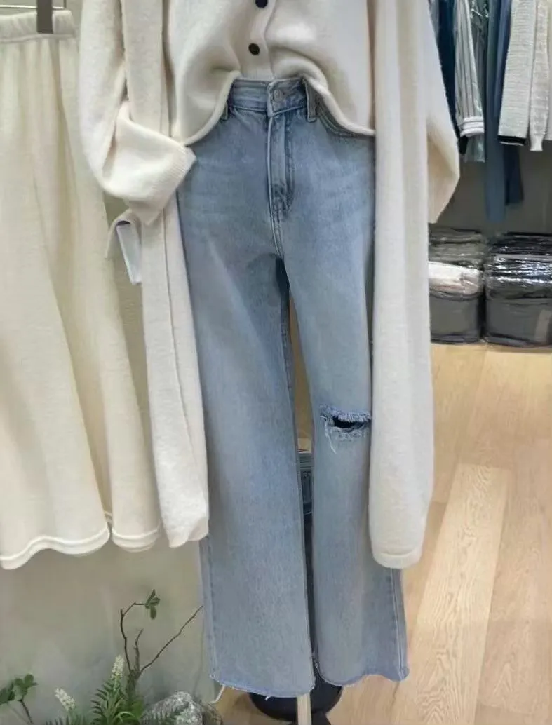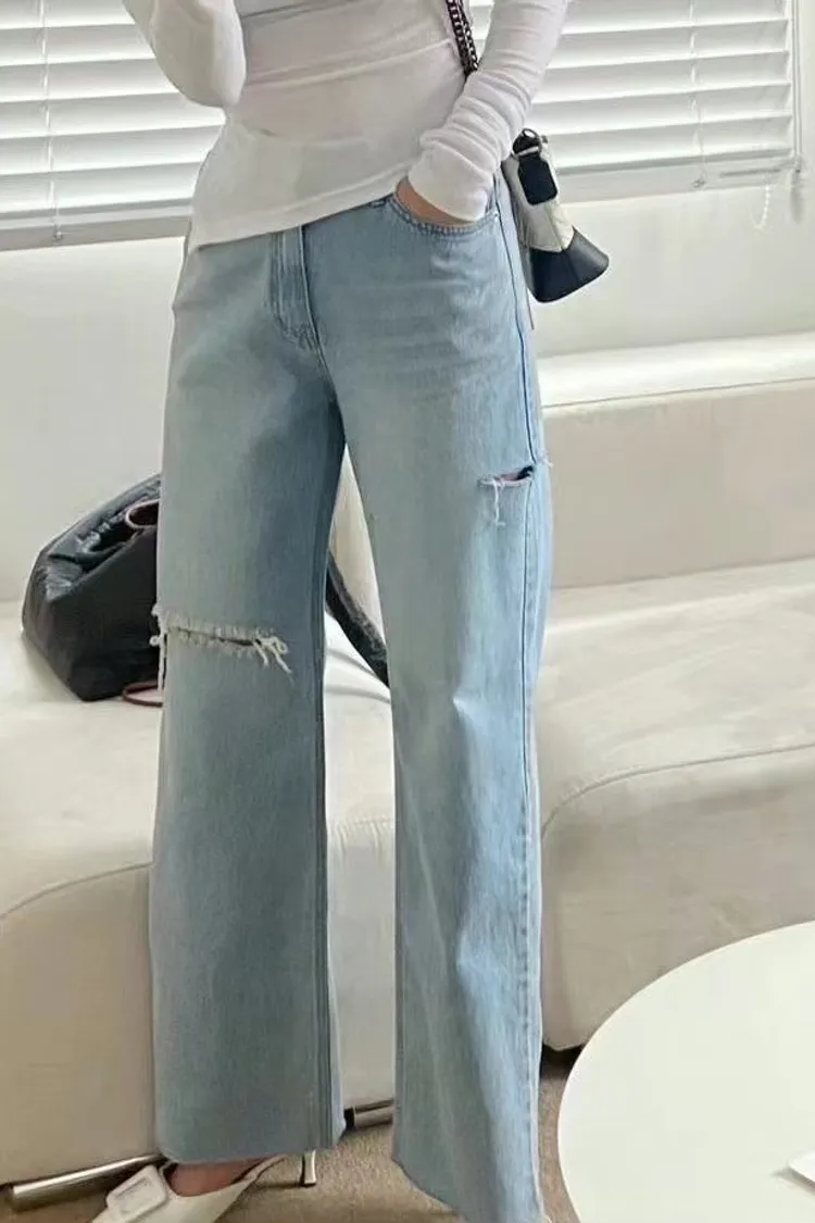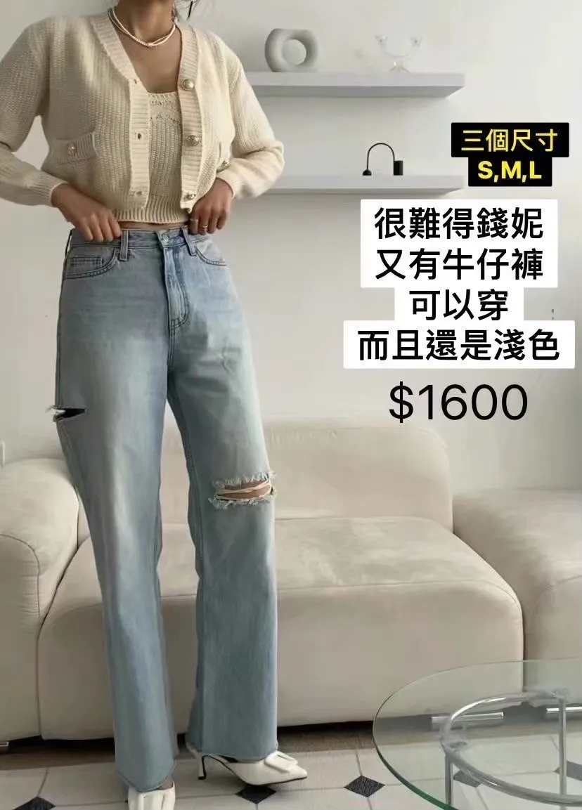 4-2隨性版型刷破垂墜牛仔褲