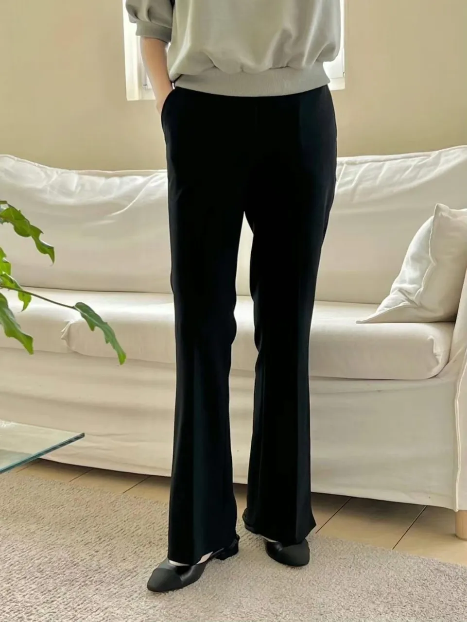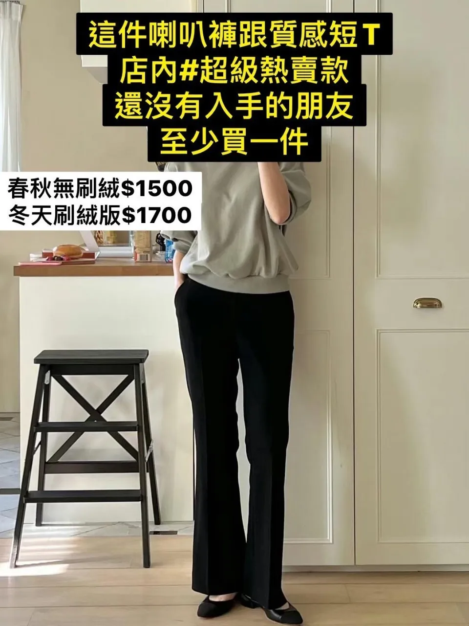 3-12彈性腰圍混紡喇叭內刷絨西裝褲