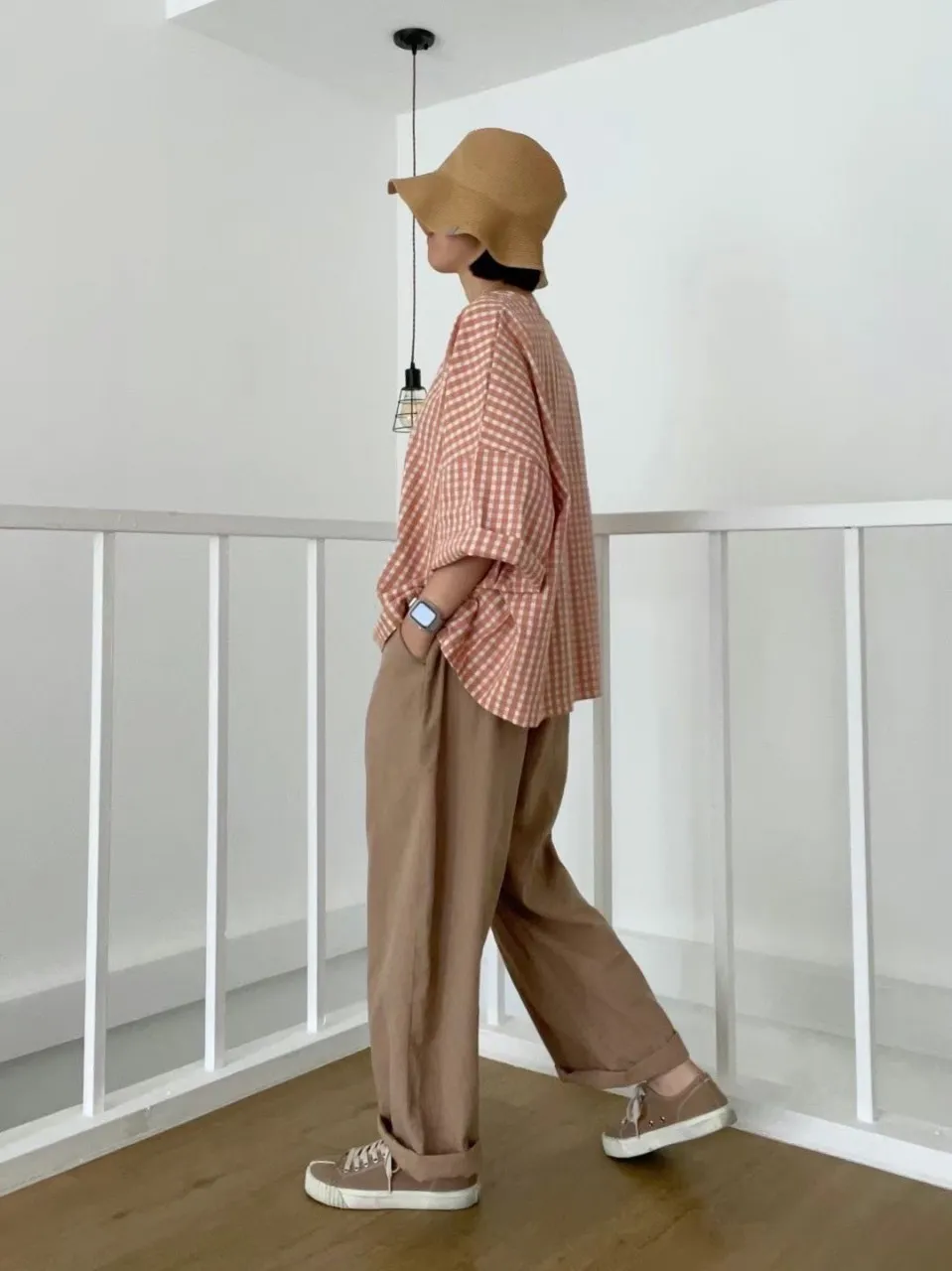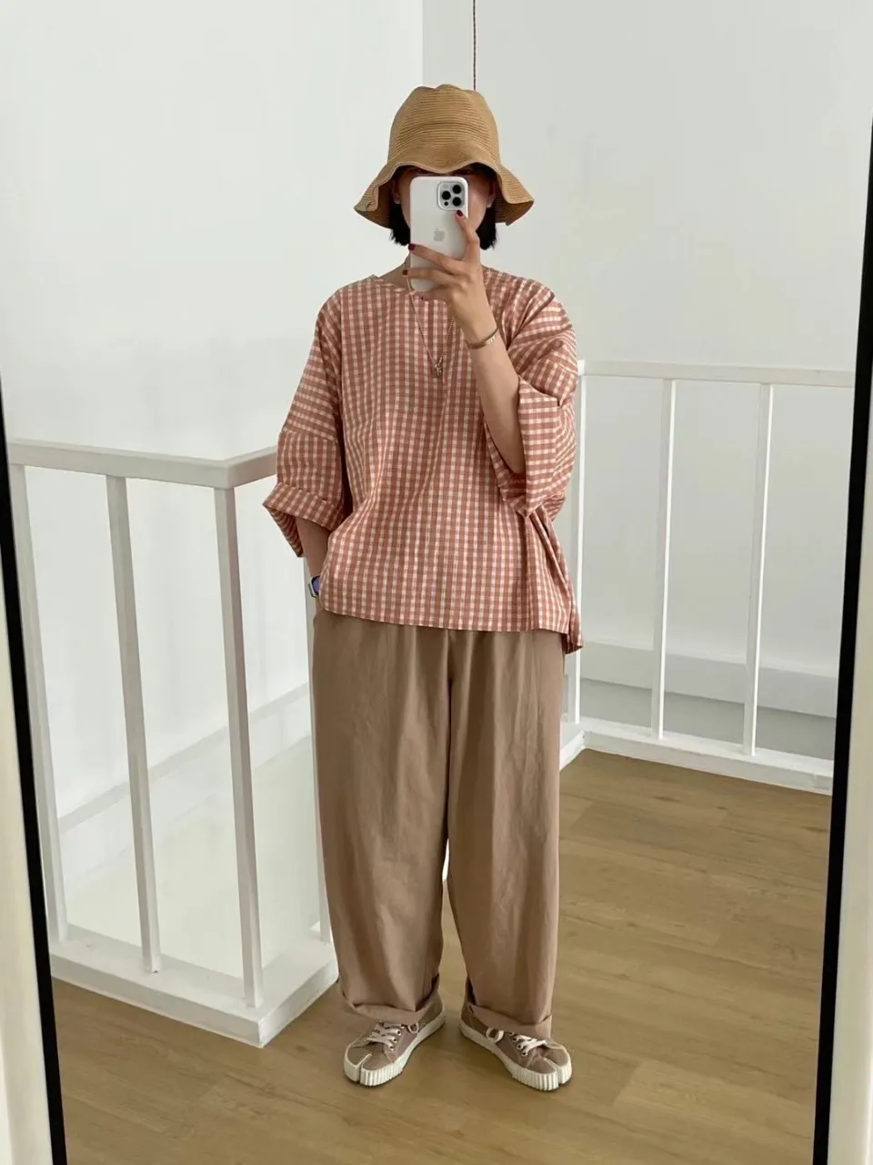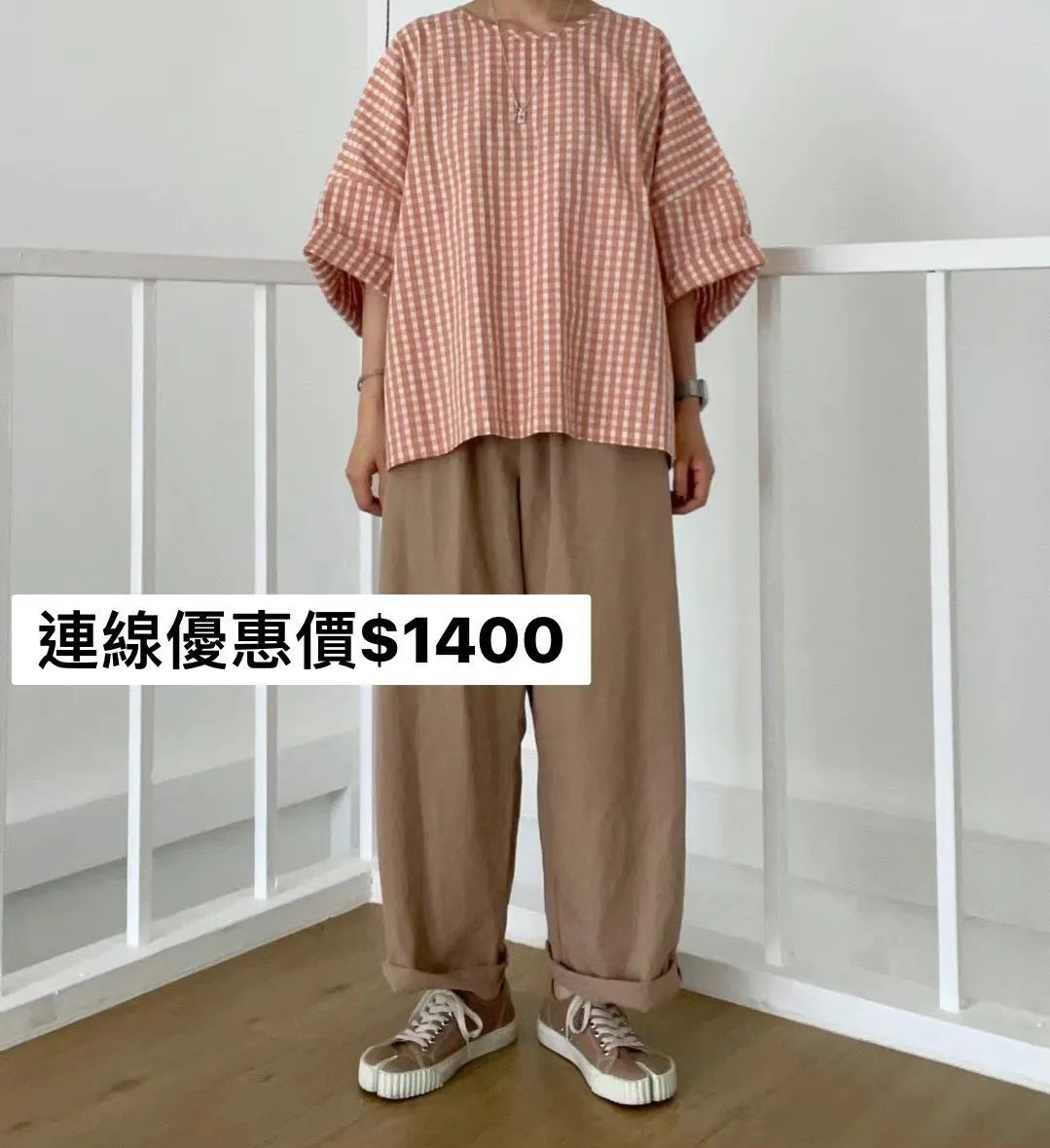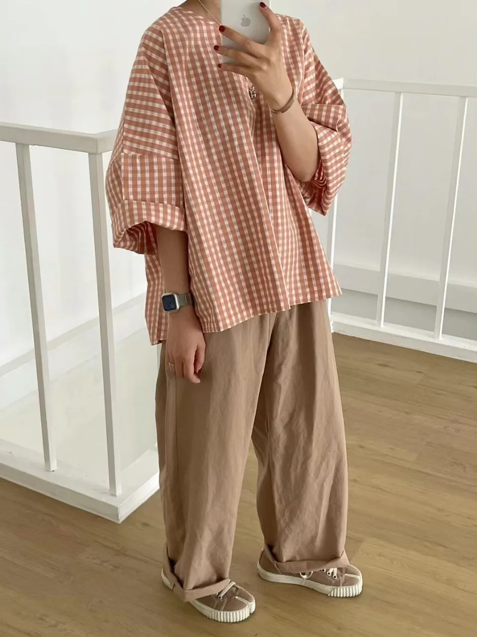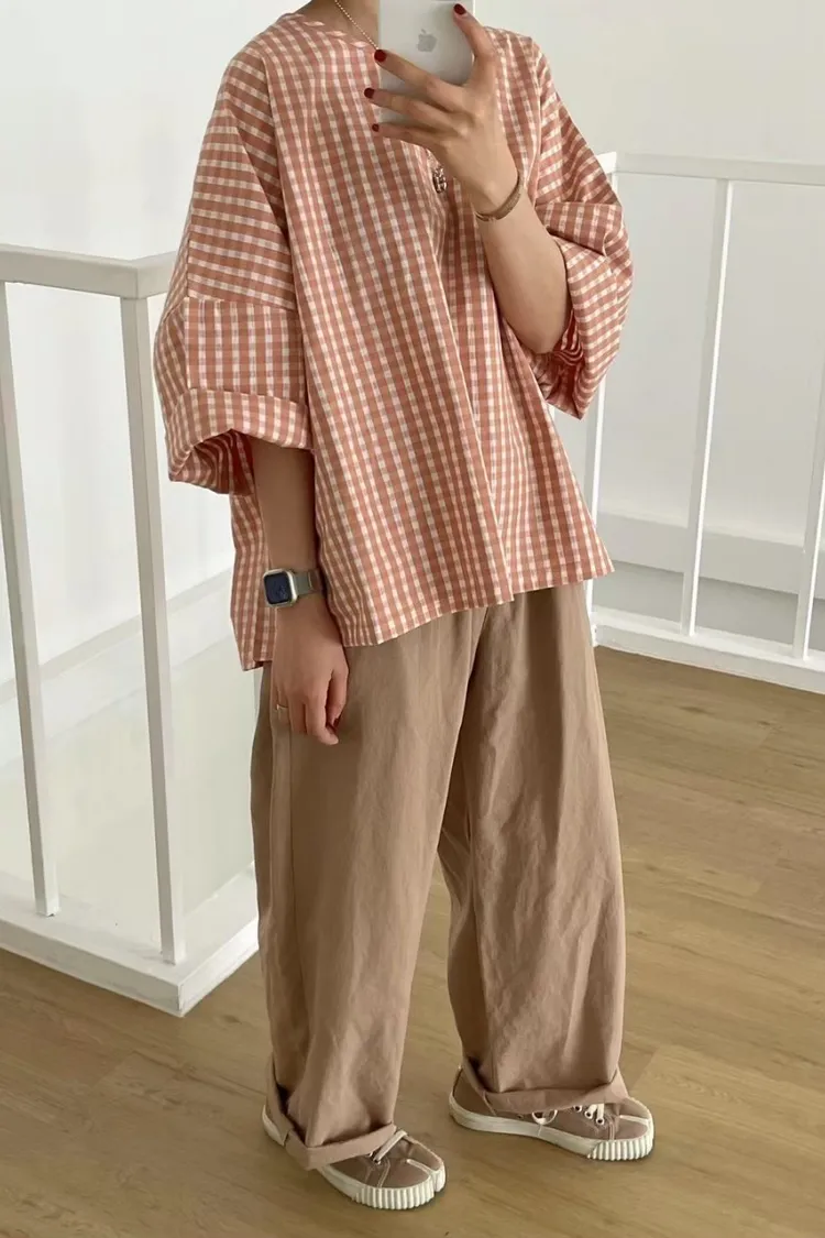 3-6經典小格寬鬆上衣