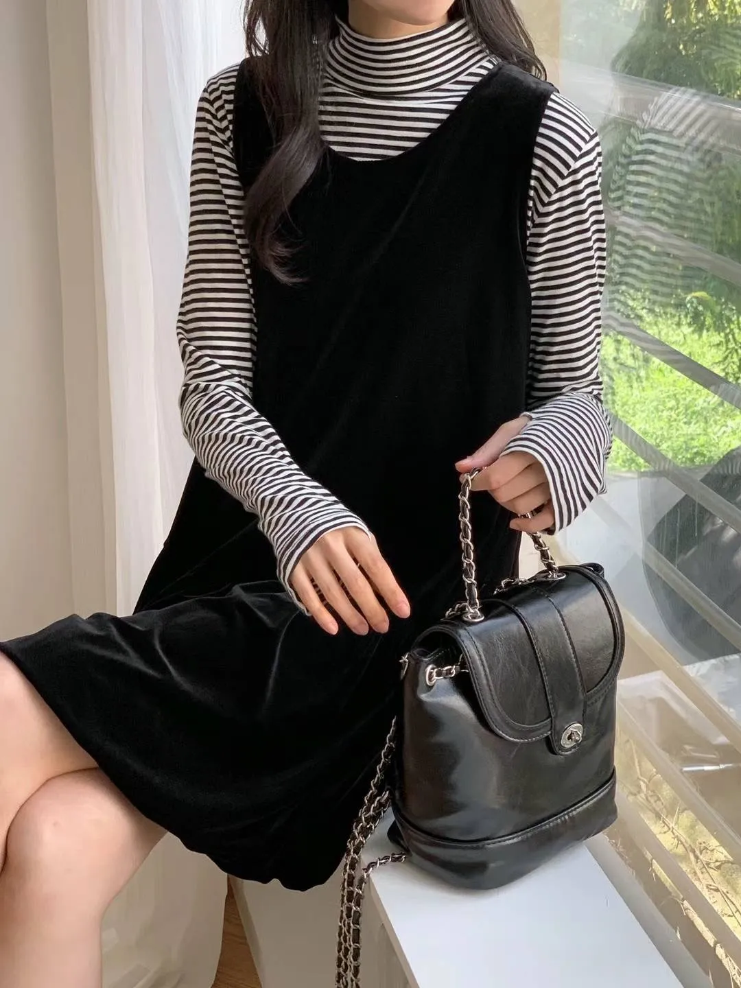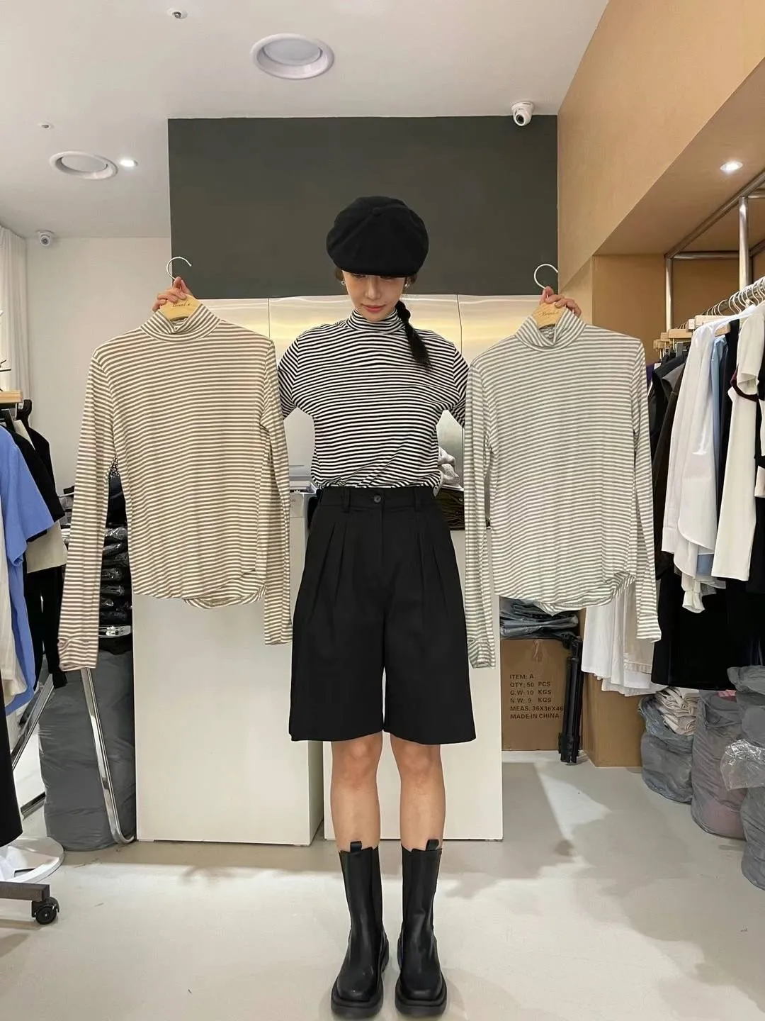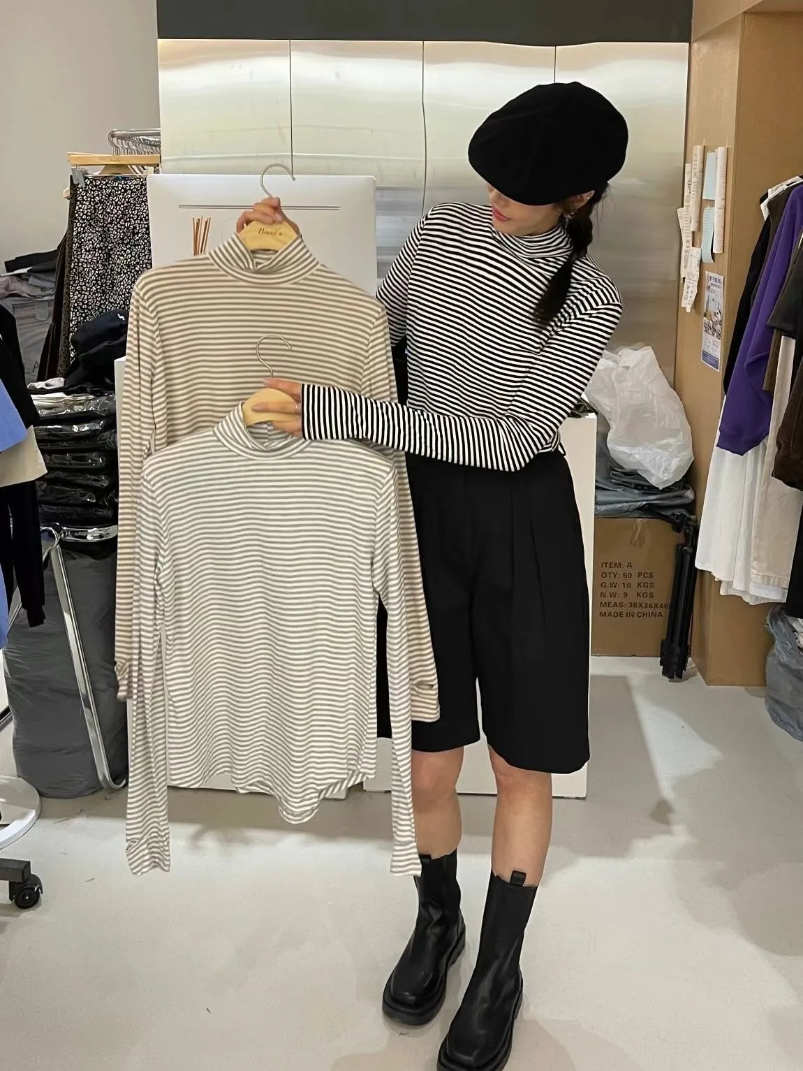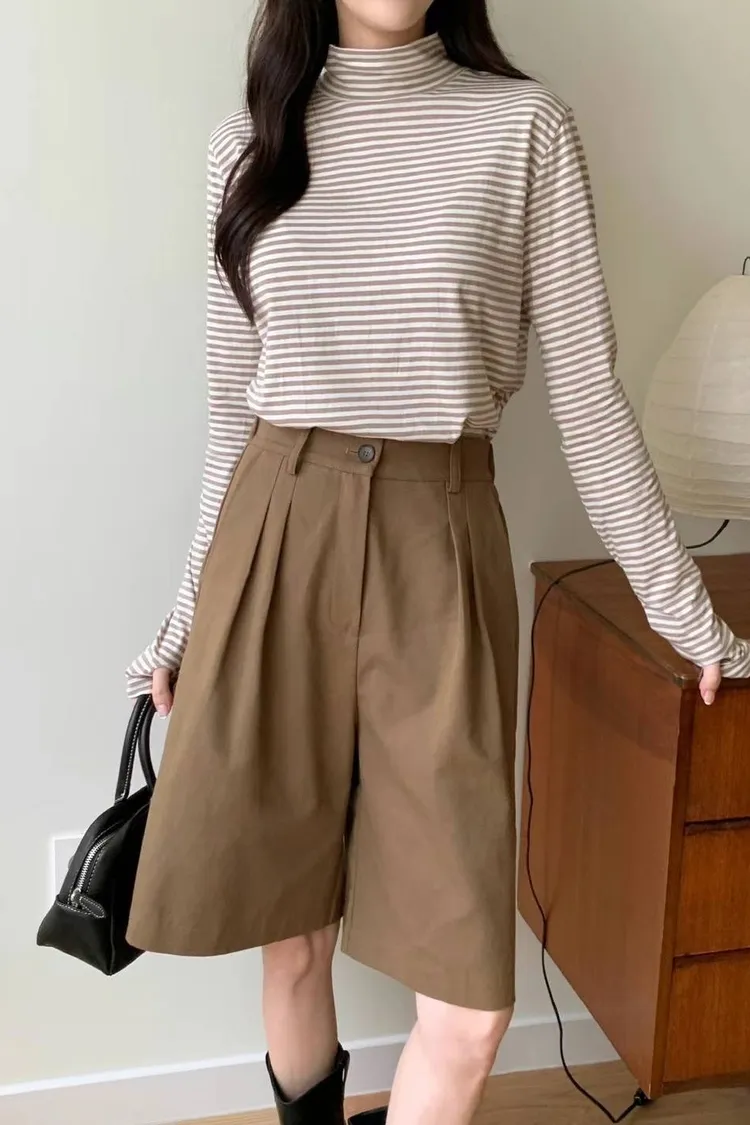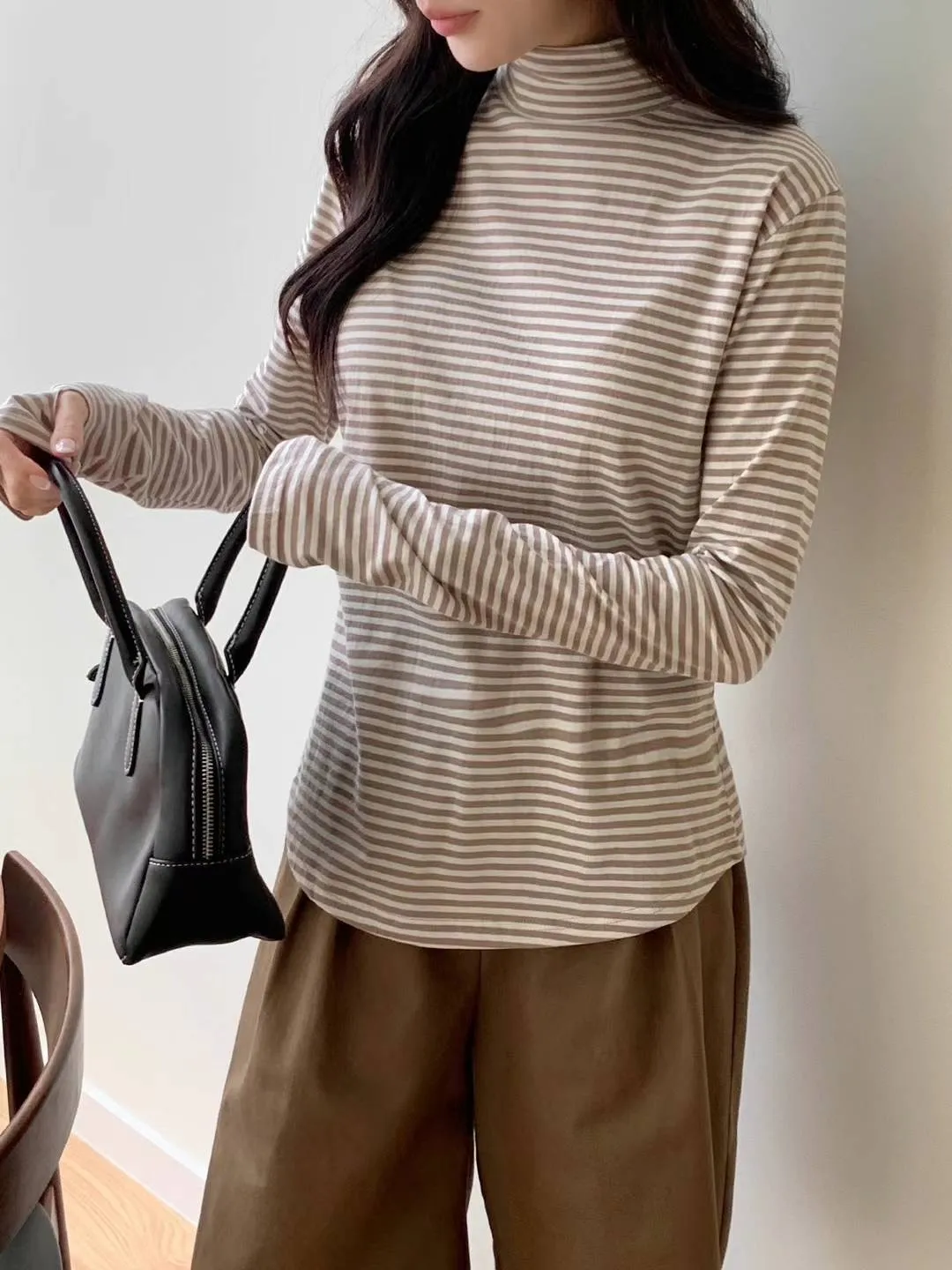 4-10高領橫條打底衣