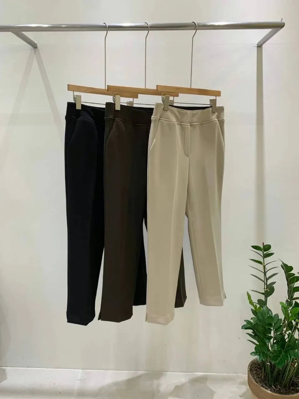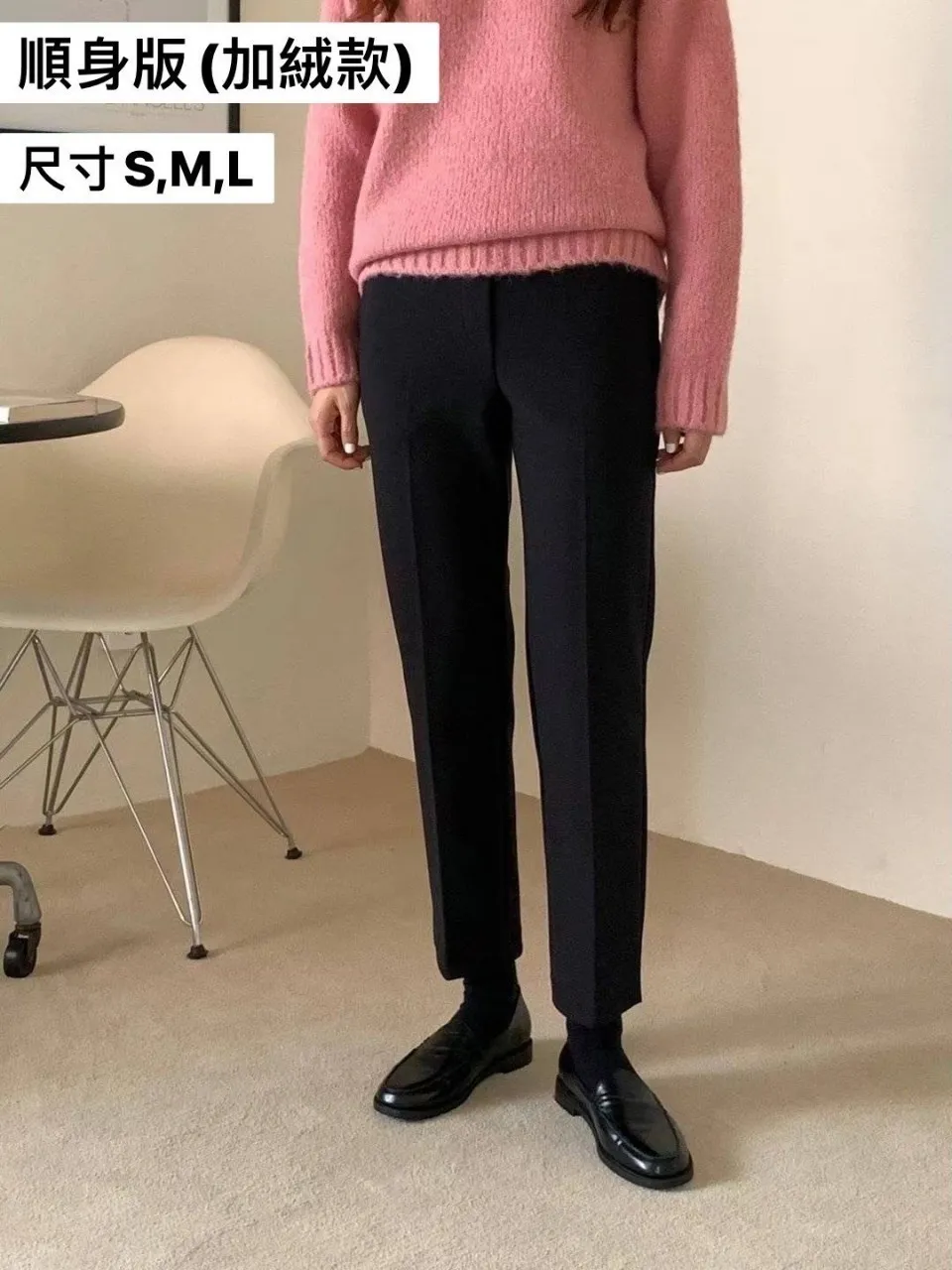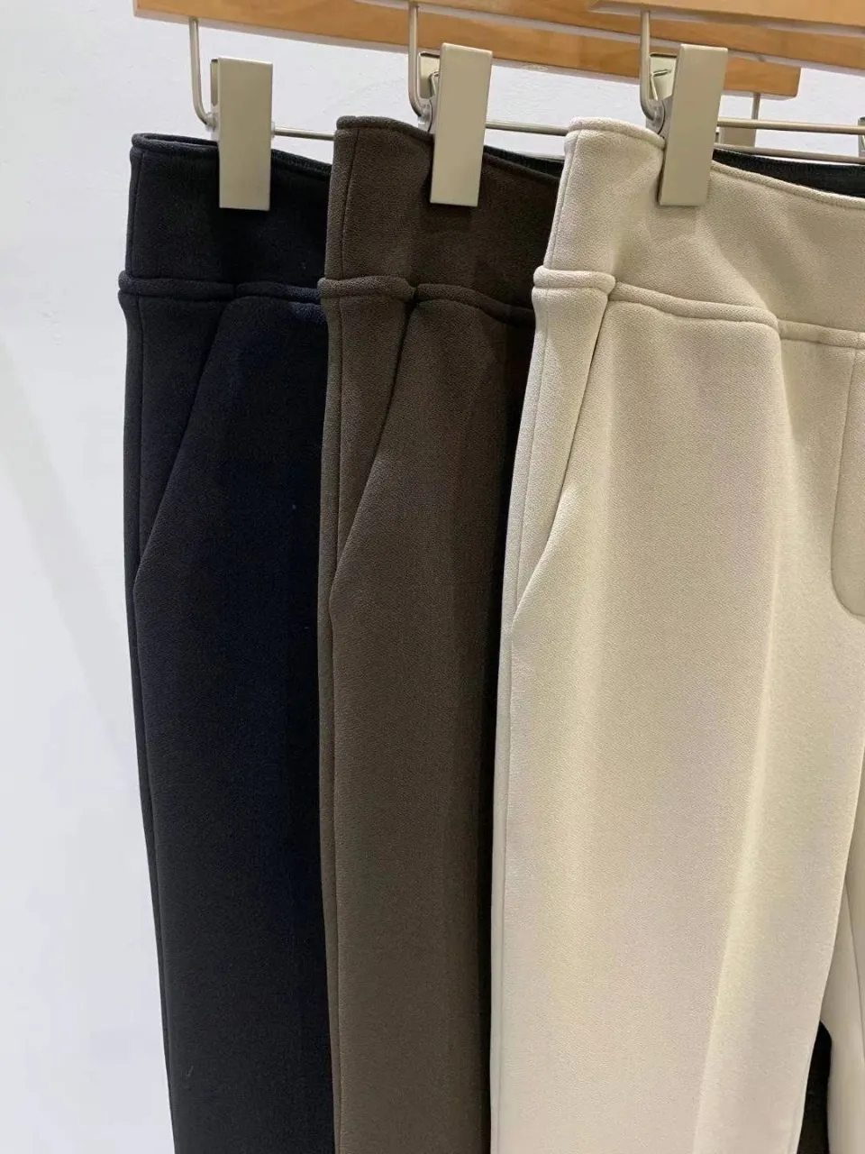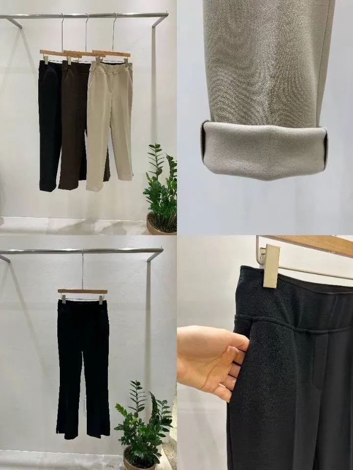 3-12彈性腰圍混紡喇叭內刷絨西裝褲