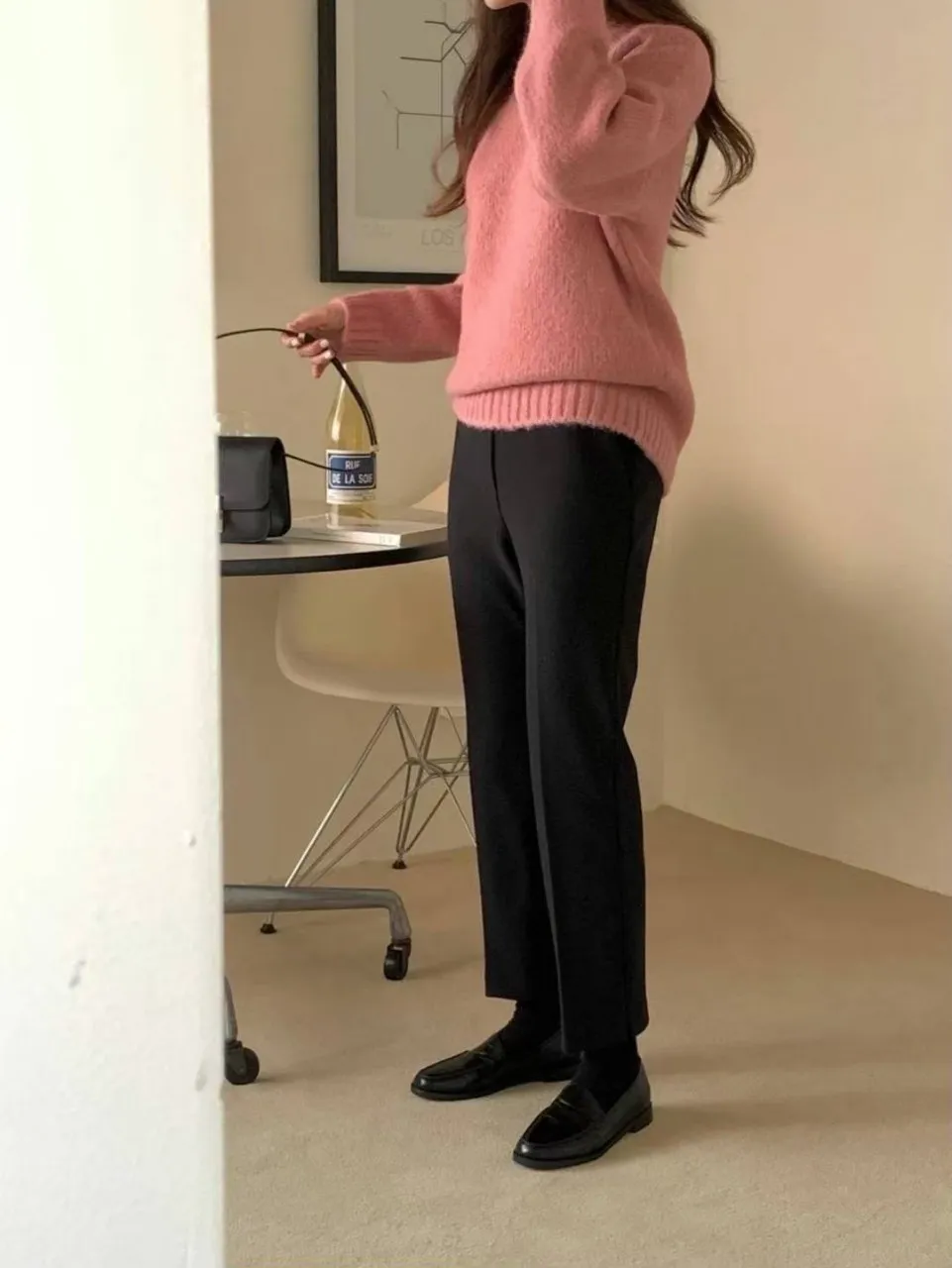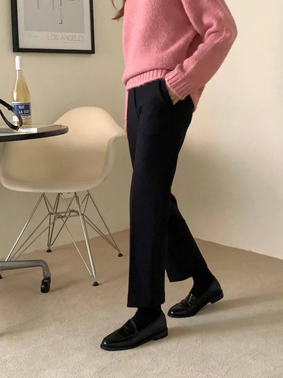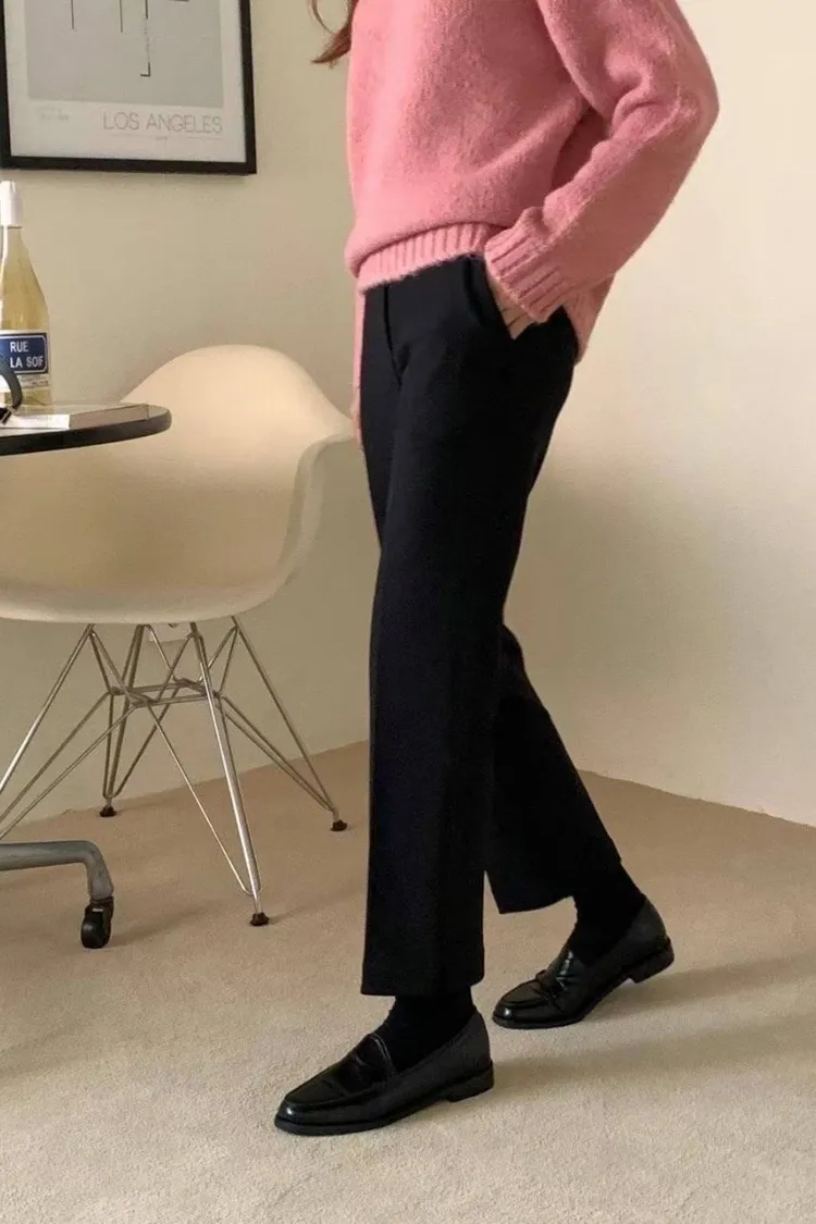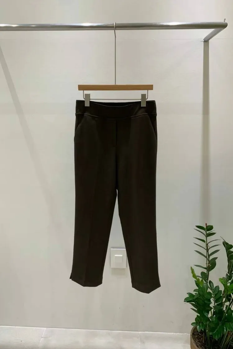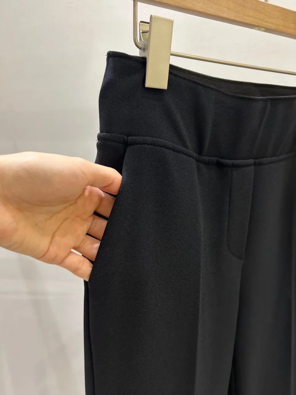 3-12彈性腰圍混紡喇叭內刷絨西裝褲