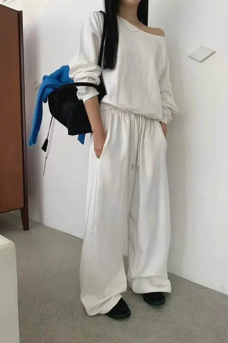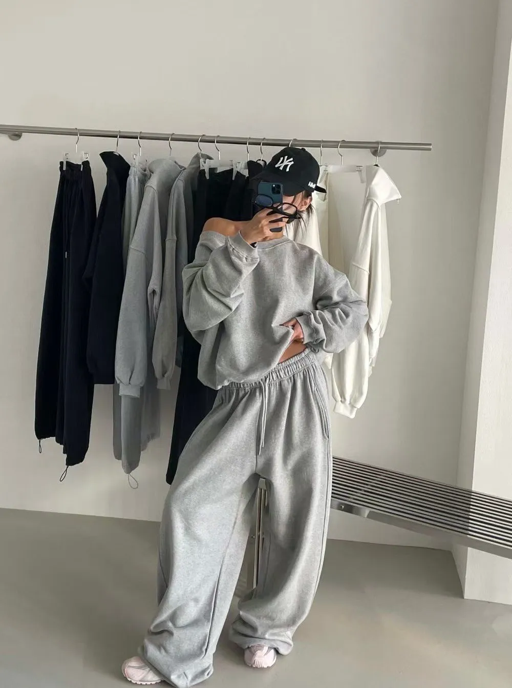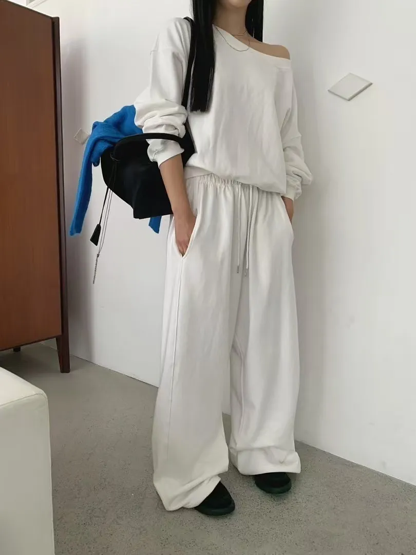 5-3大圓領棉質衛衣 鬆緊腰圍棉褲套裝