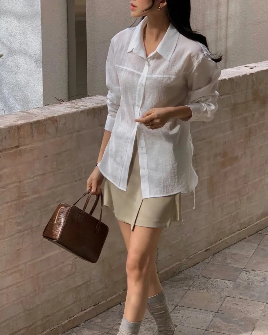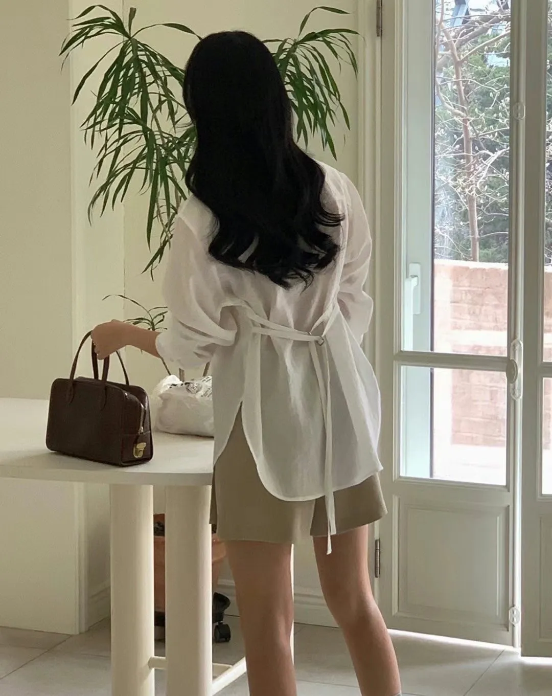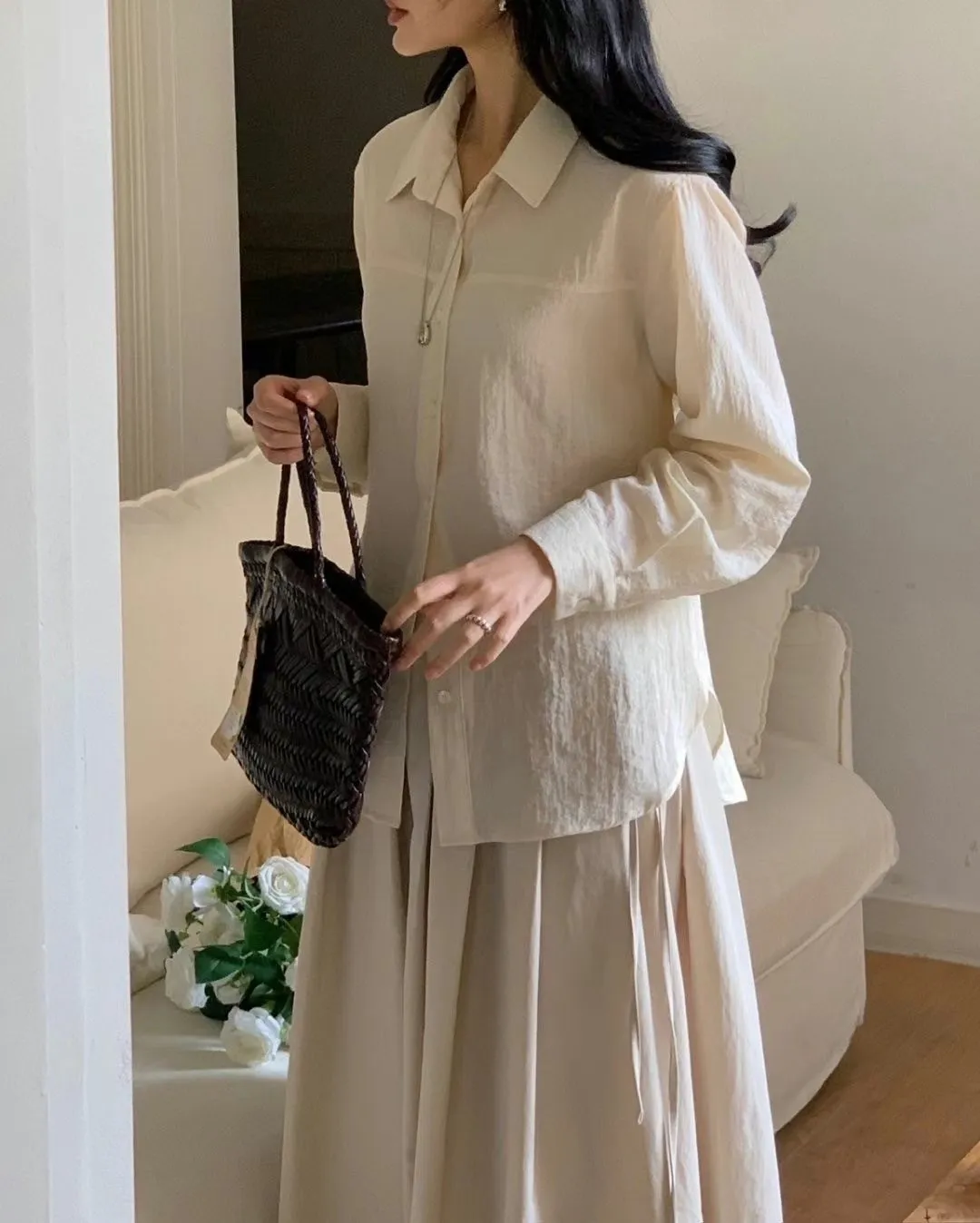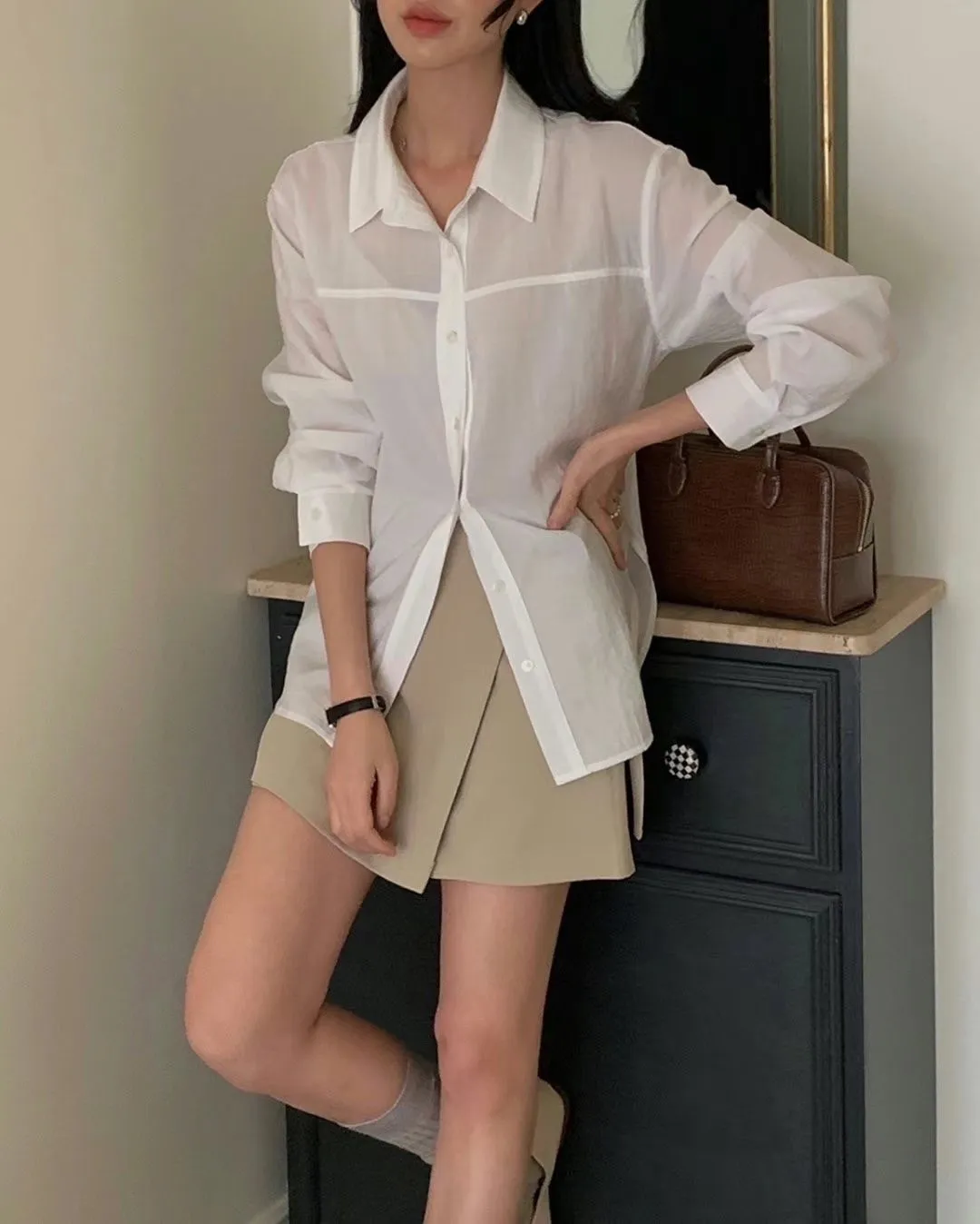 5-2附綁帶設計透膚襯衫