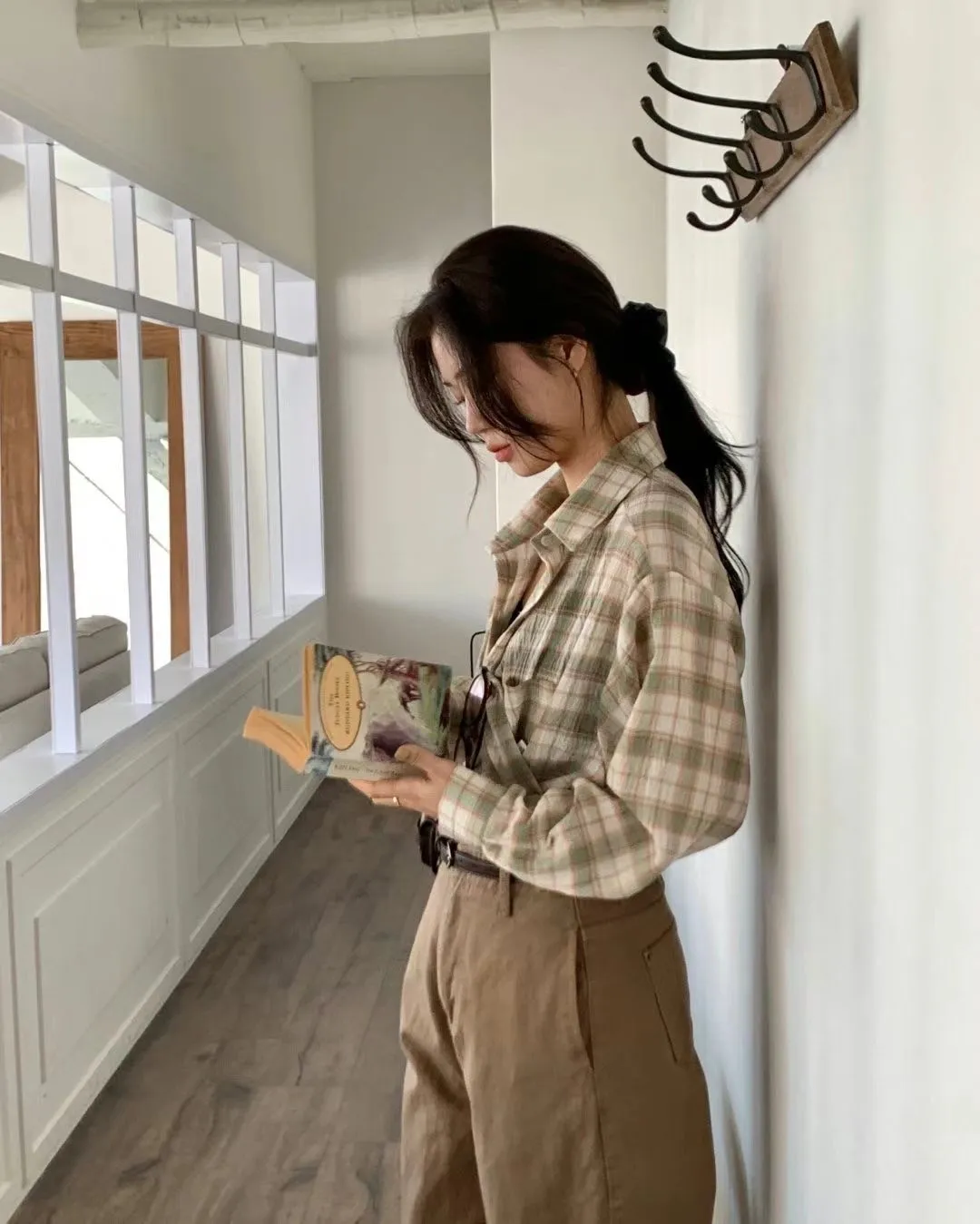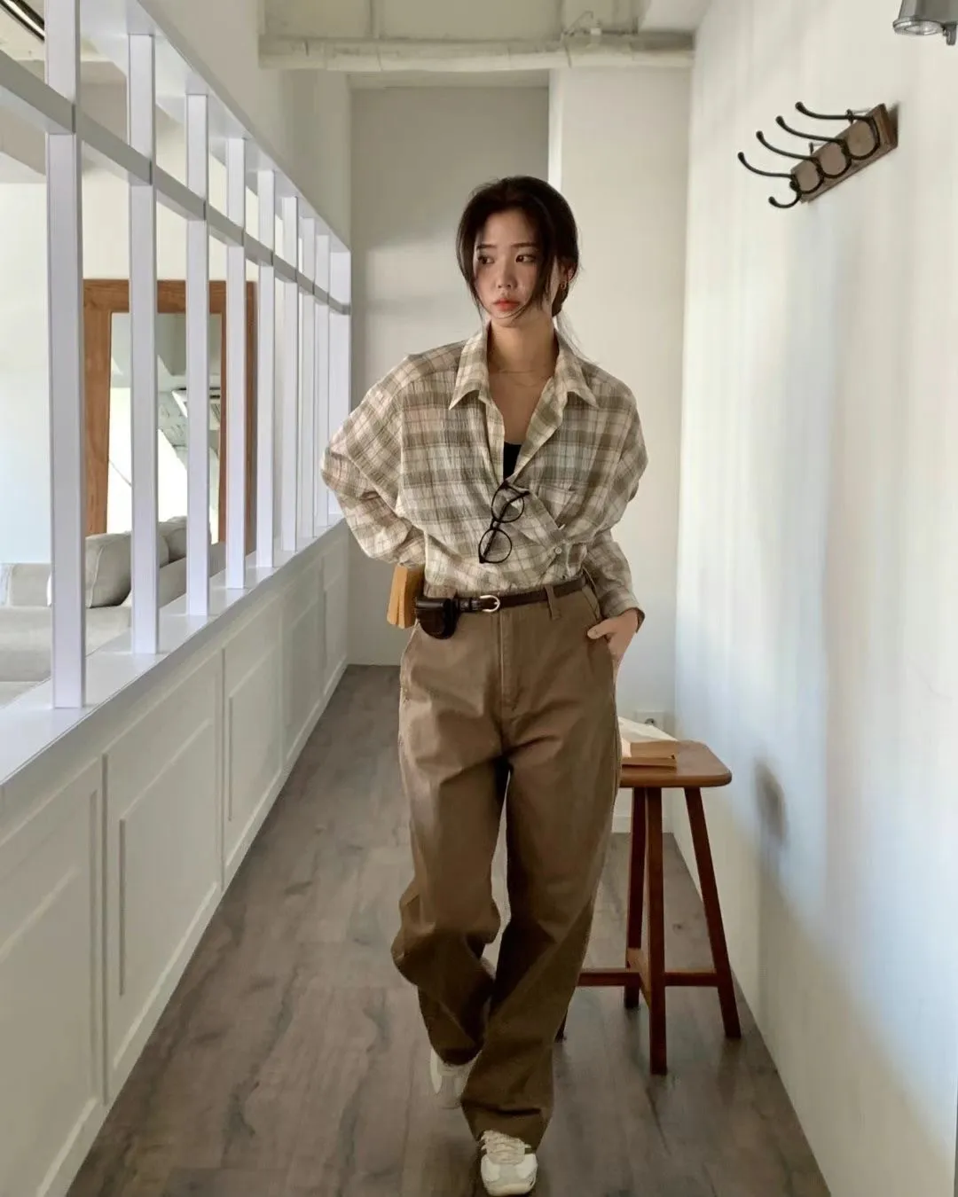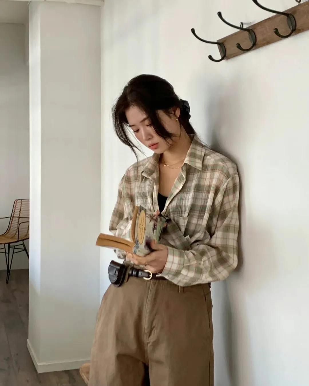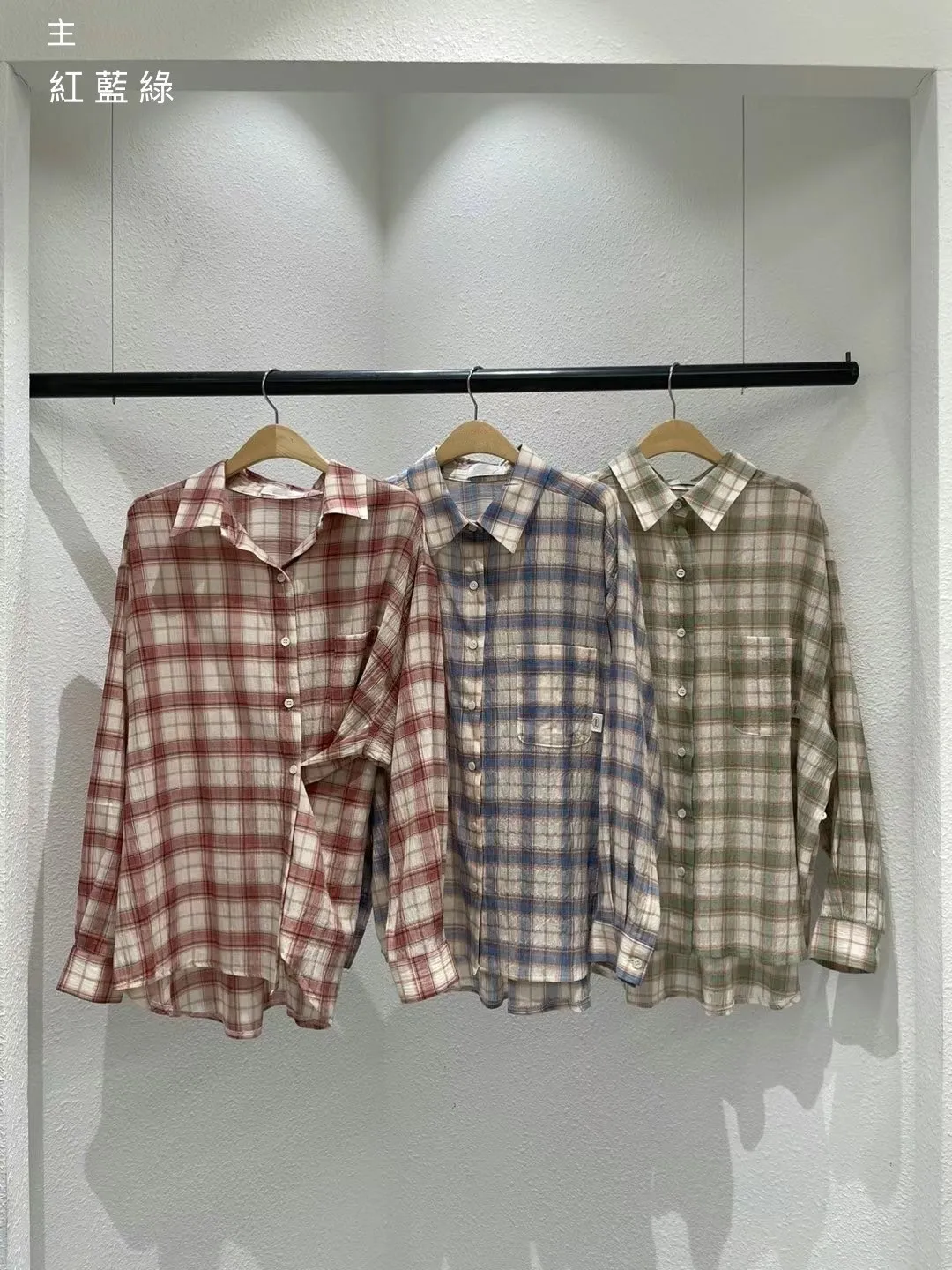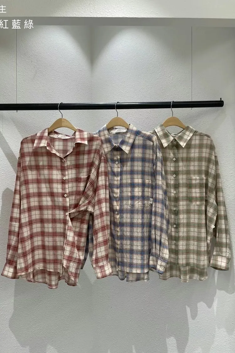 5-2可側釦棉麻格紋襯衫