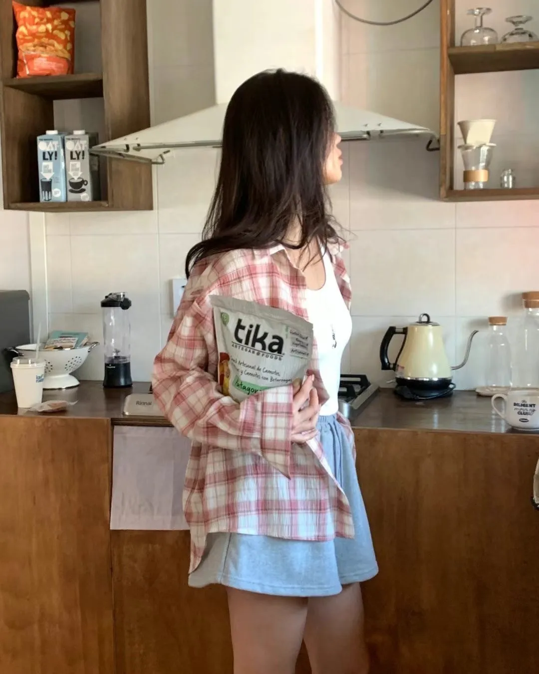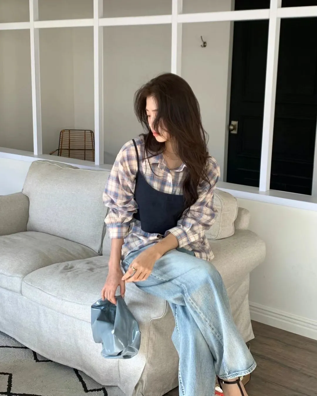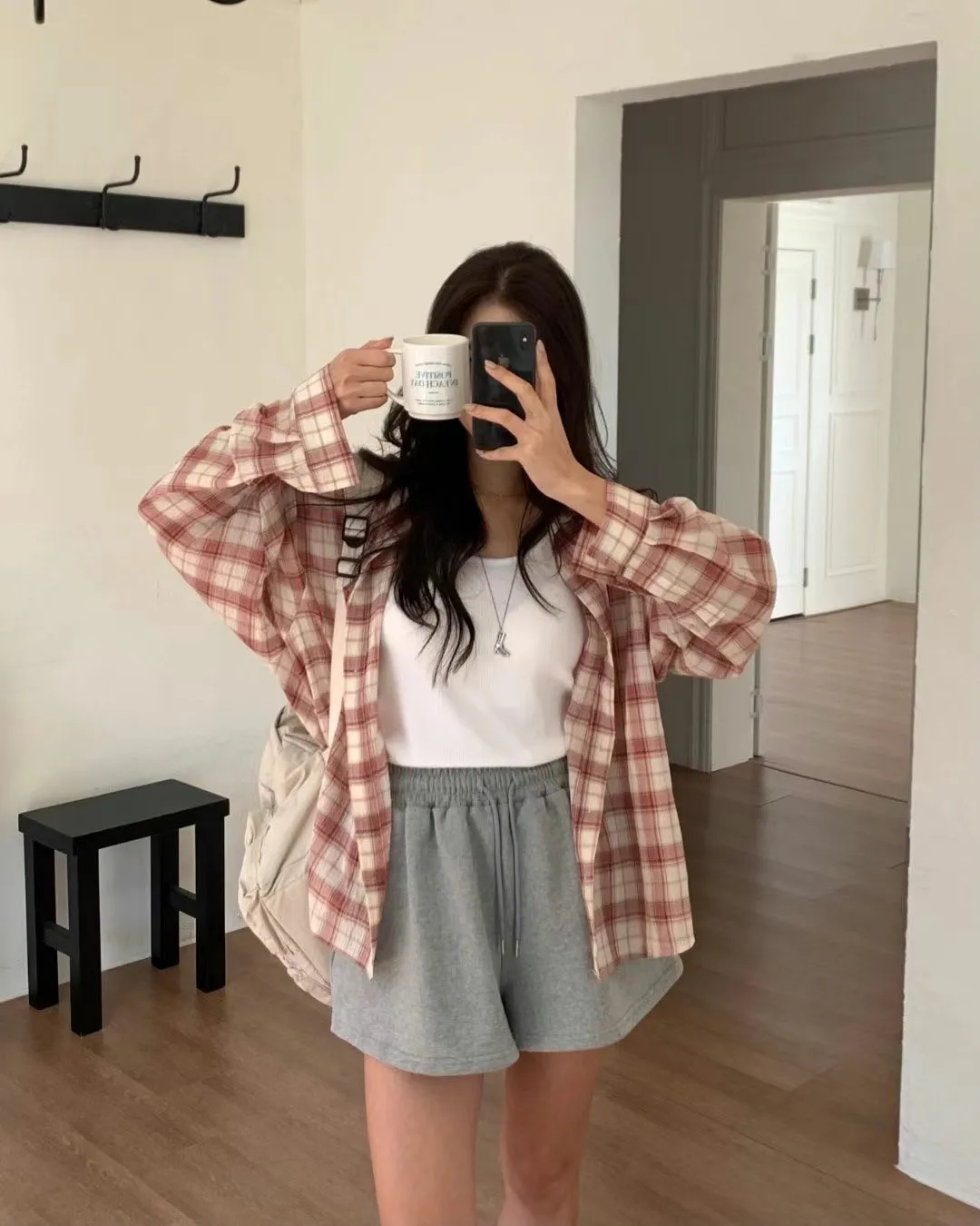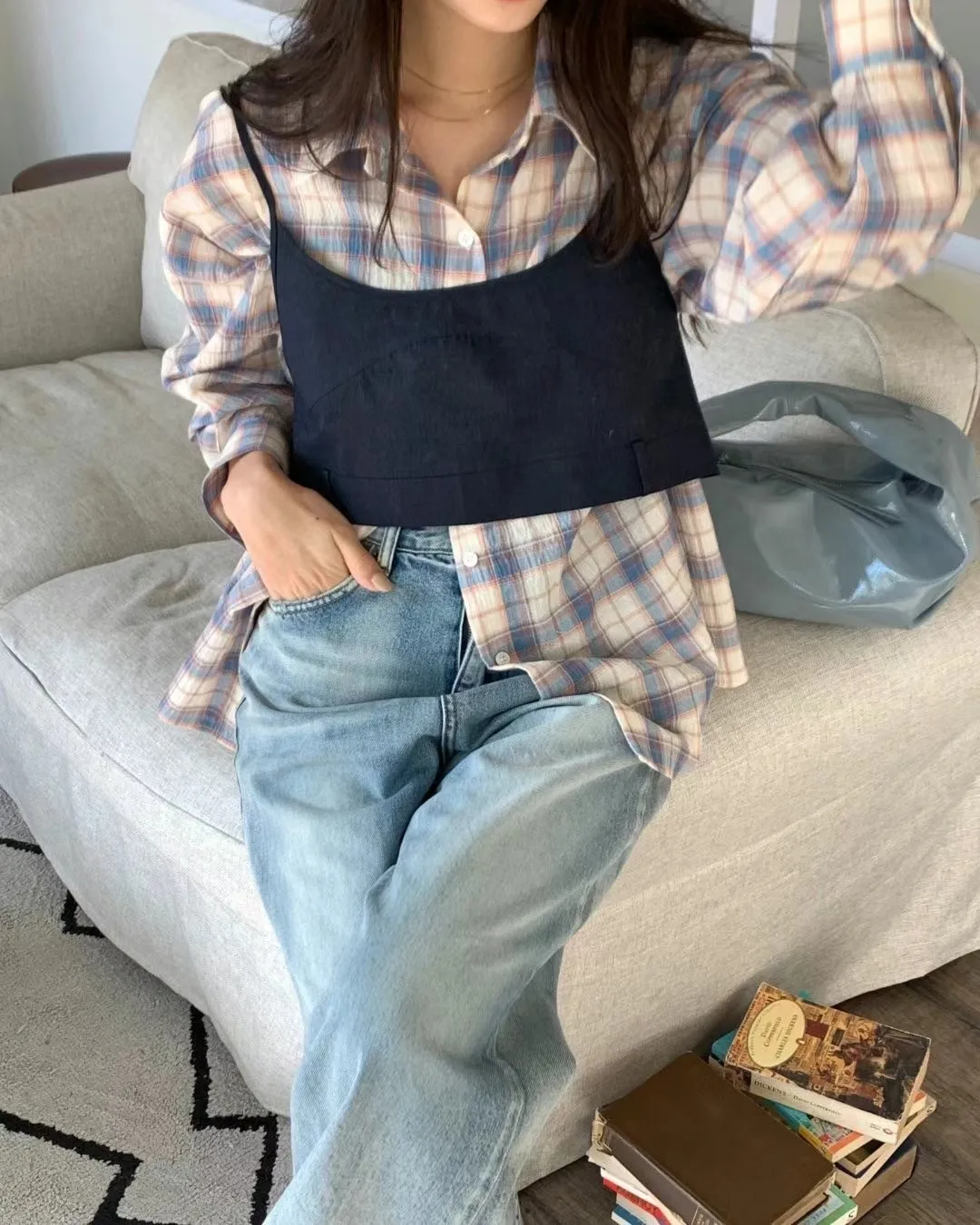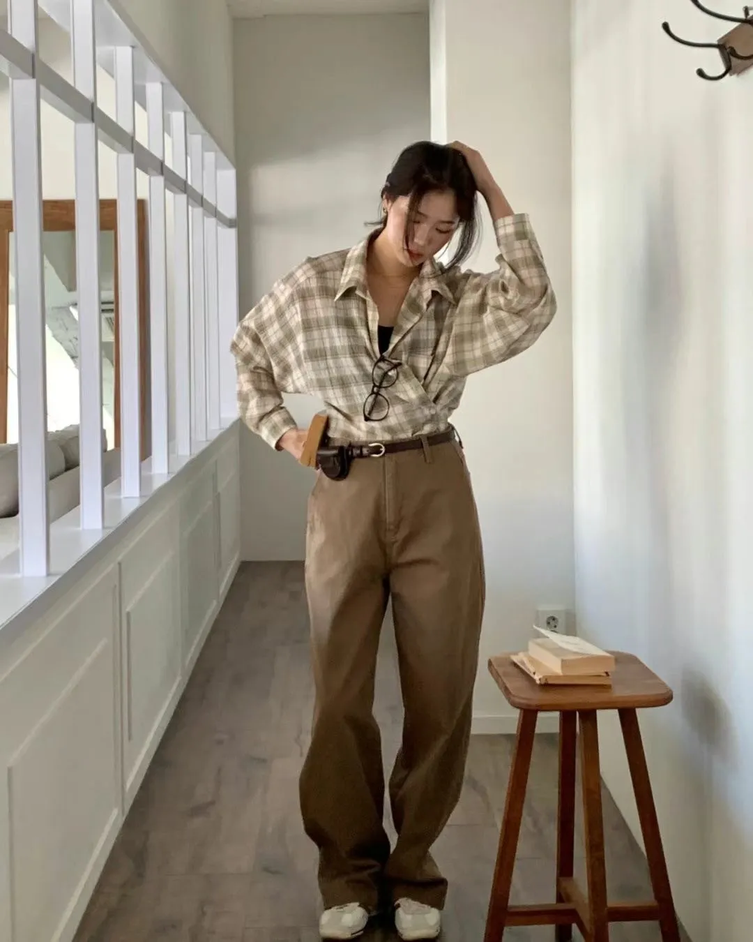 5-2可側釦棉麻格紋襯衫