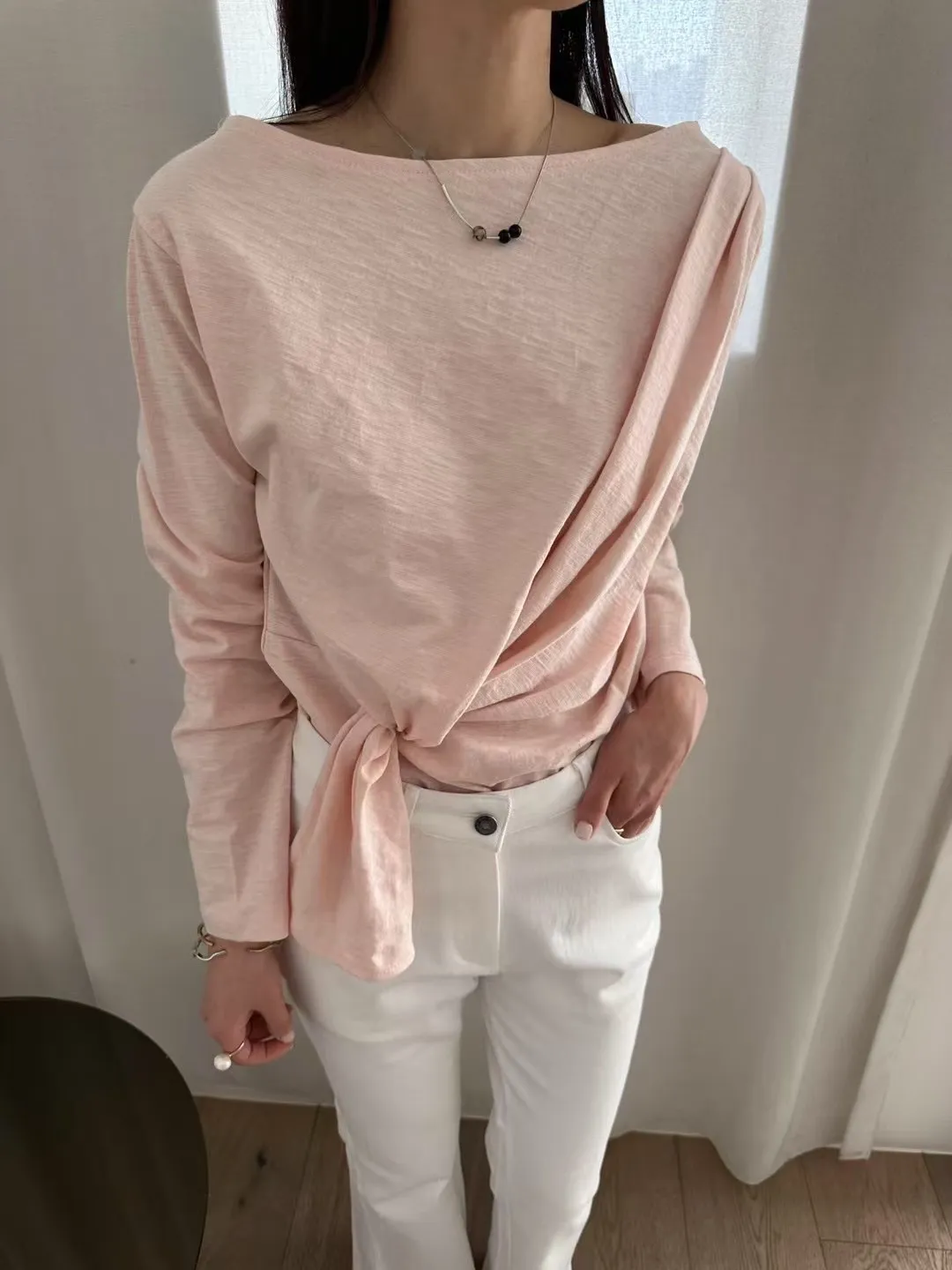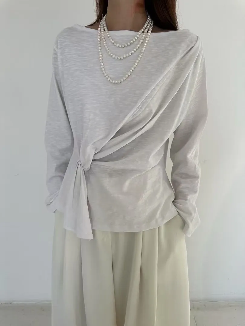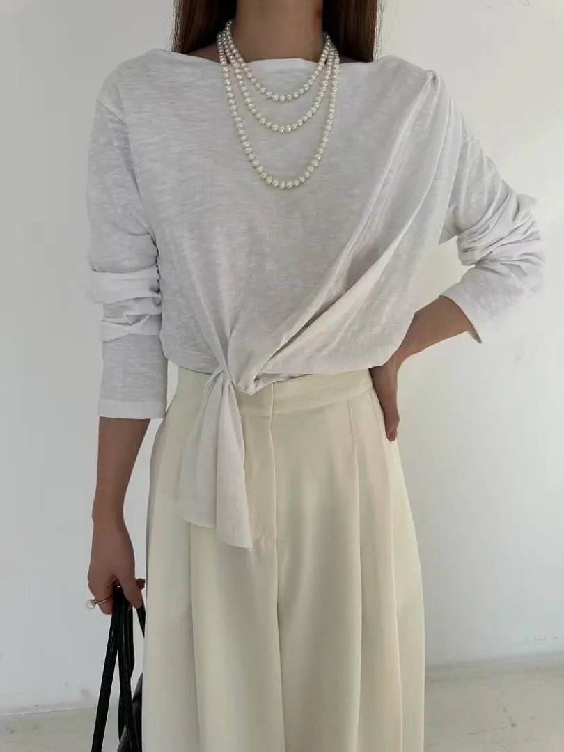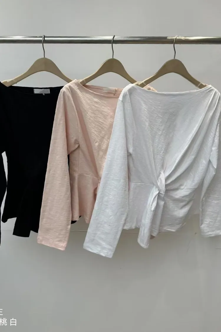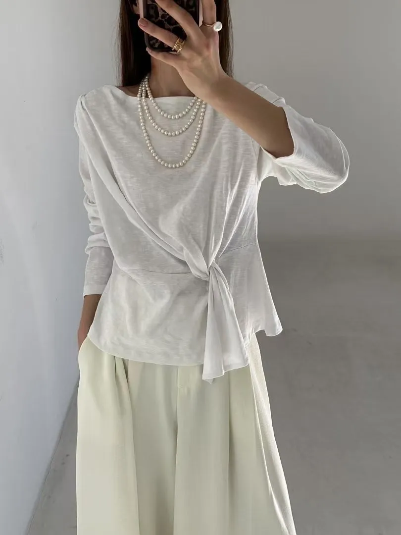 5-2側前綁帶設計厚磅竹節上衣