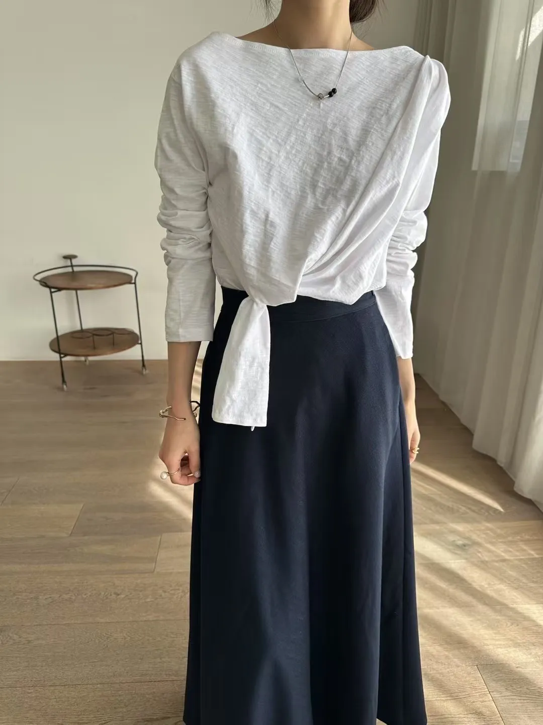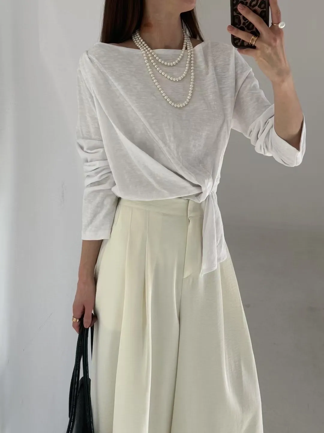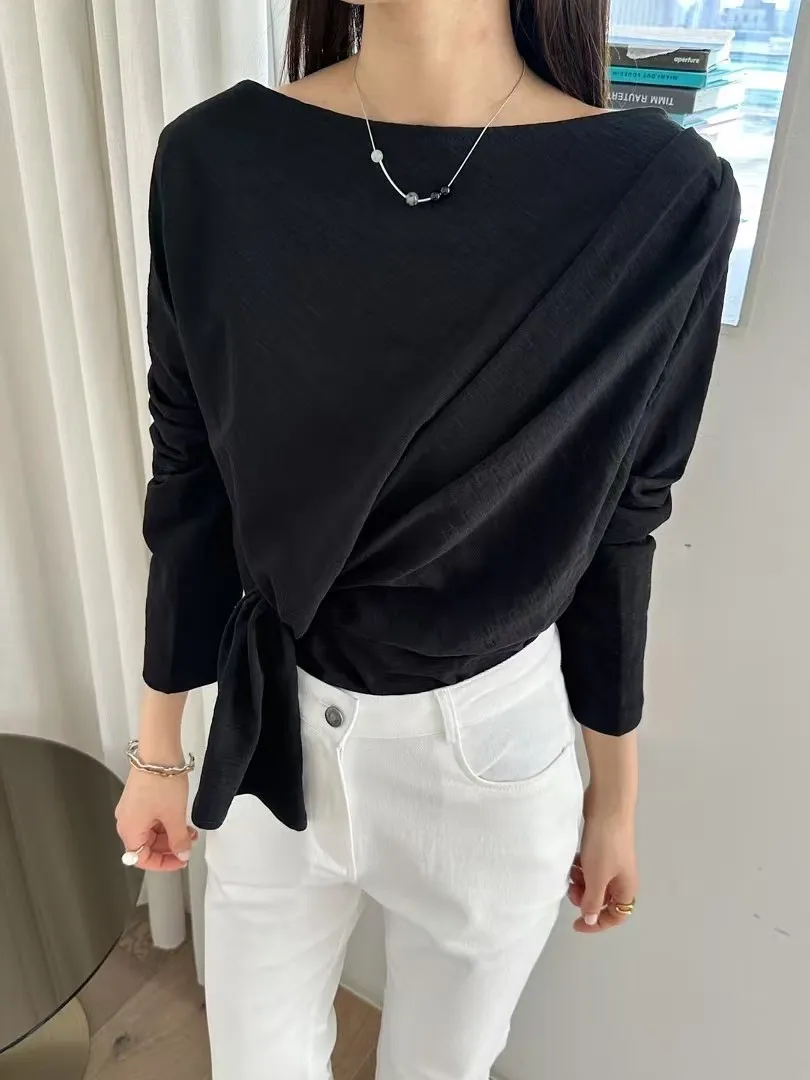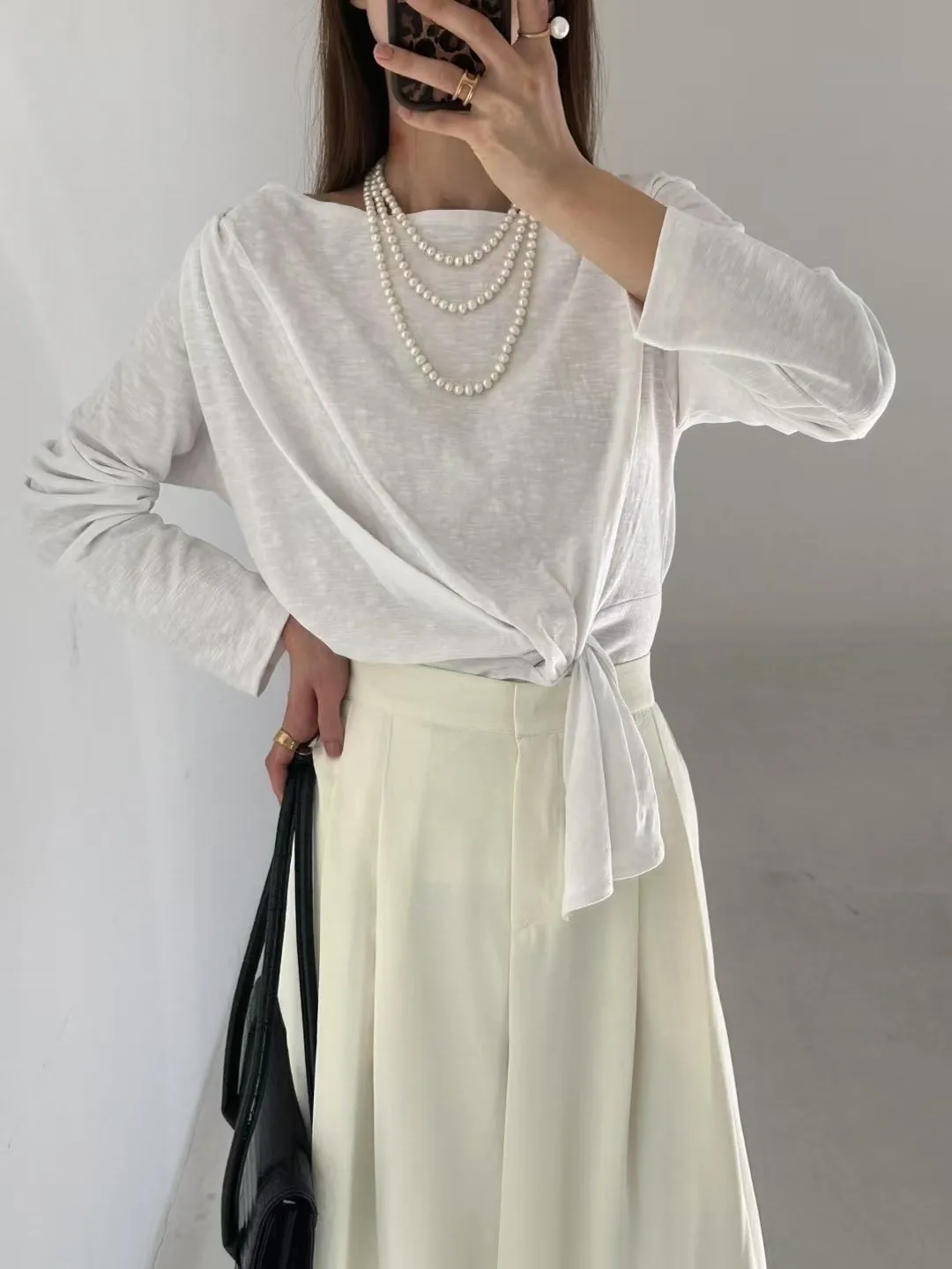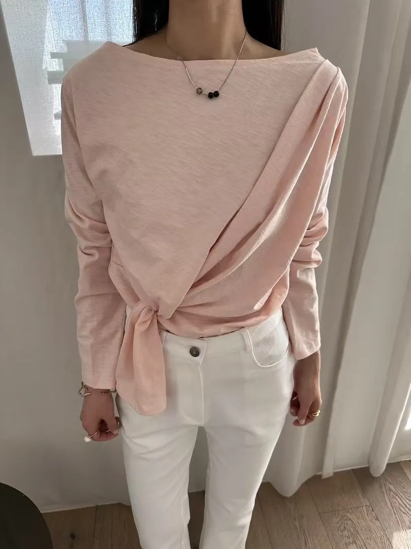 5-2側前綁帶設計厚磅竹節上衣