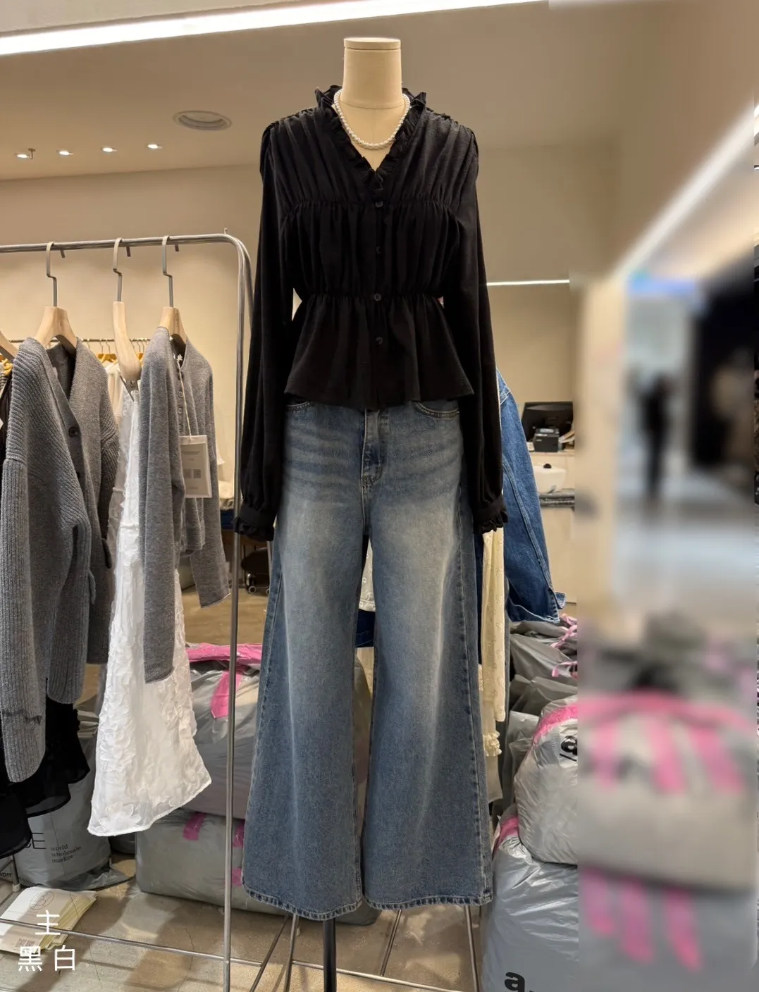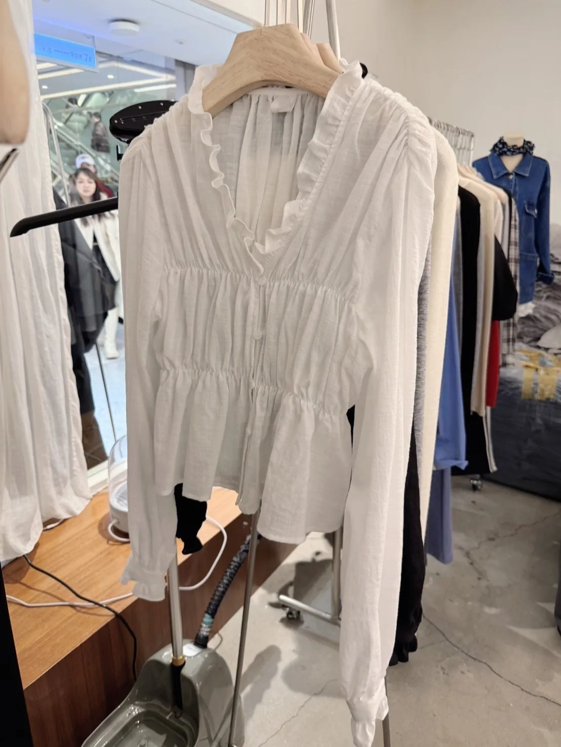 5-2前V領荷葉滾邊彈性棉紗上衣