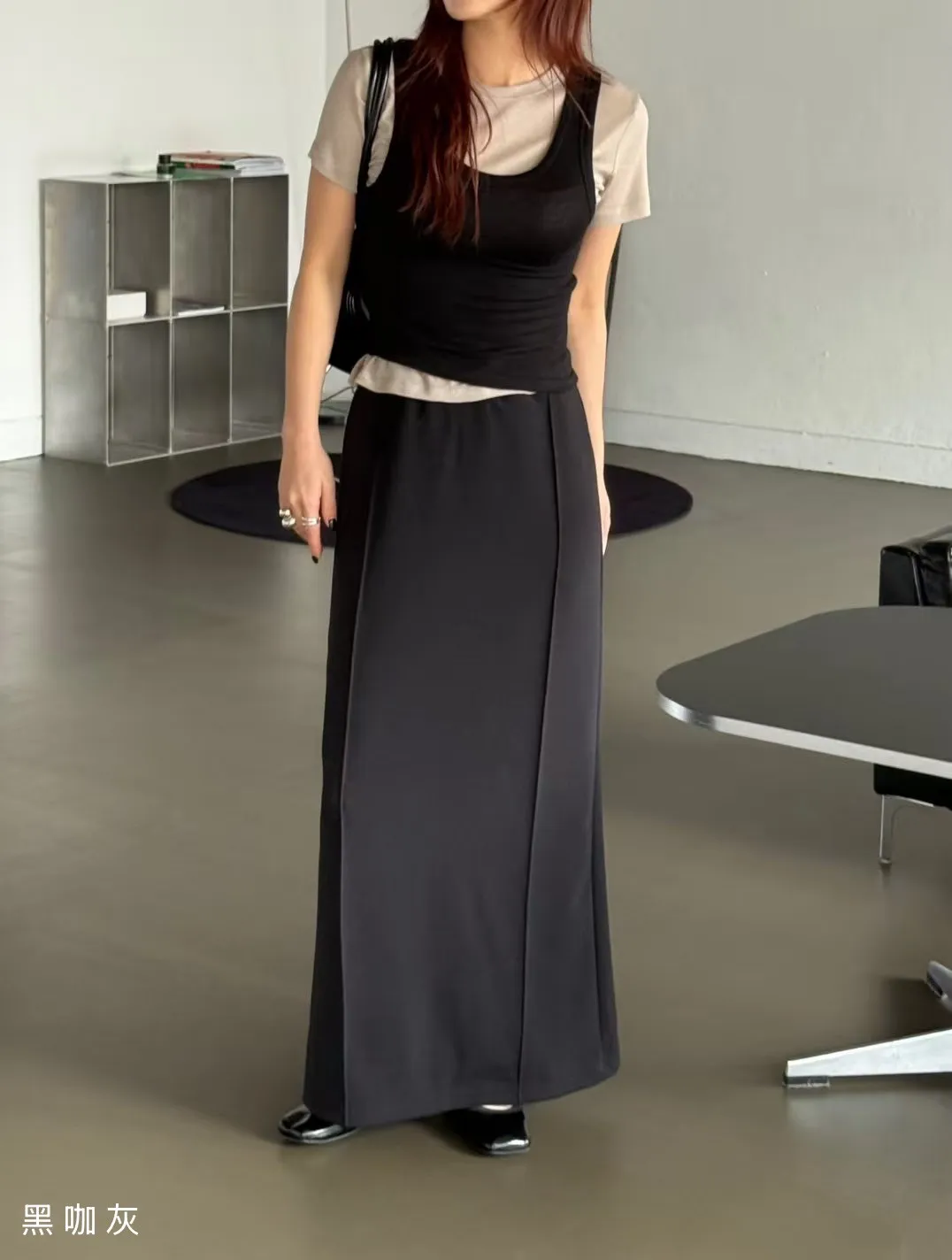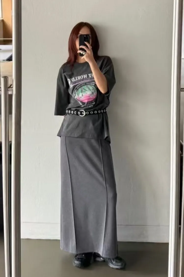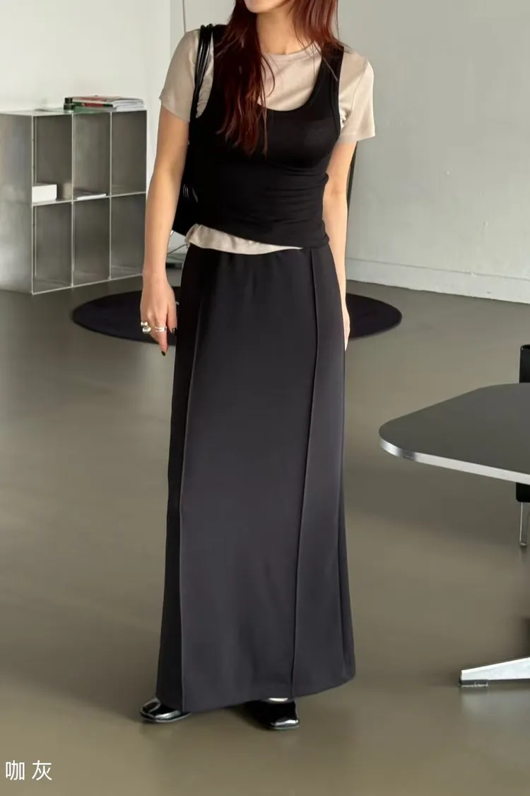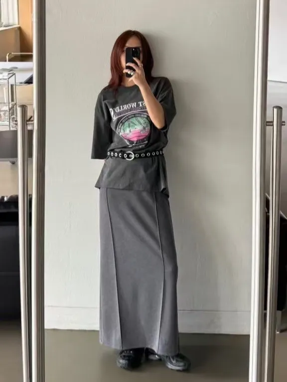 5-4兩側立體壓線棉質窄裙