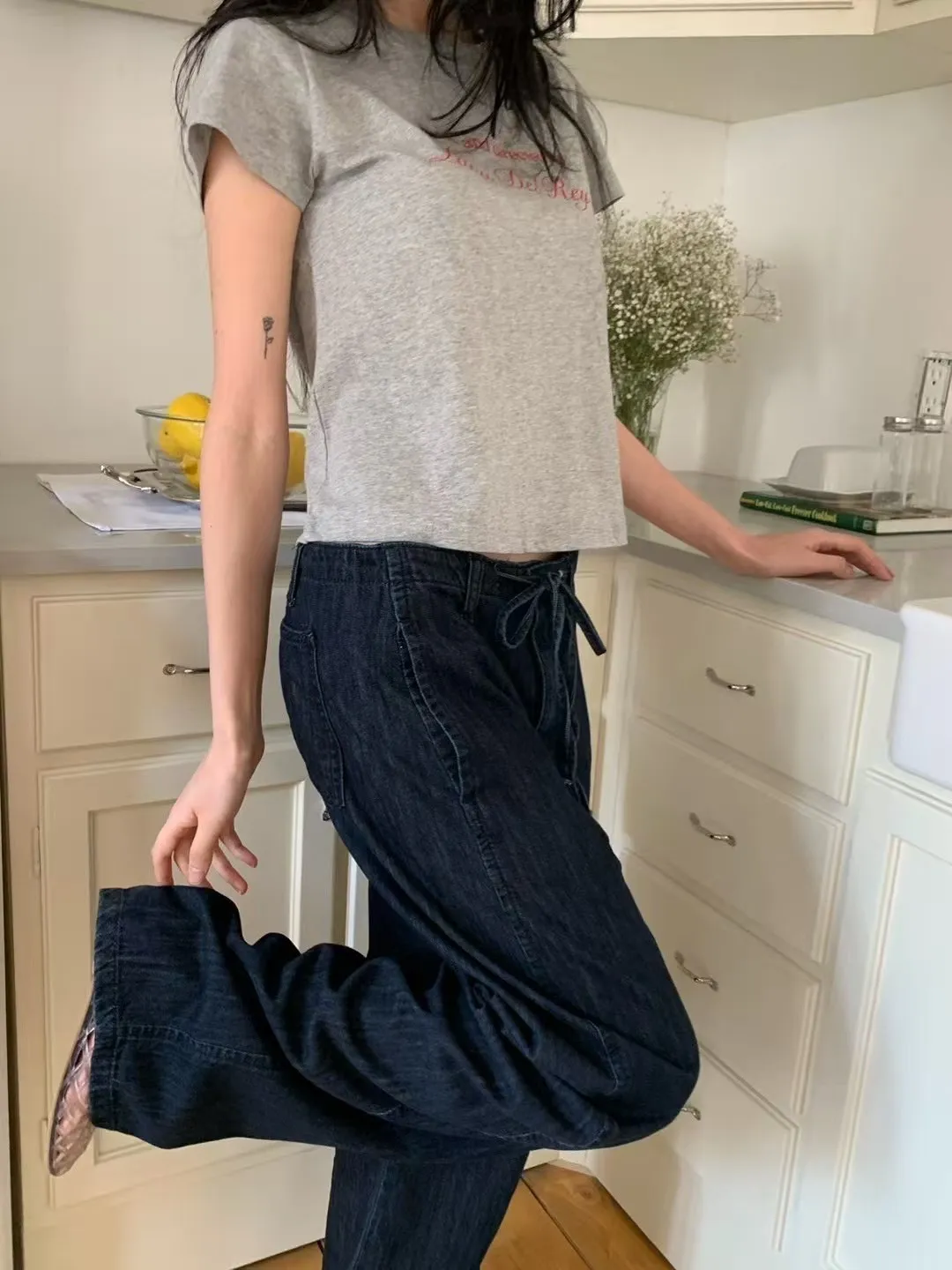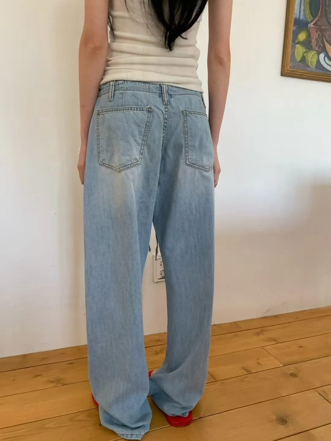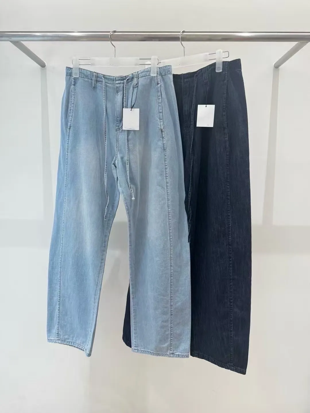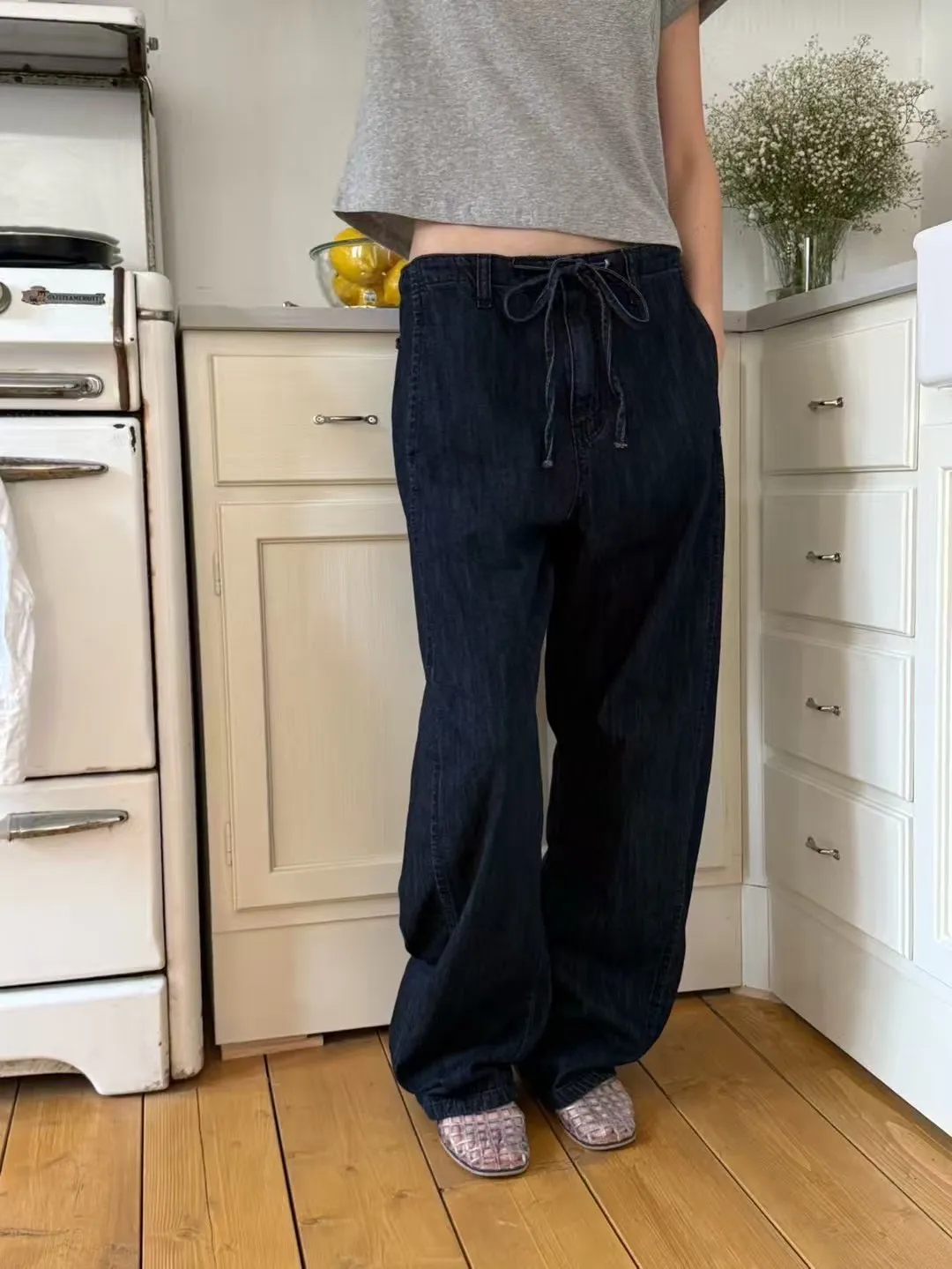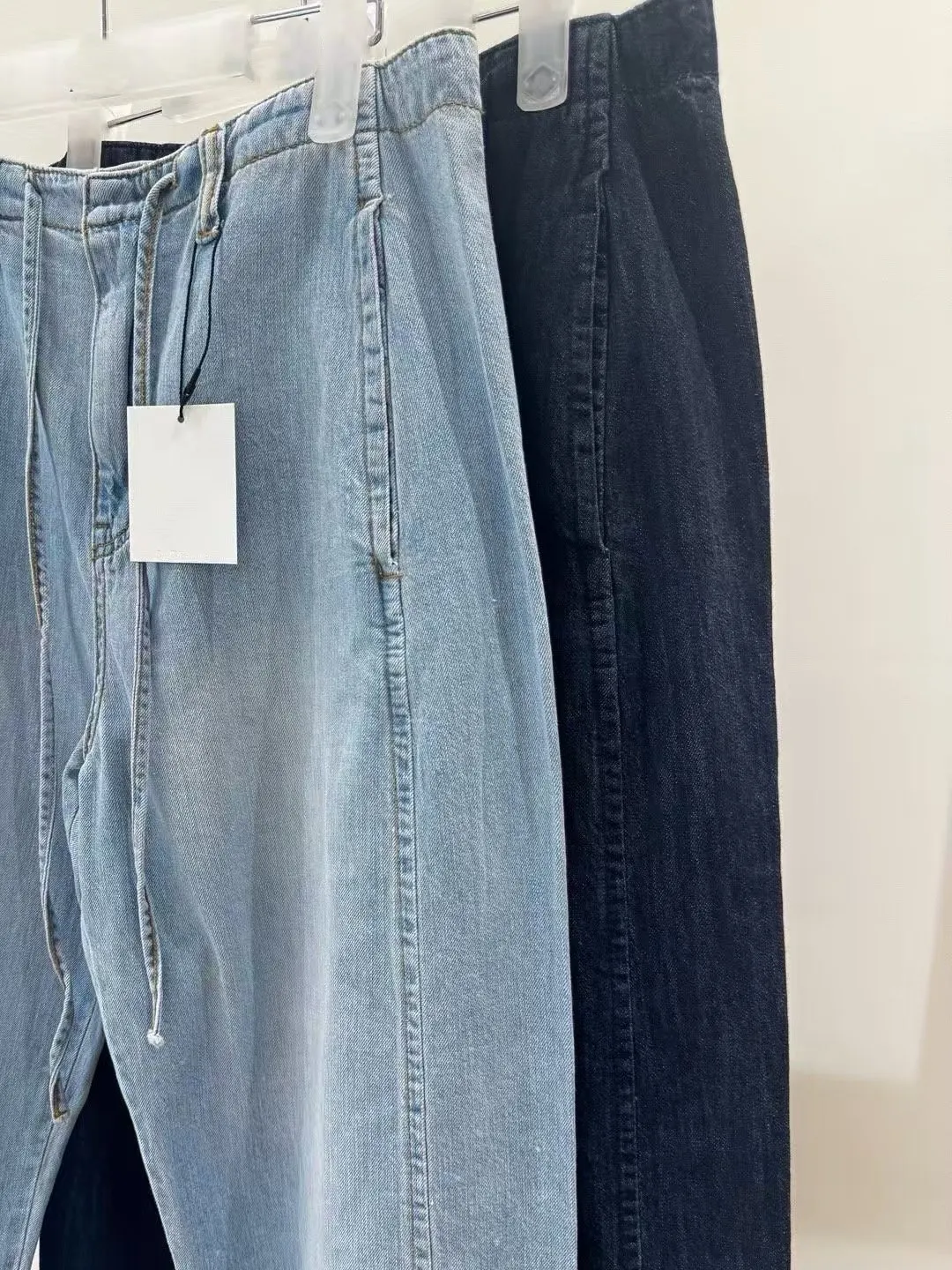 5-6前綁帶薄料落地丹寧褲