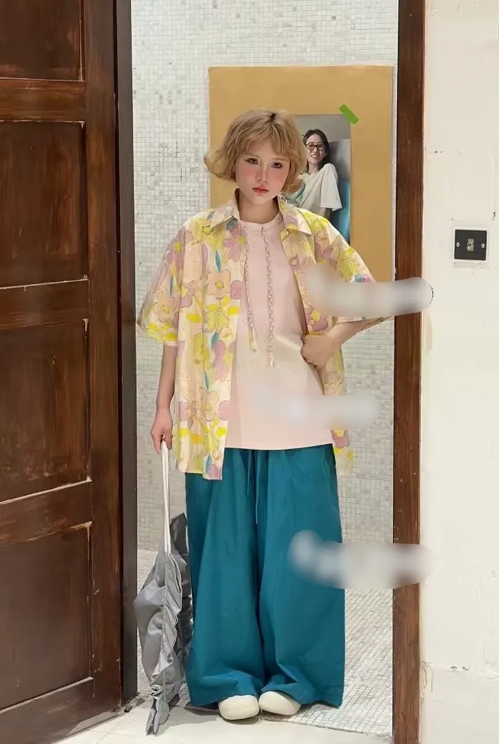 5-6鬆緊腰圍日系寬鬆涼感褲