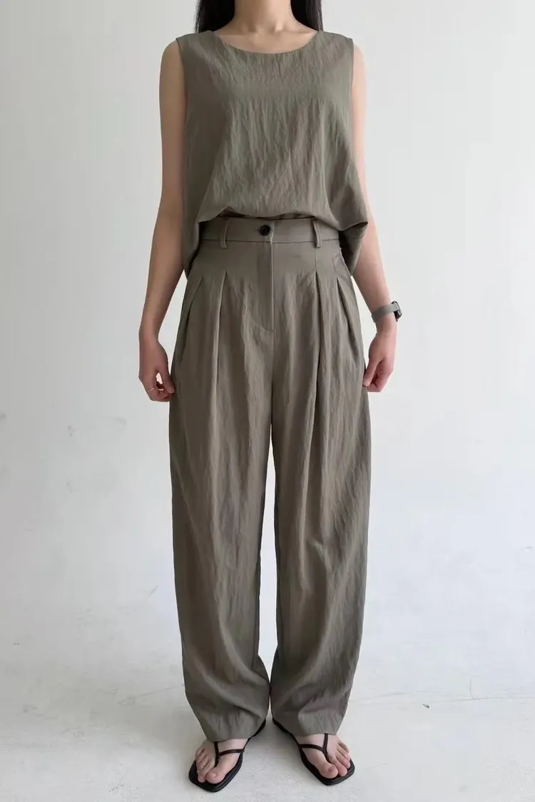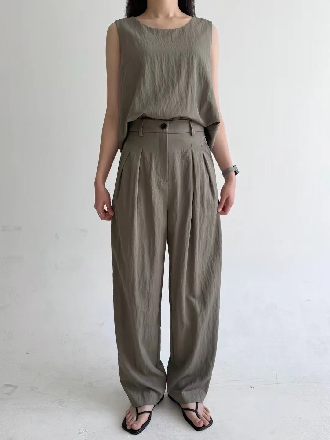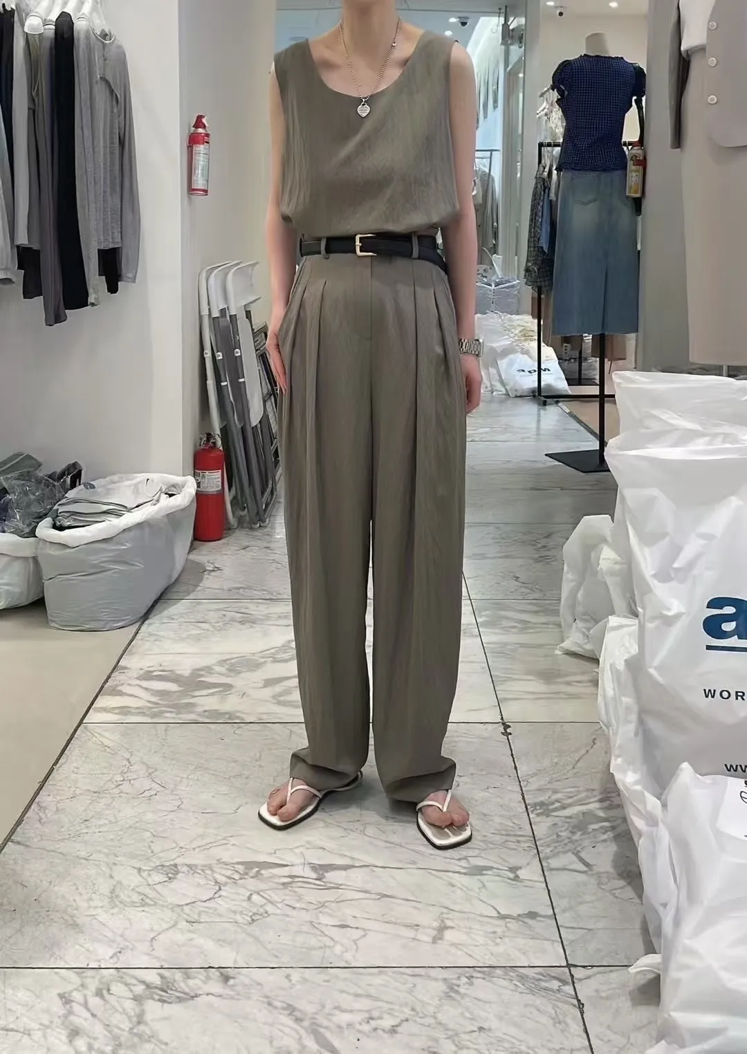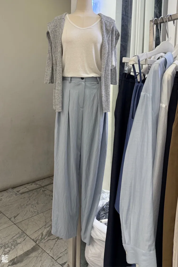 5-6單釦前打摺薄款落地褲 #嬌小歐妮