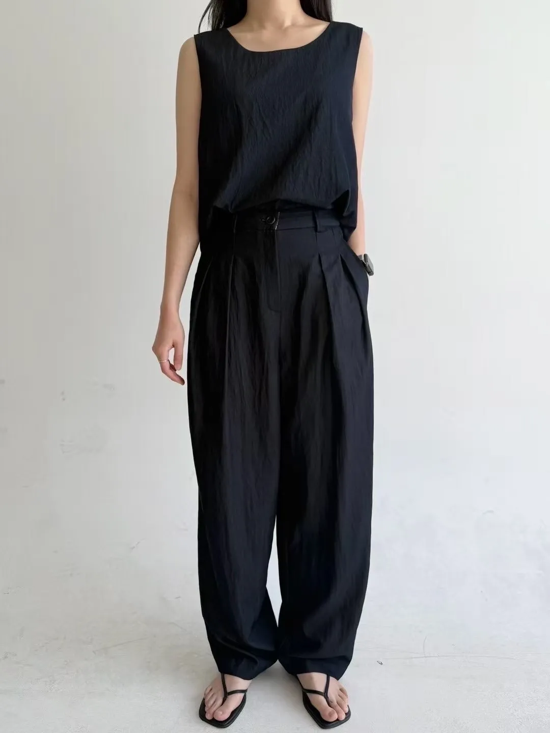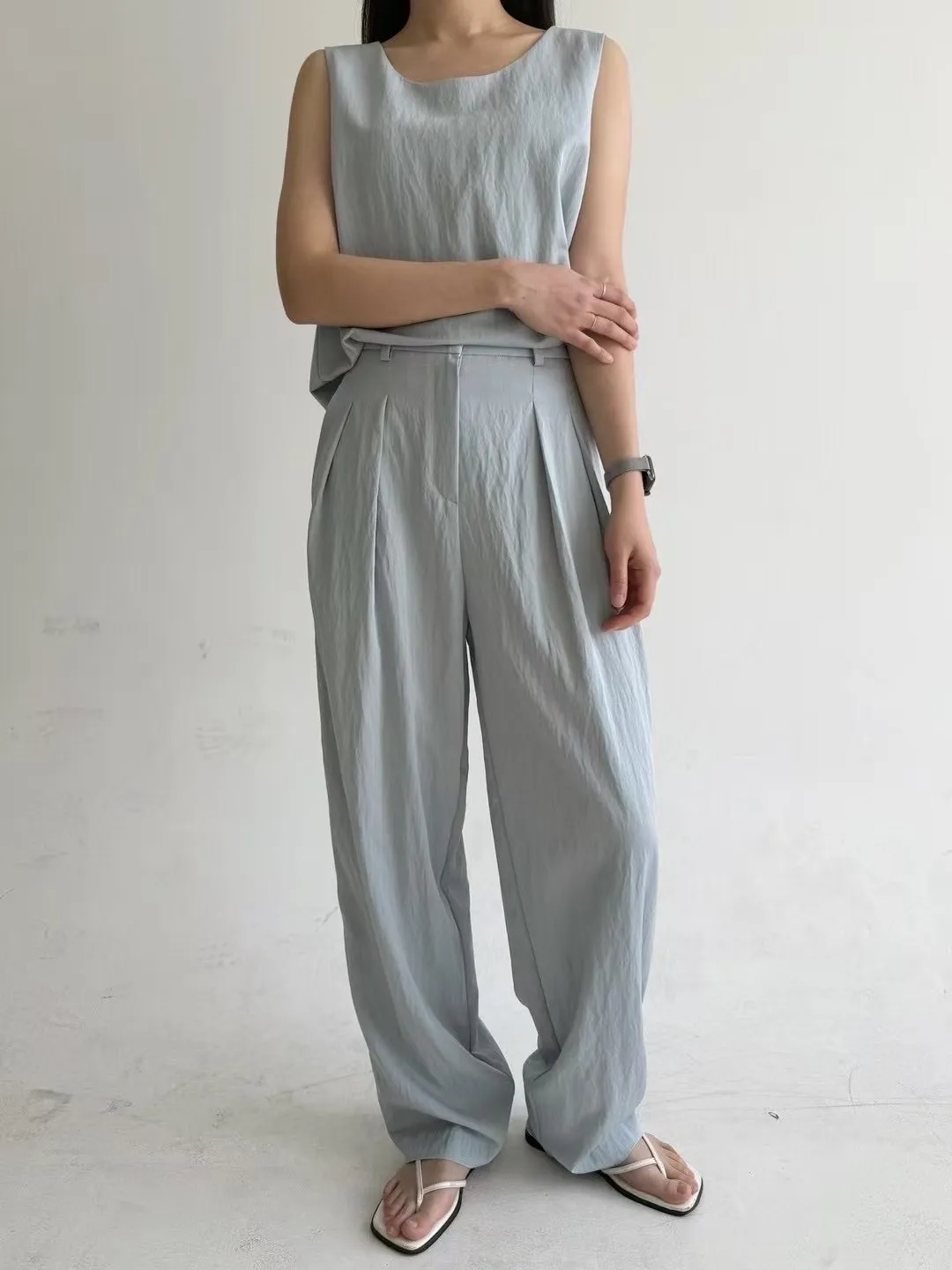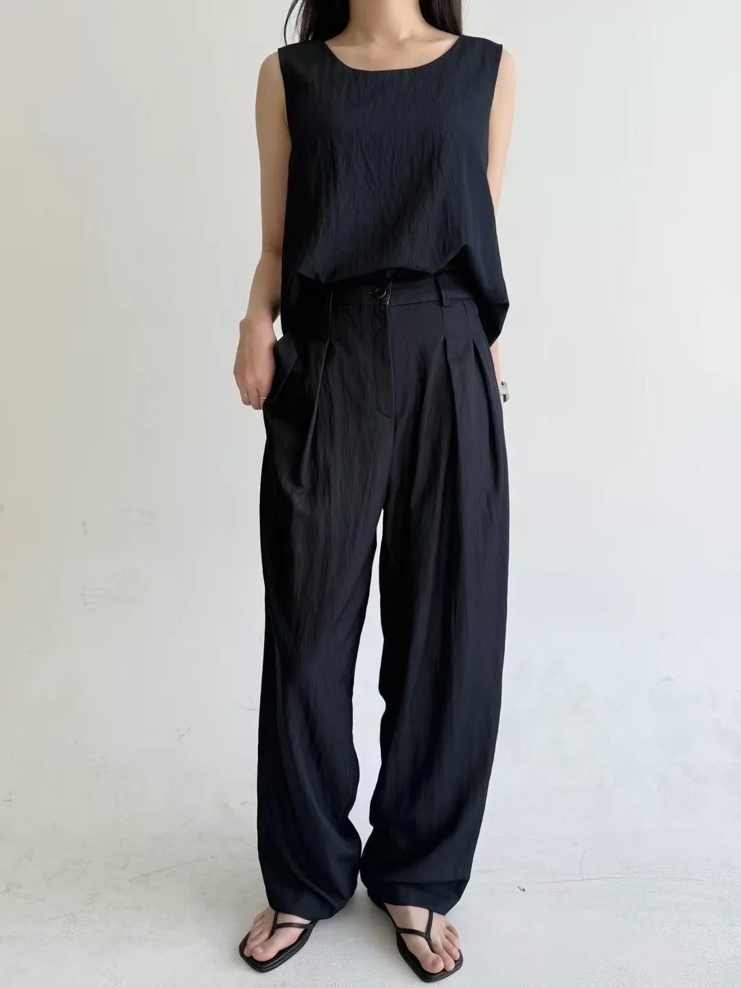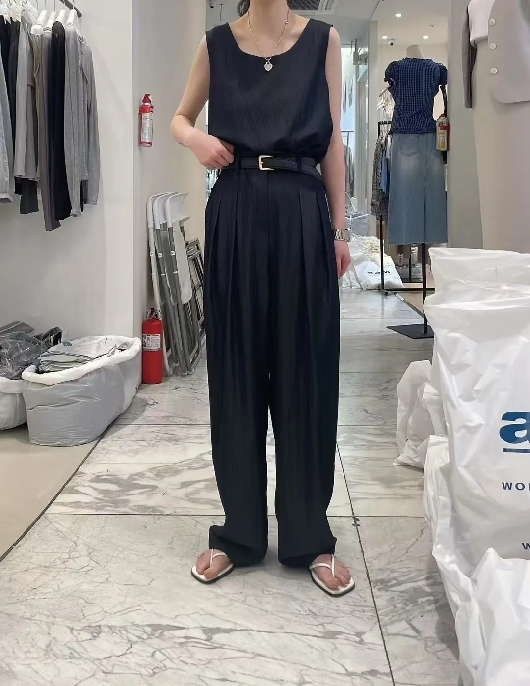 5-6單釦前打摺薄款落地褲 #嬌小歐妮