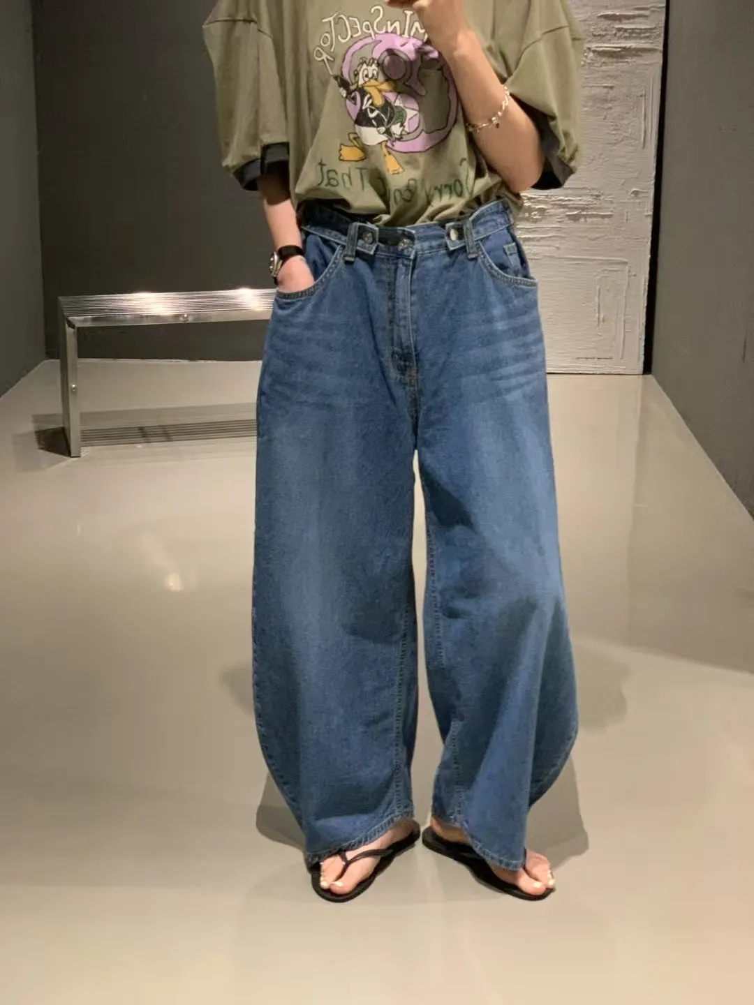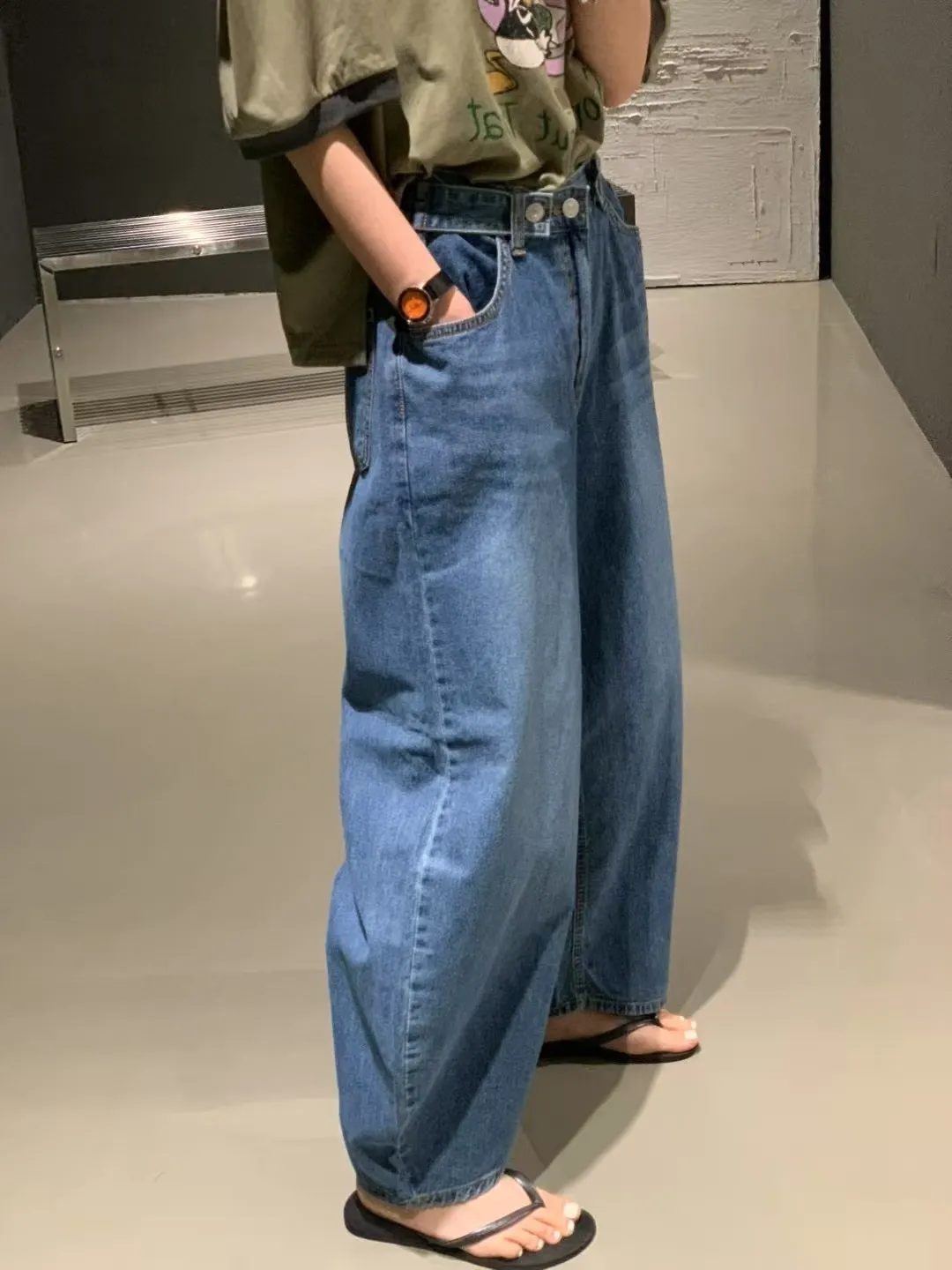 5-6可調褲頭廓型鐮刀牛仔褲
