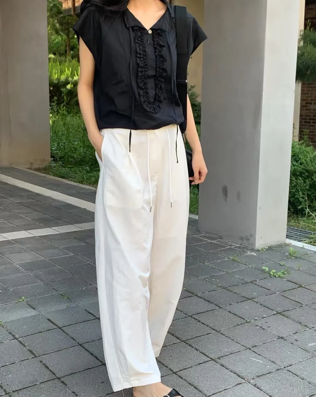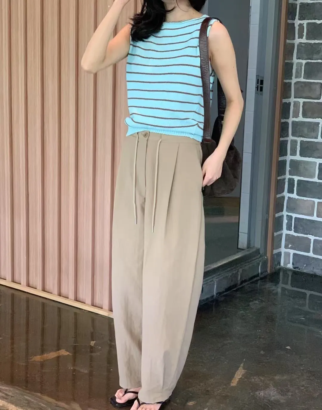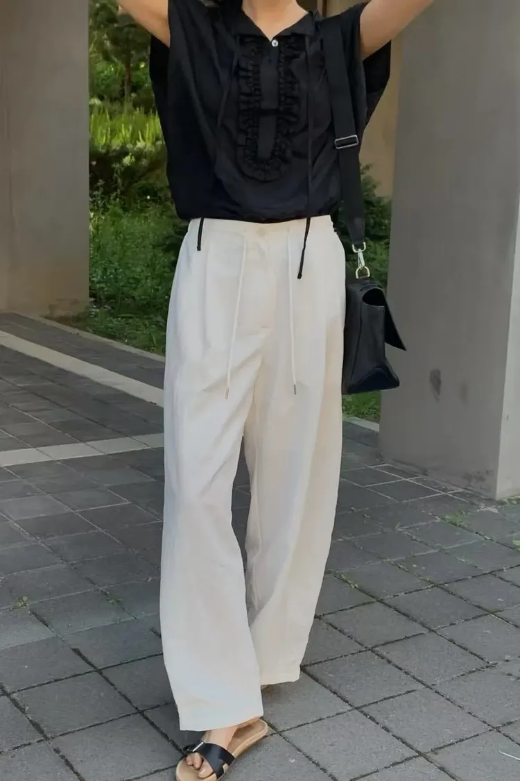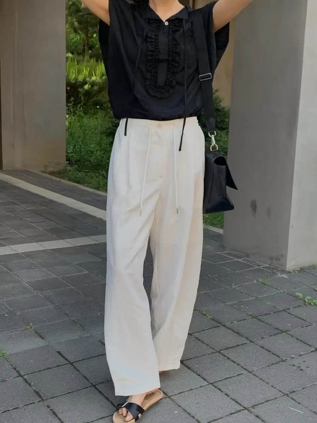 5-6前抽繩高質感薄料廓型縮口造型褲