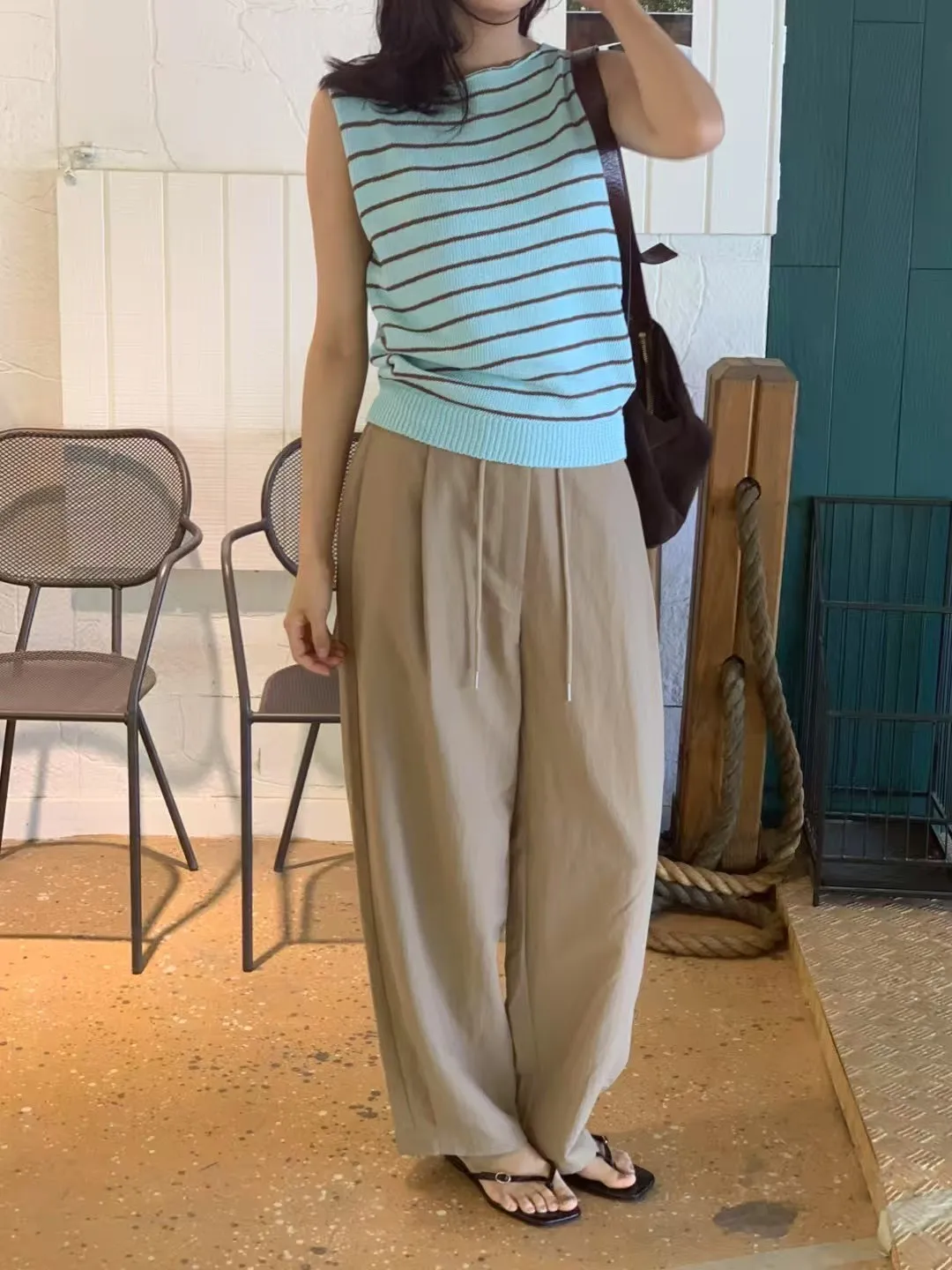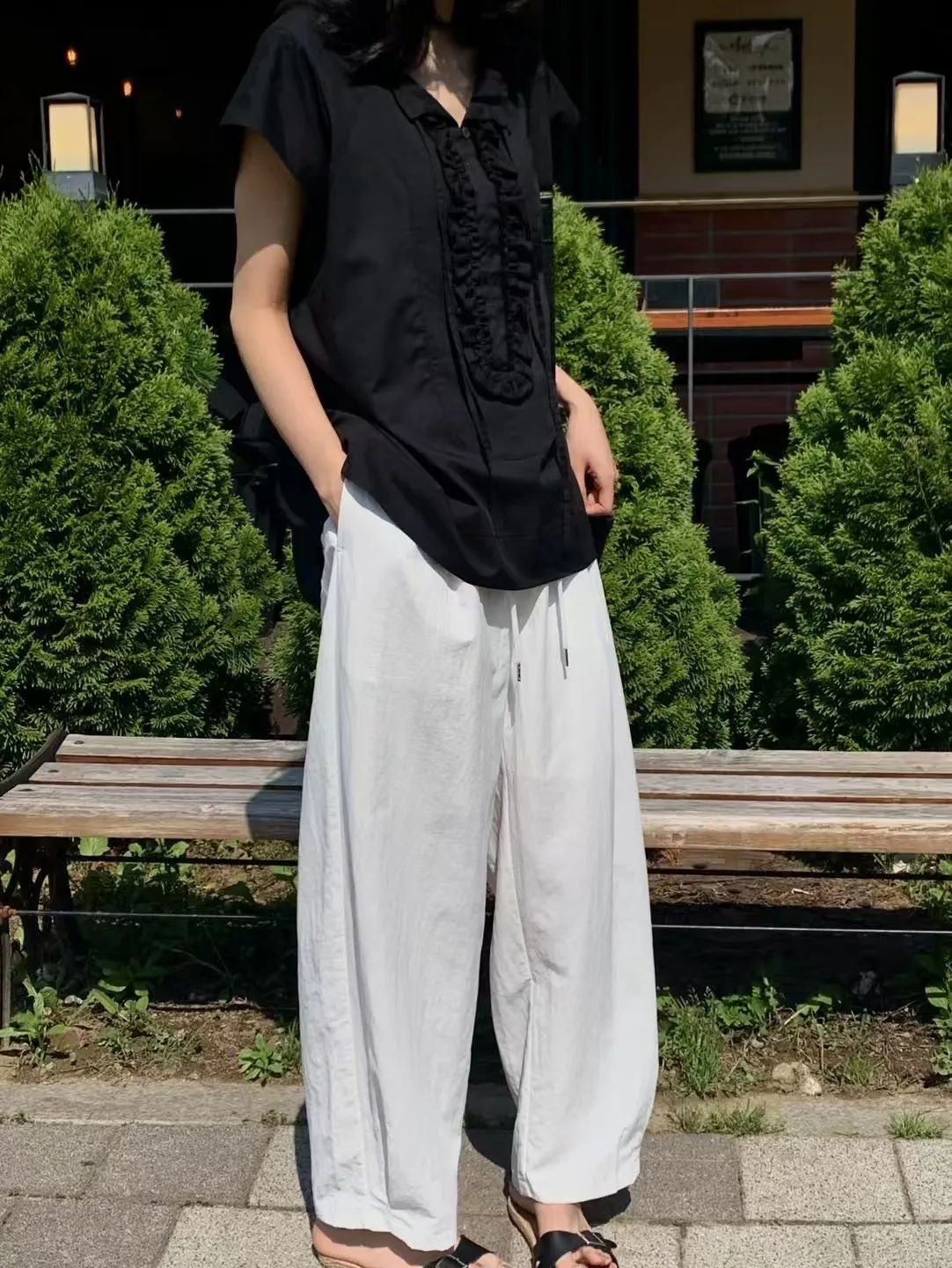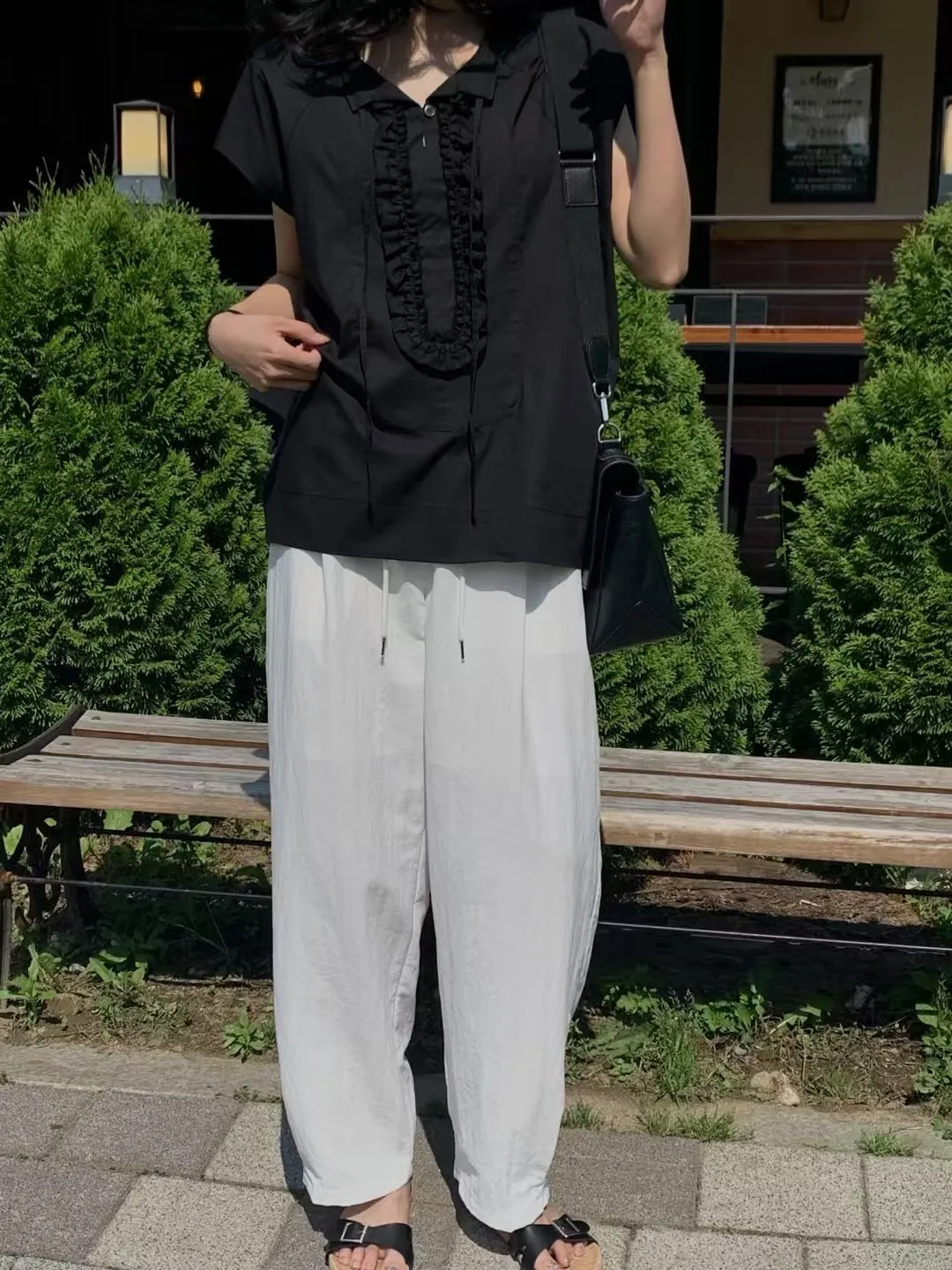 5-6前抽繩高質感薄料廓型縮口造型褲