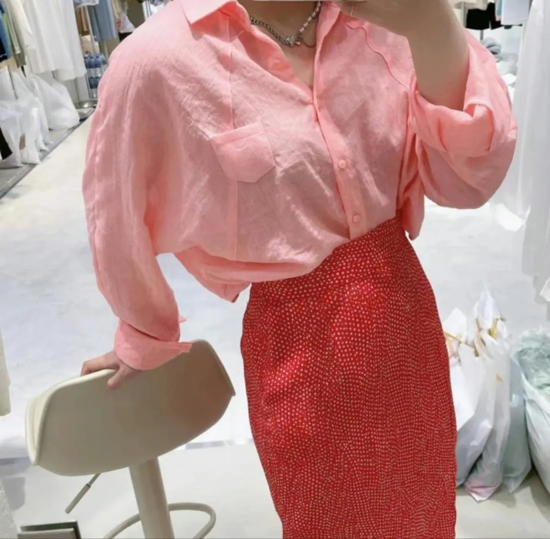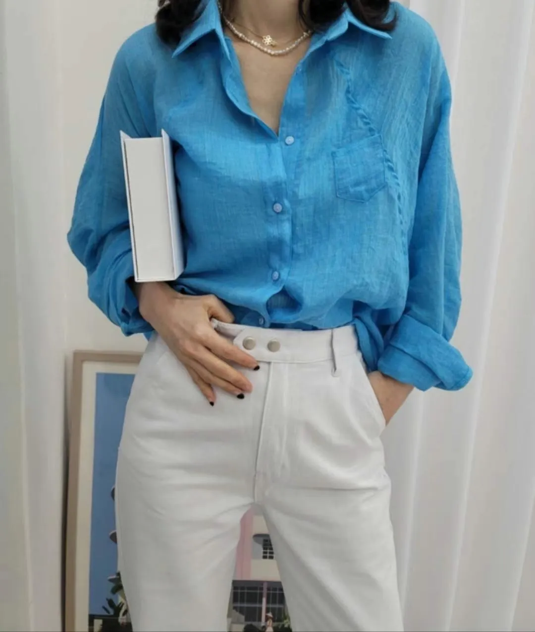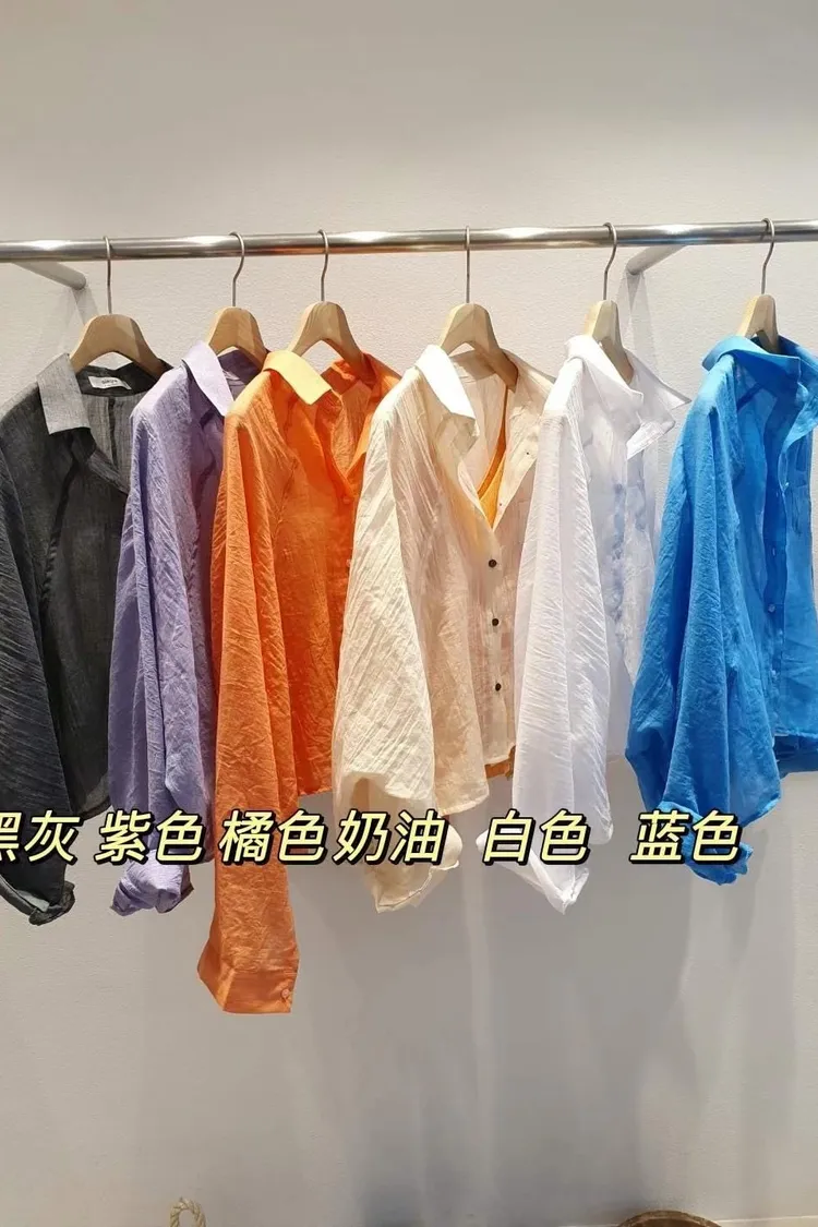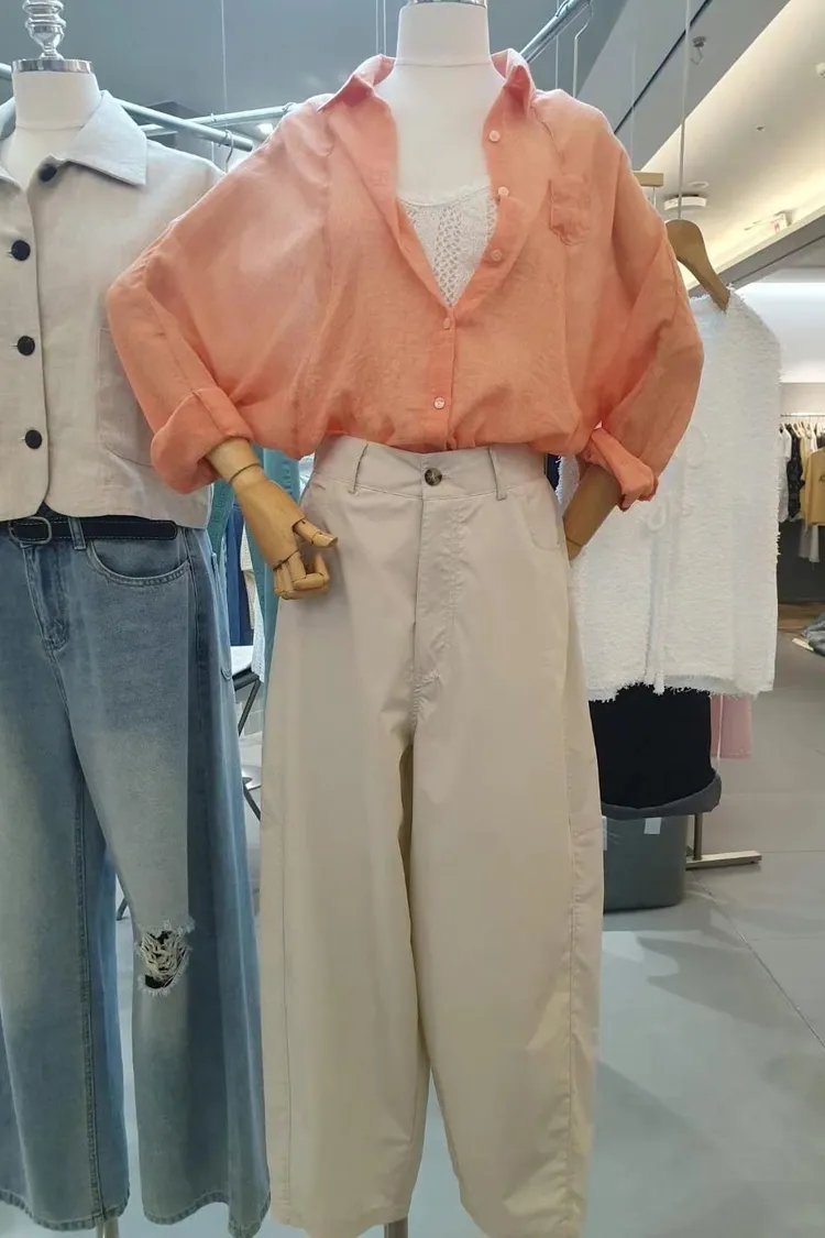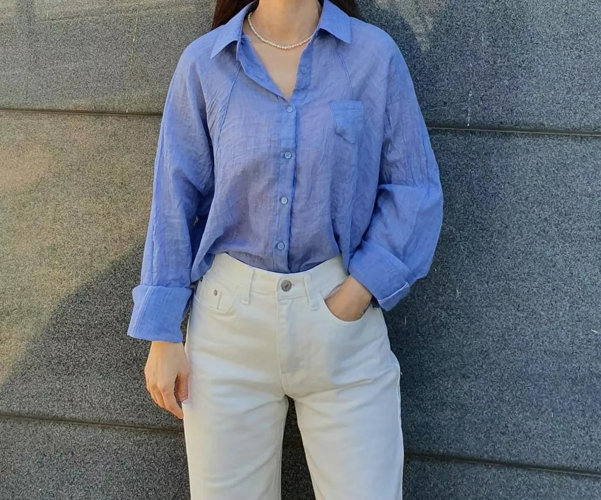 5-6側邊小口袋透膚棉麻襯衫