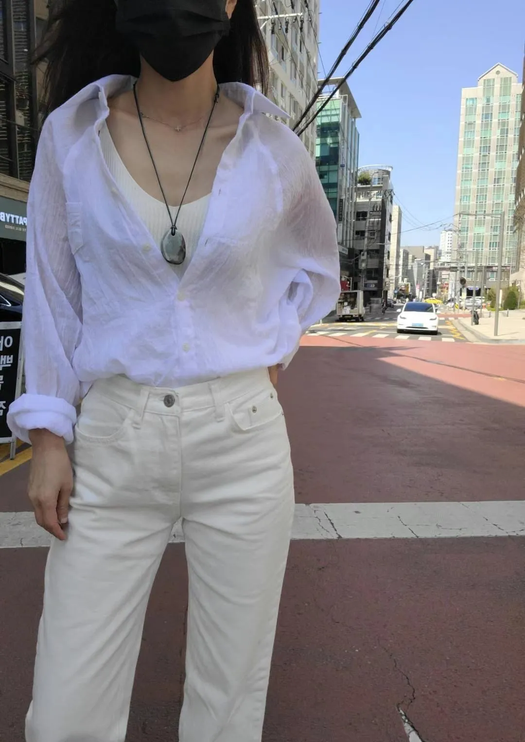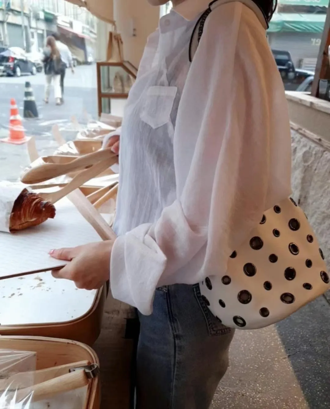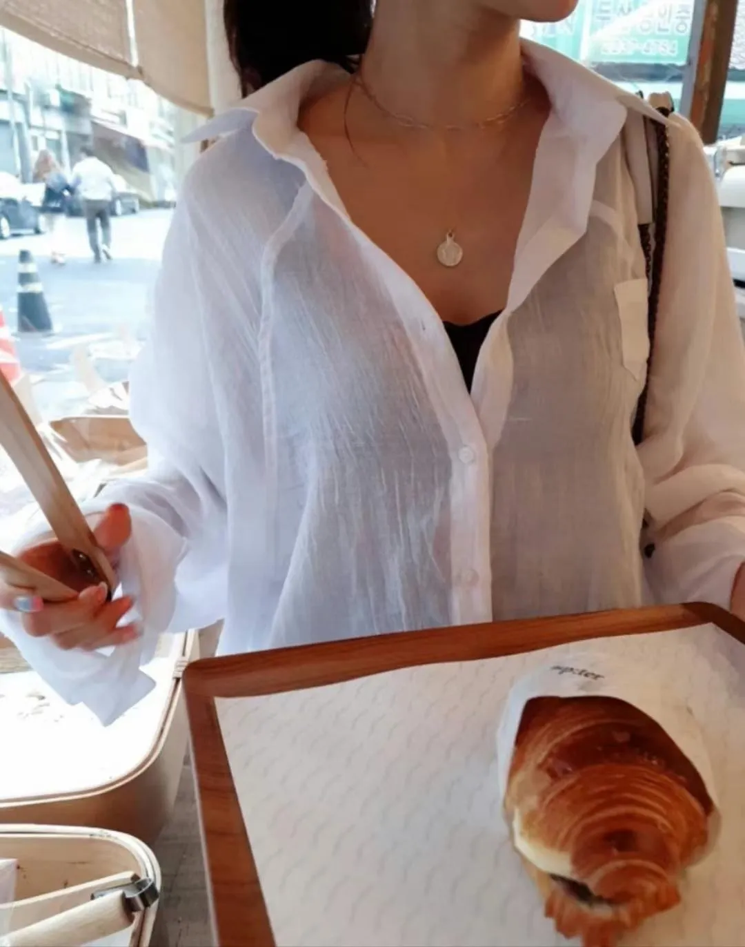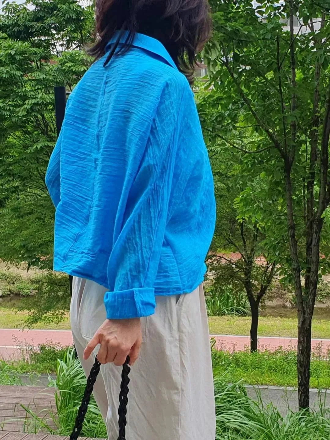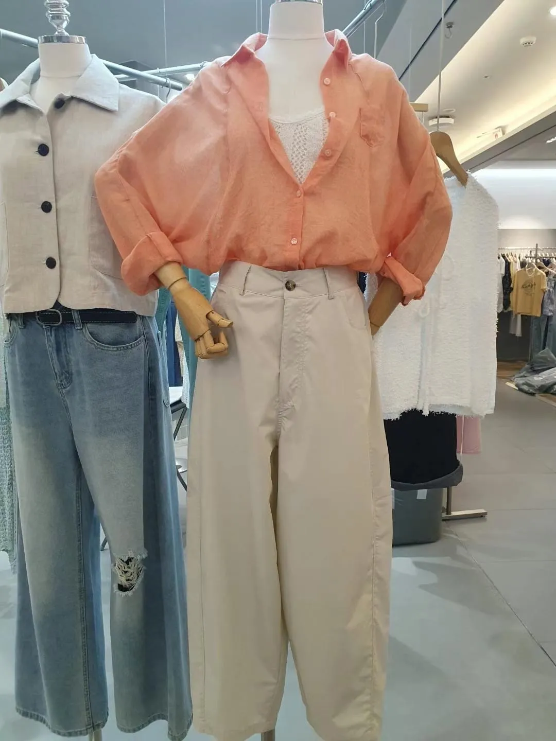 5-6側邊小口袋透膚棉麻襯衫