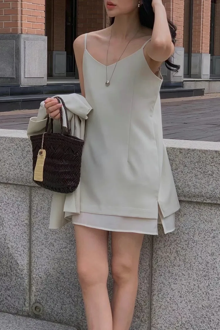 5-6細肩帶西料洋裝