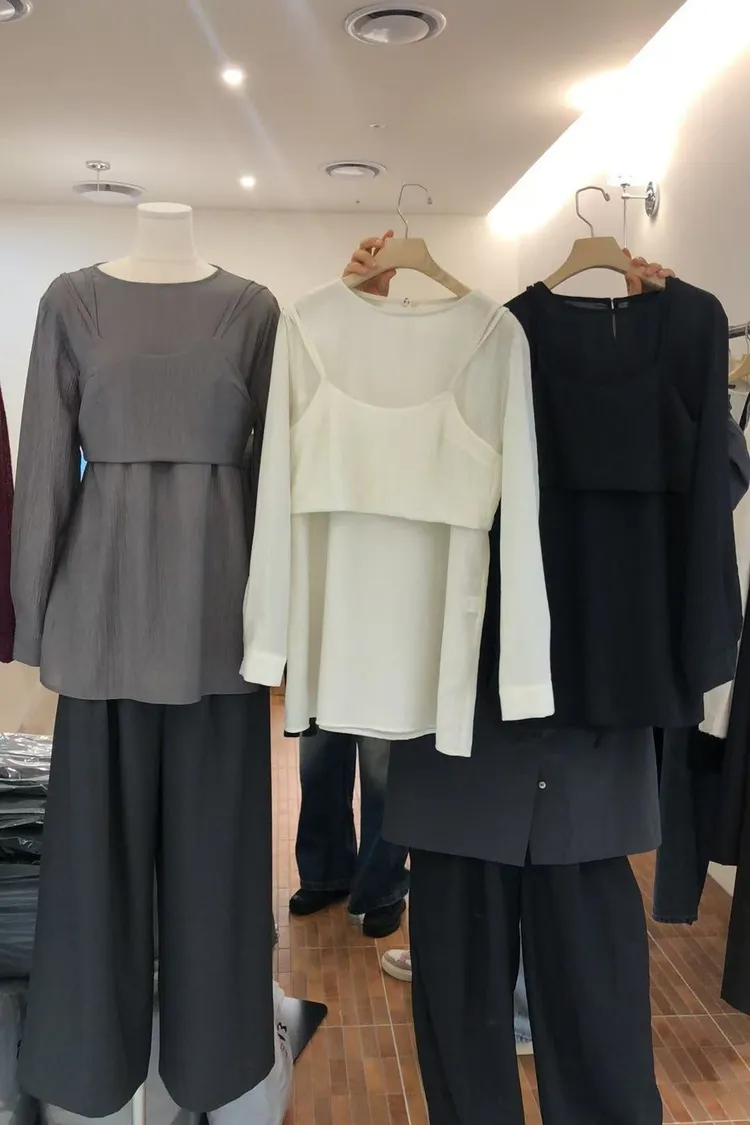 5-9兩件式細肩背心壓紋上衣