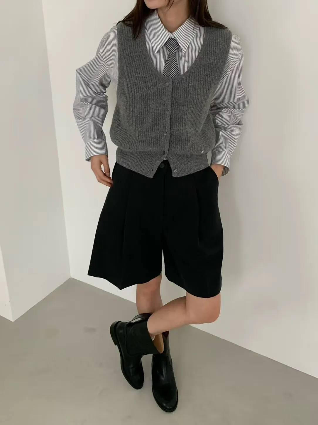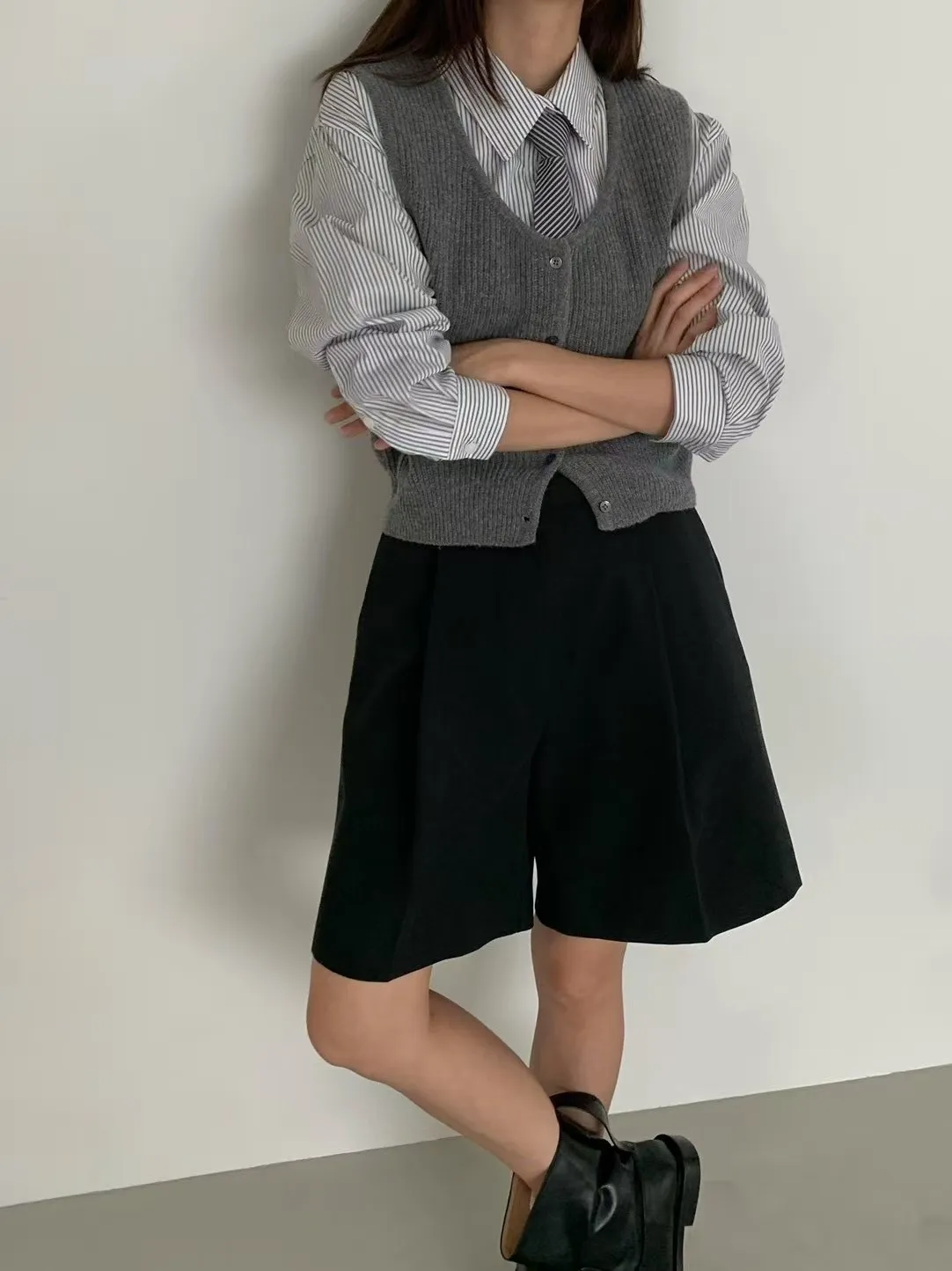 5-9前打褶傘型四分褲
