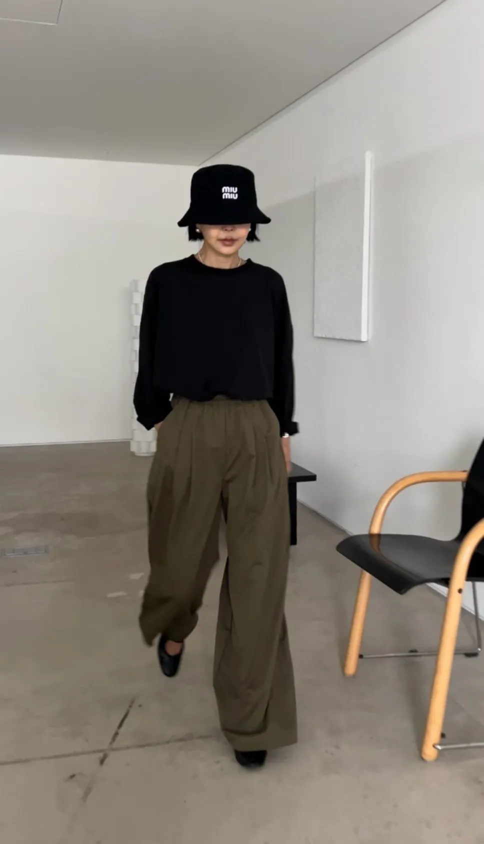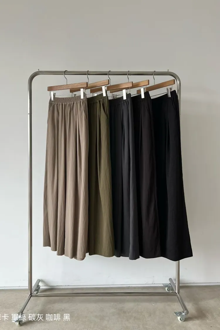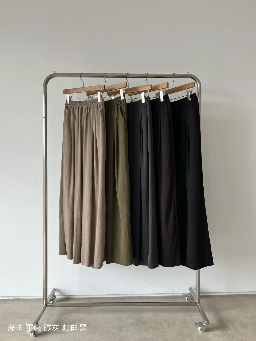 5-9鬆緊腰圍前壓褶直筒寬褲