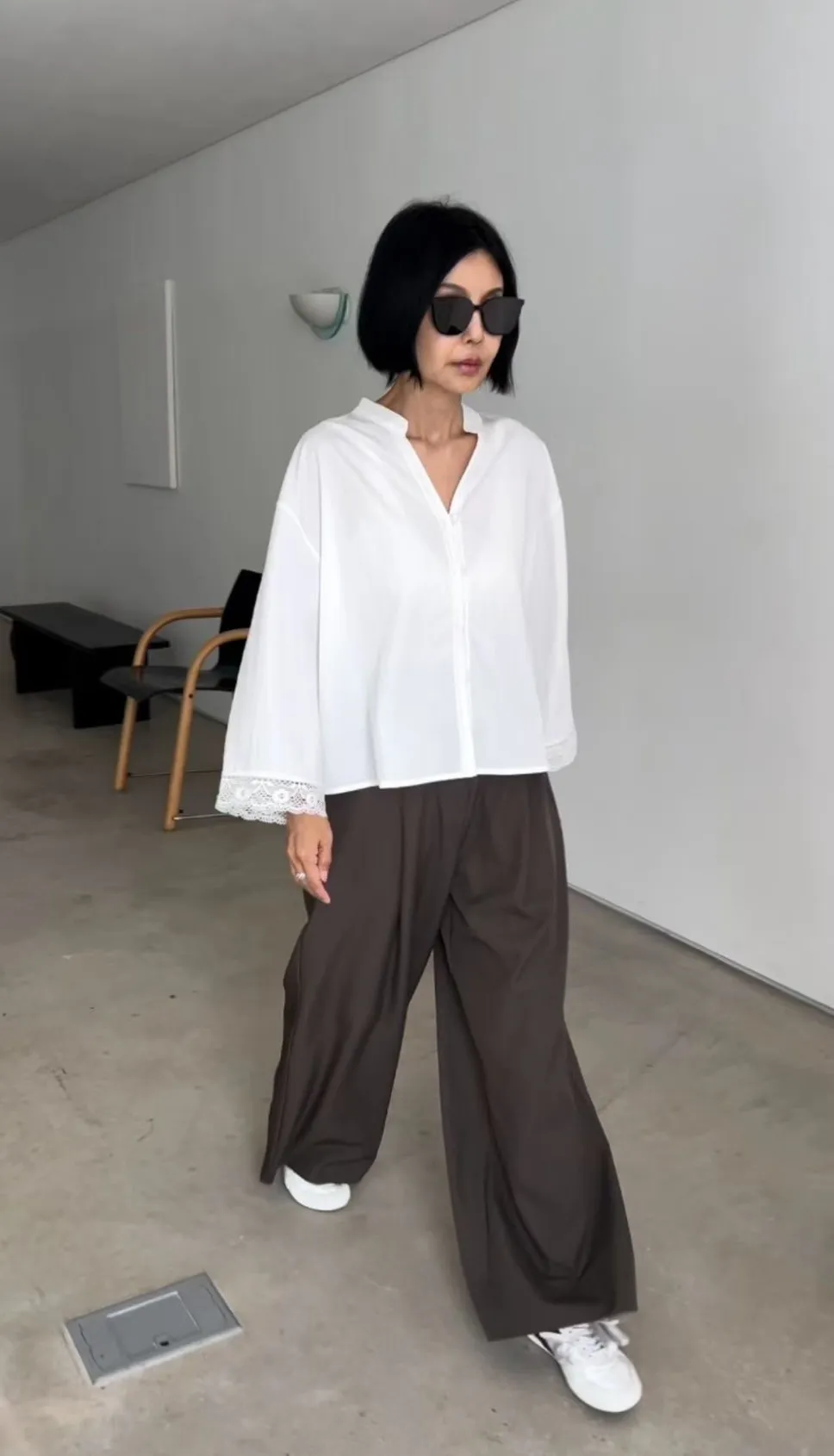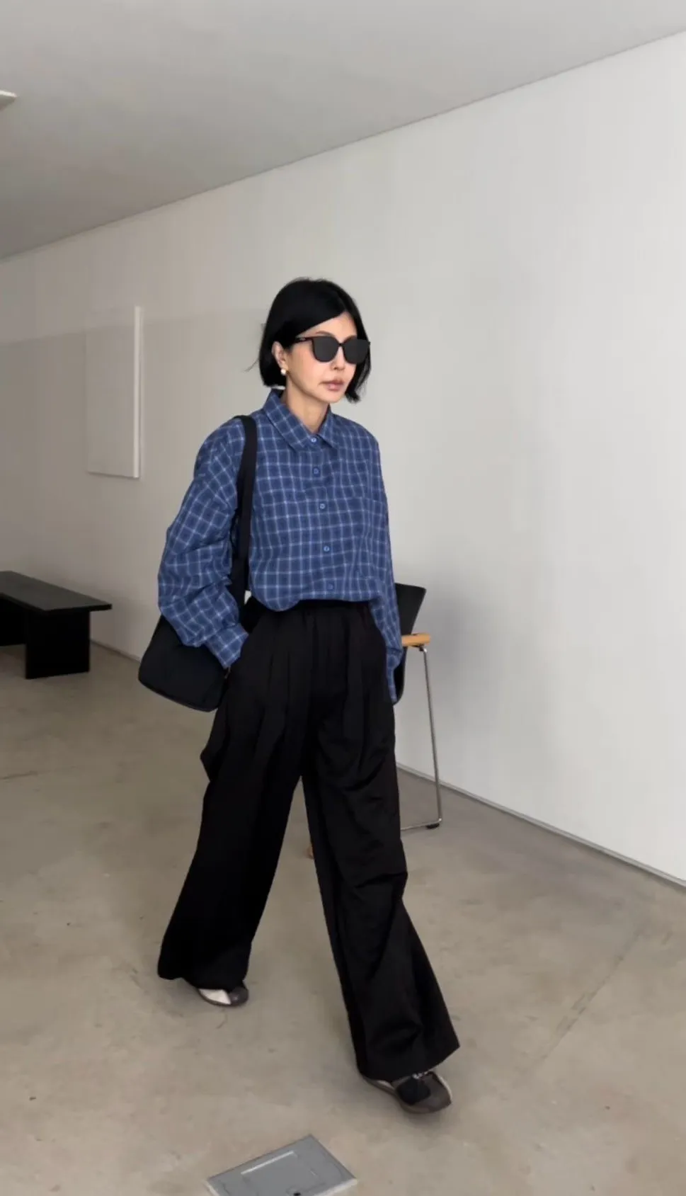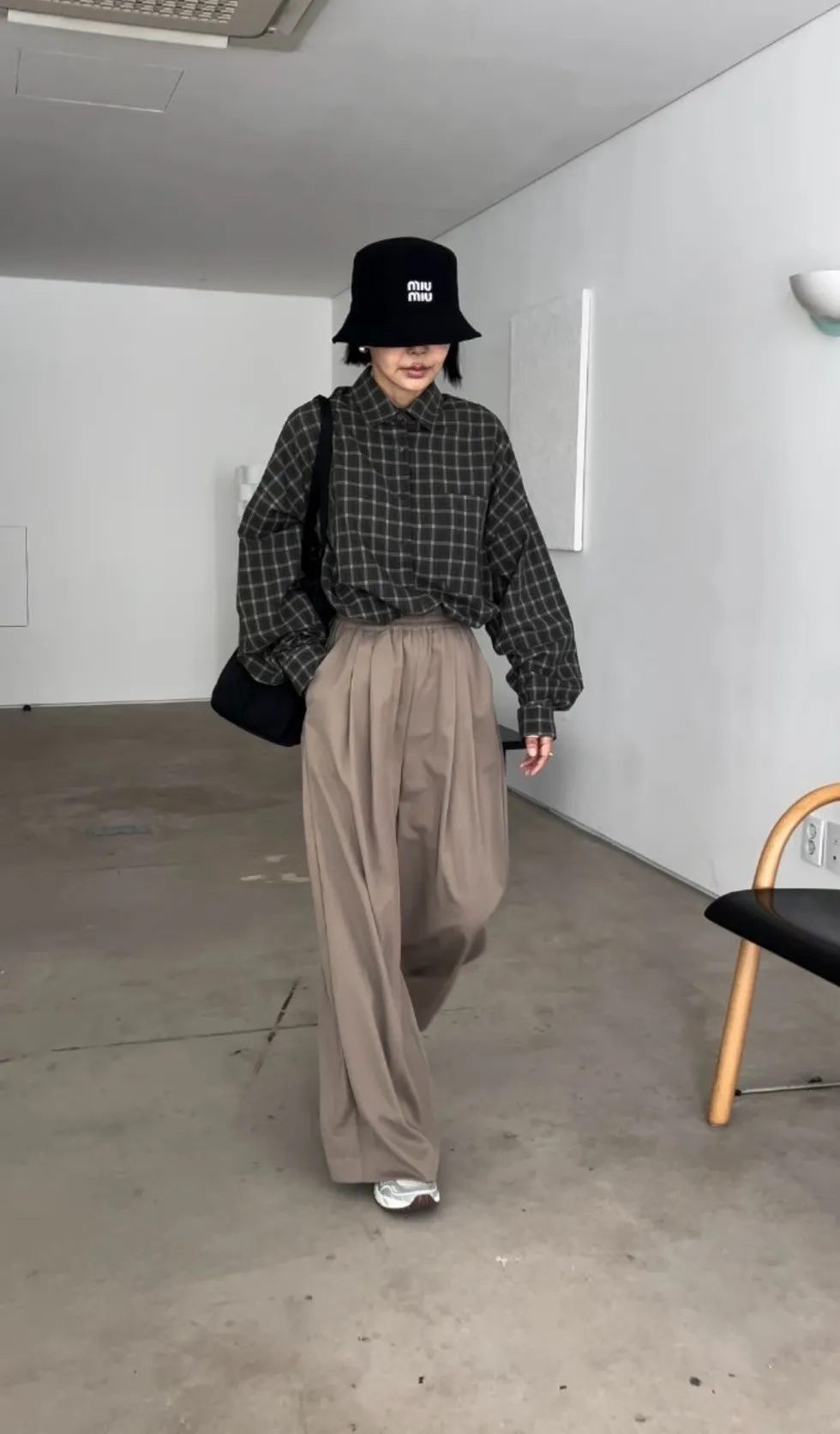5-9鬆緊腰圍前壓褶直筒寬褲