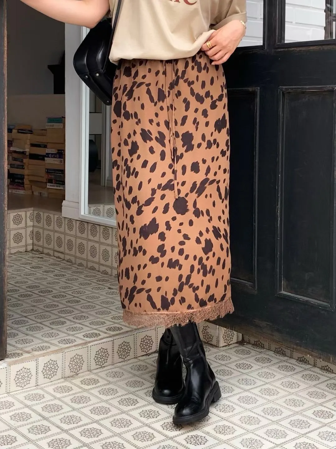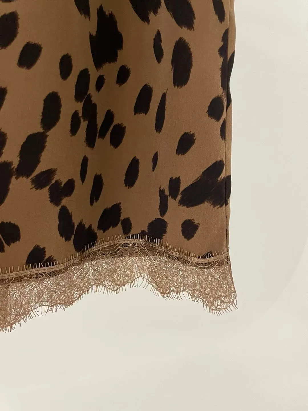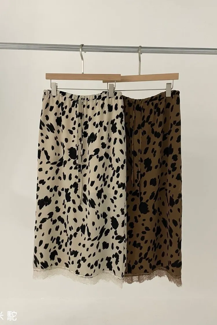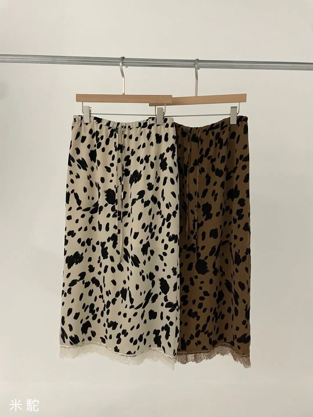 5-9豹紋下擺睫毛蕾絲滑緞八分裙