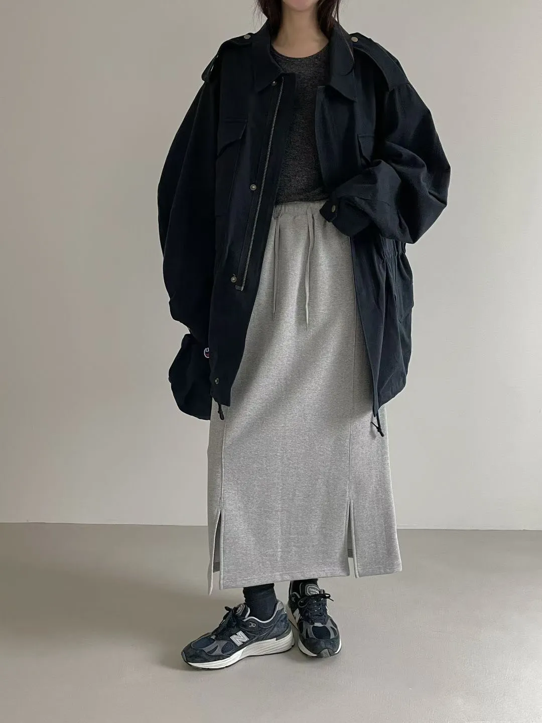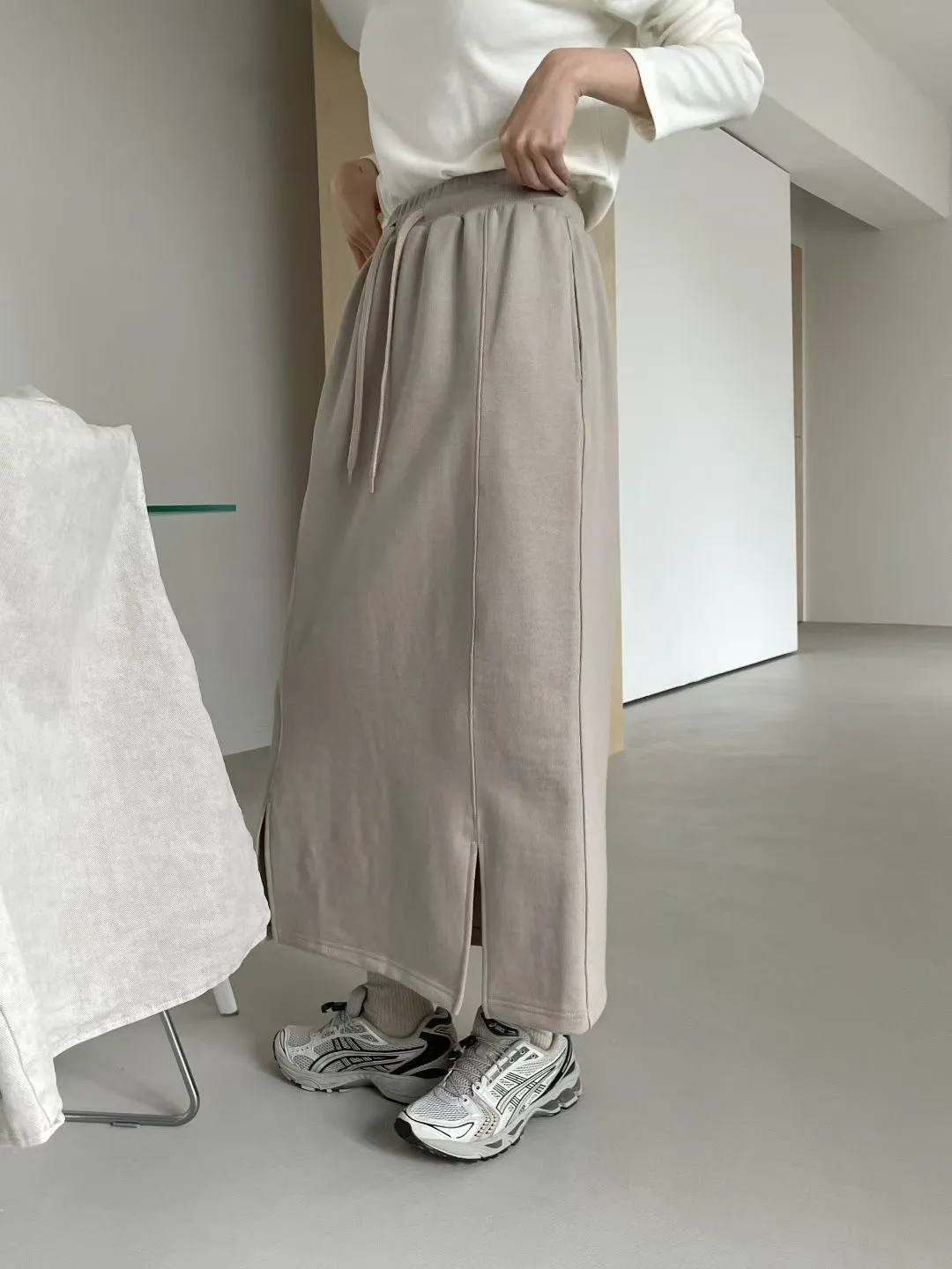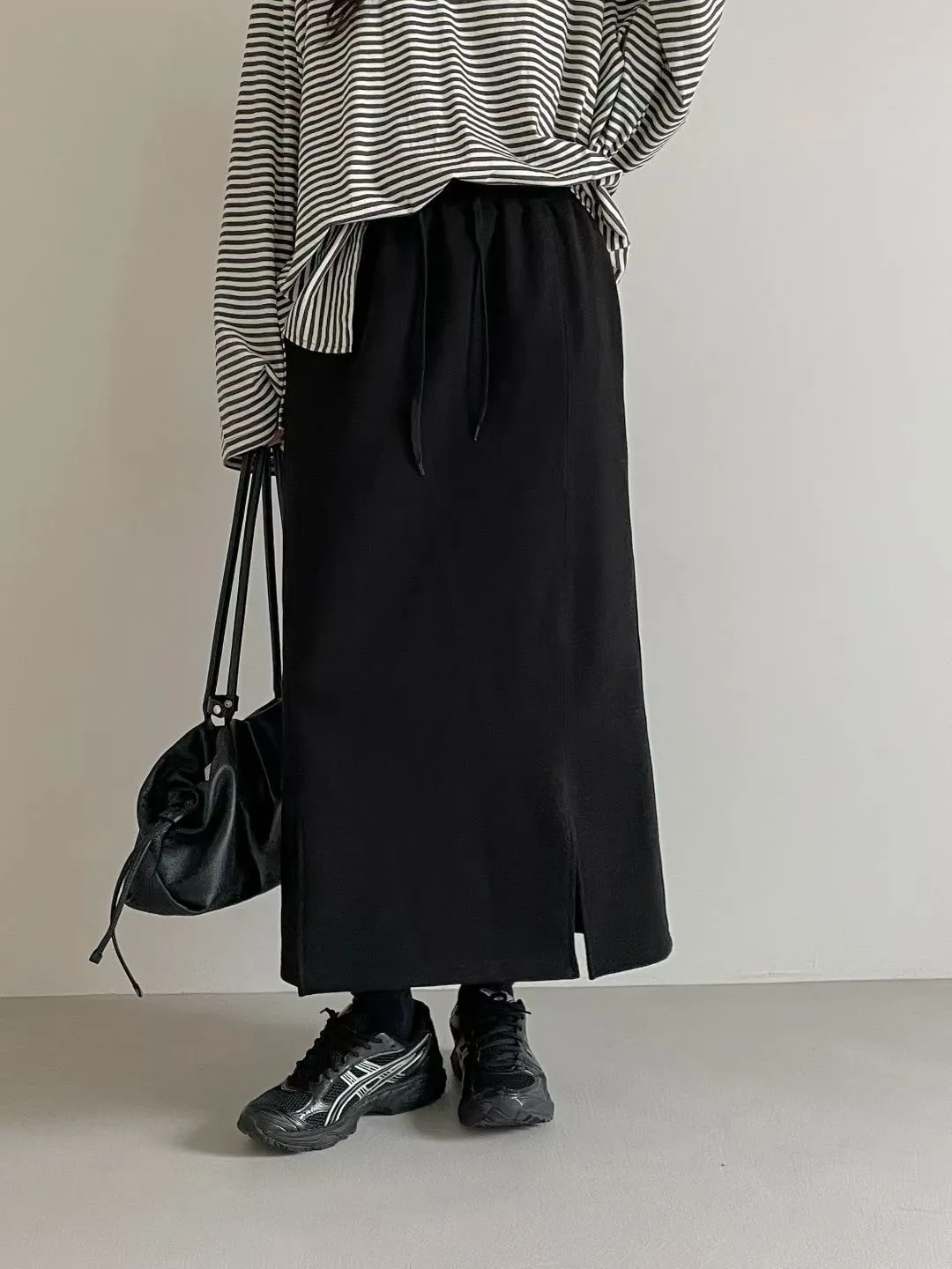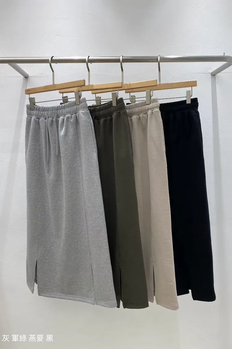 5-9鬆緊抽繩下擺開兩衩棉長裙