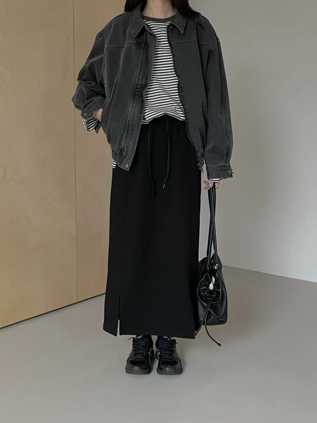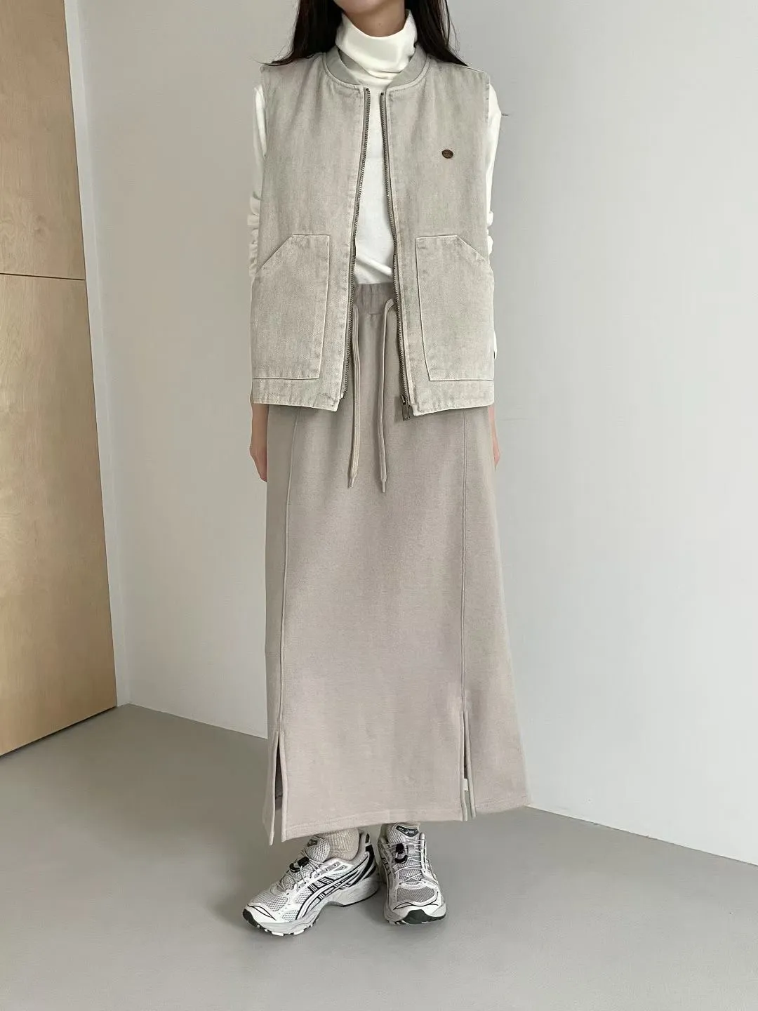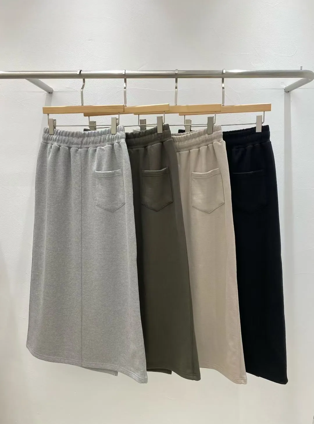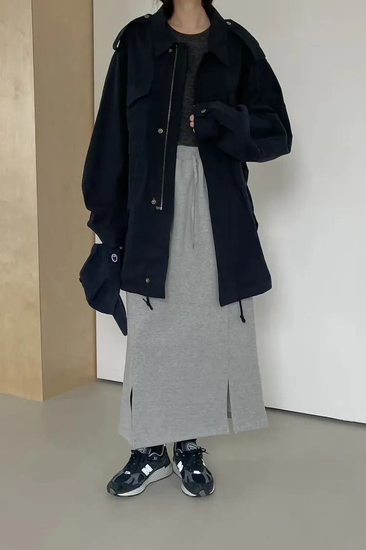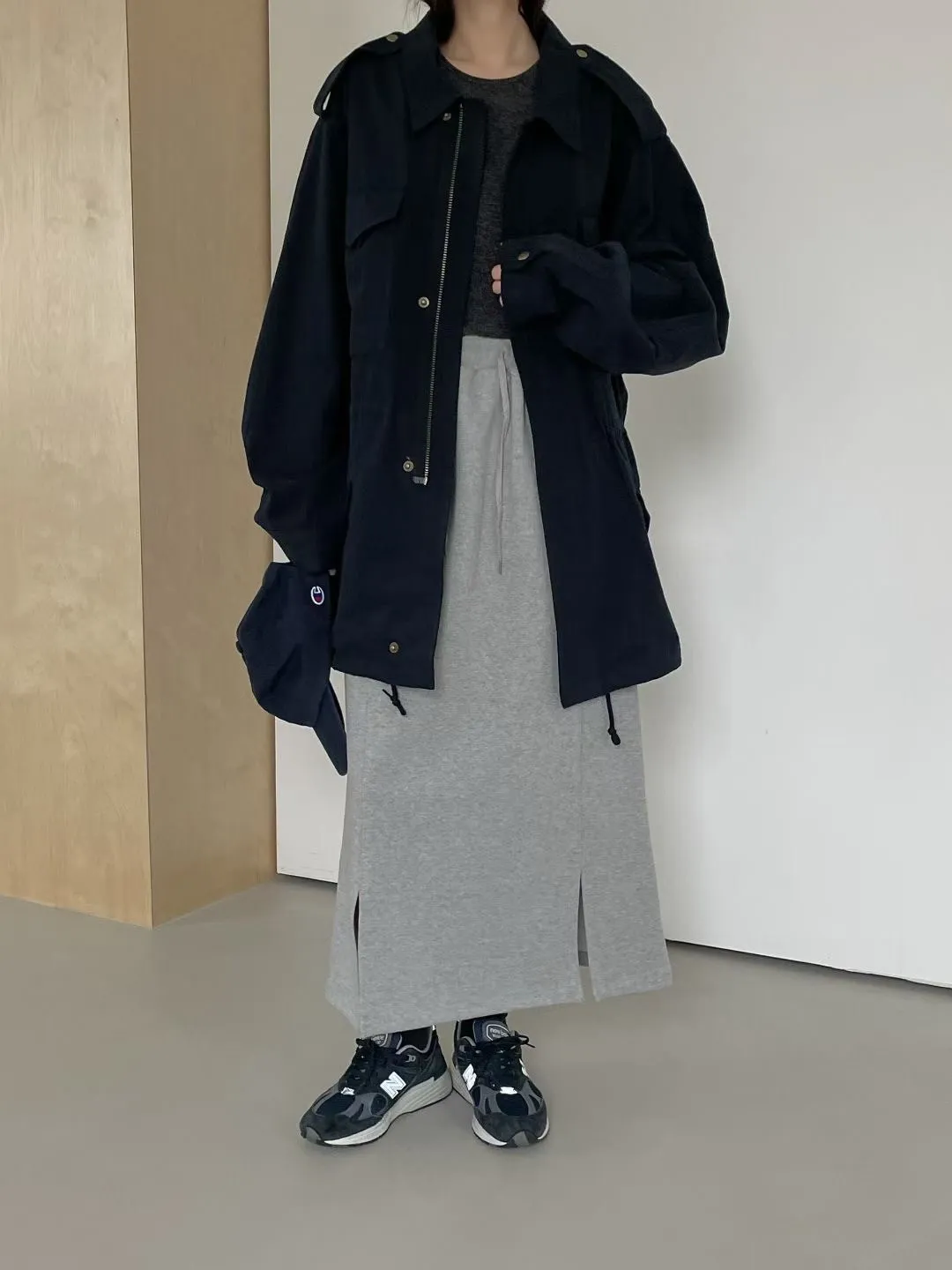 5-9鬆緊抽繩下擺開兩衩棉長裙