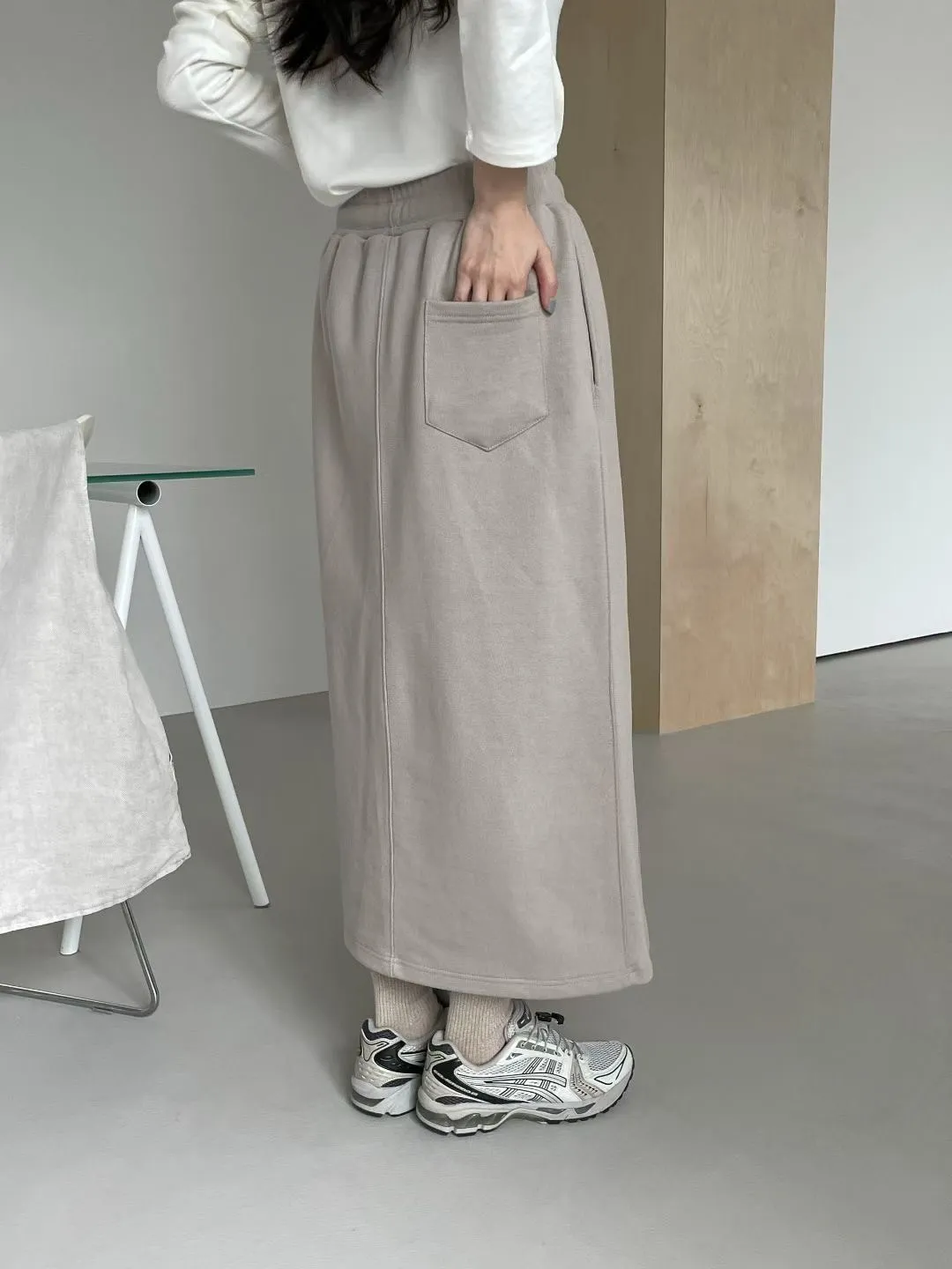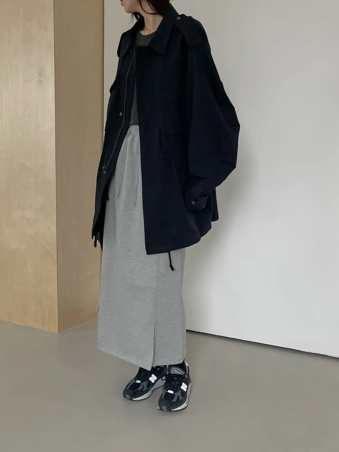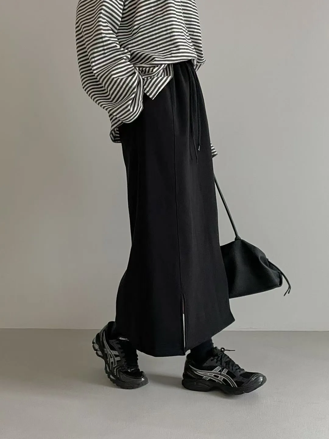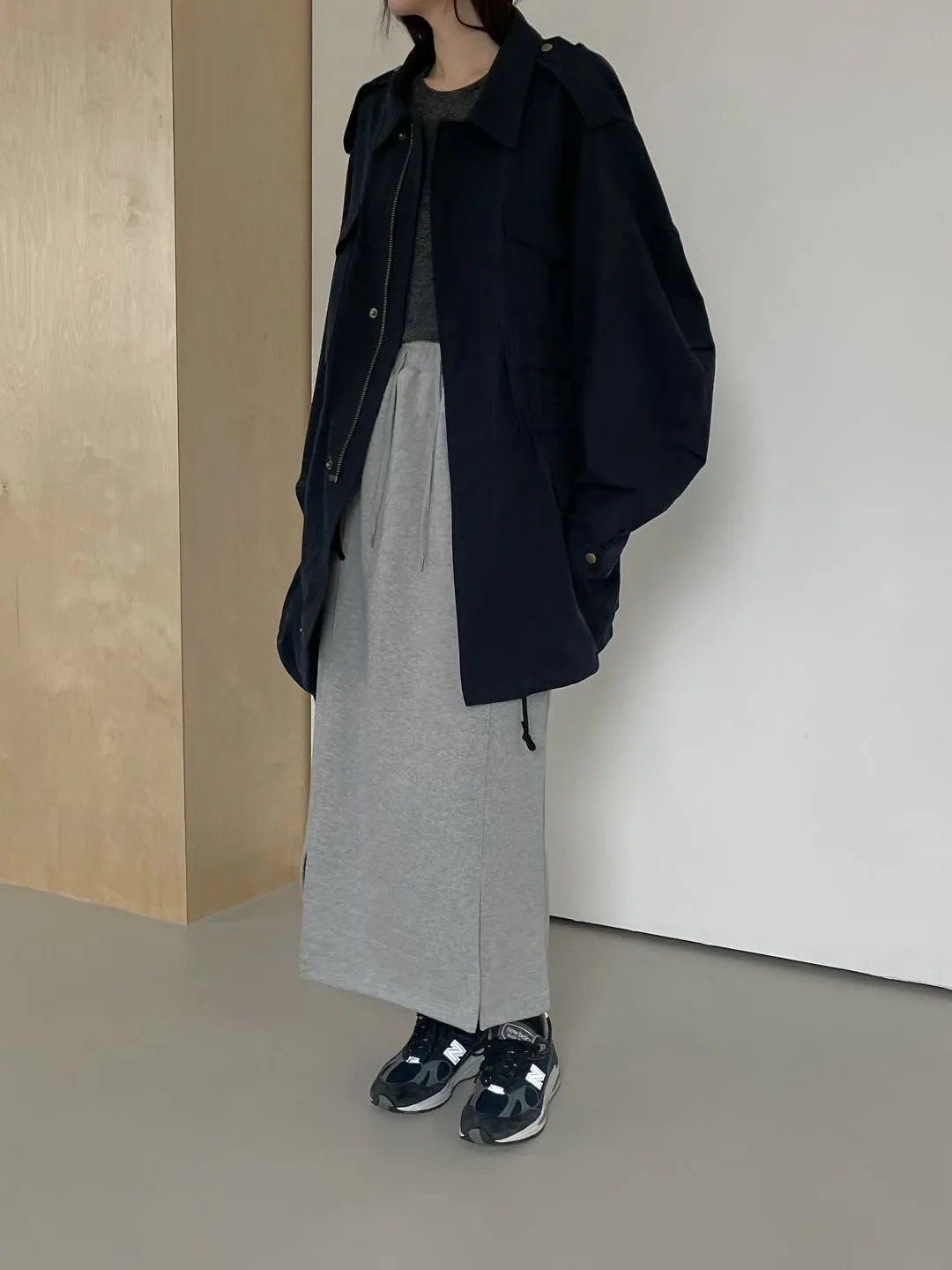 5-9鬆緊抽繩下擺開兩衩棉長裙