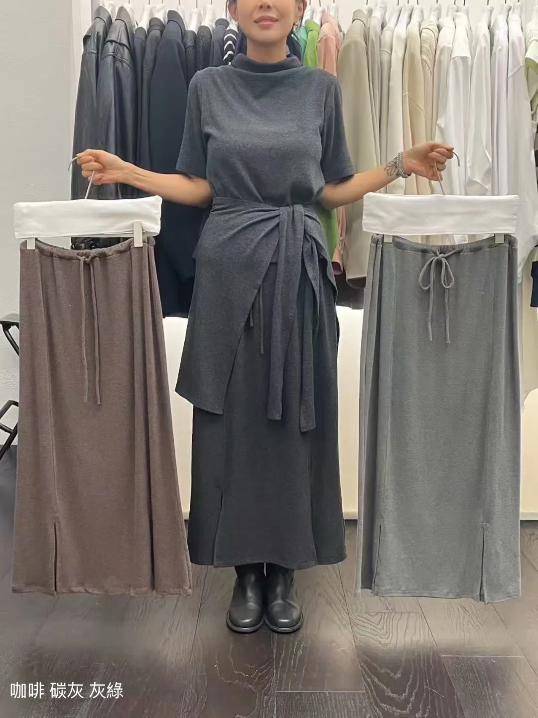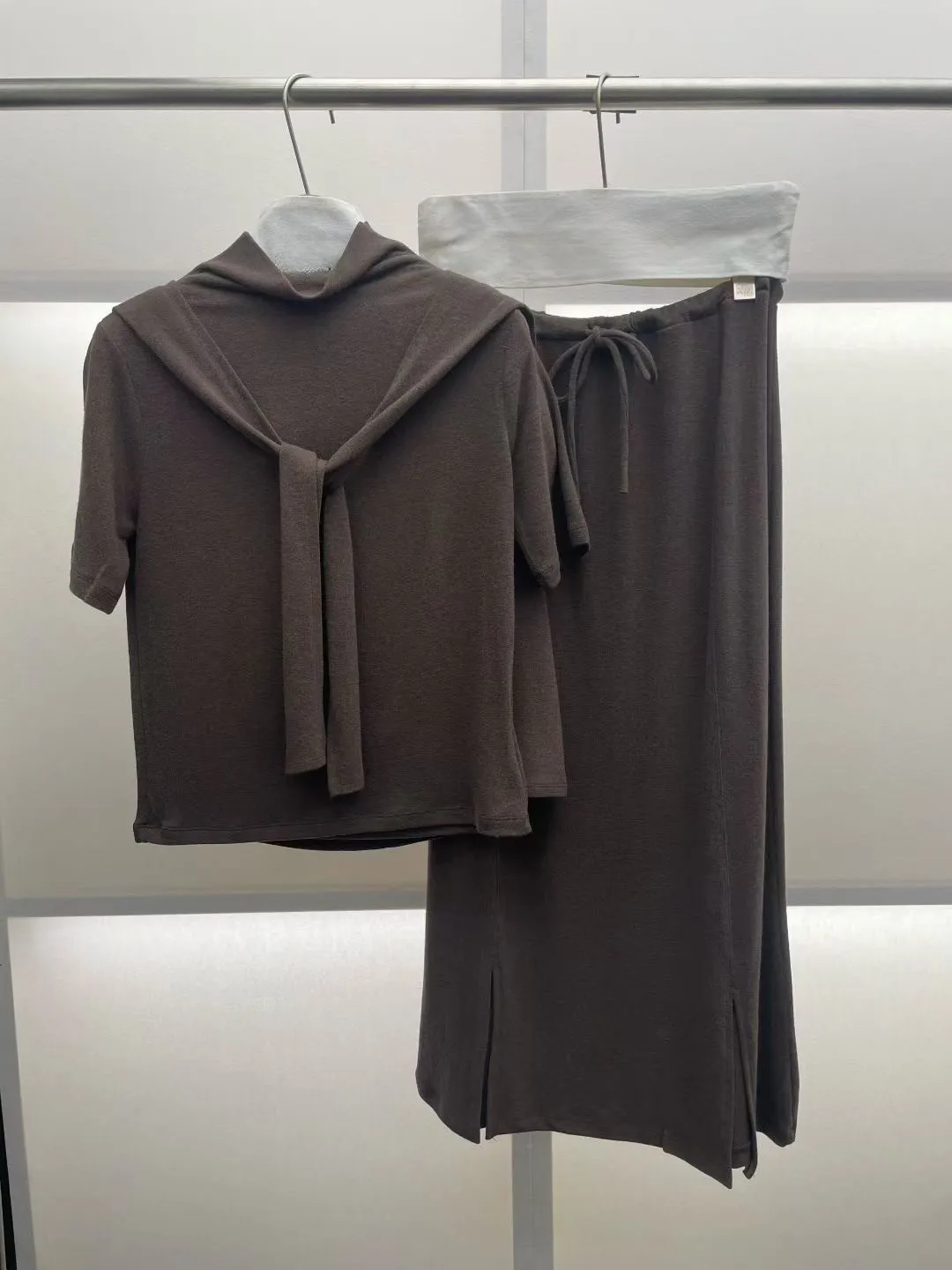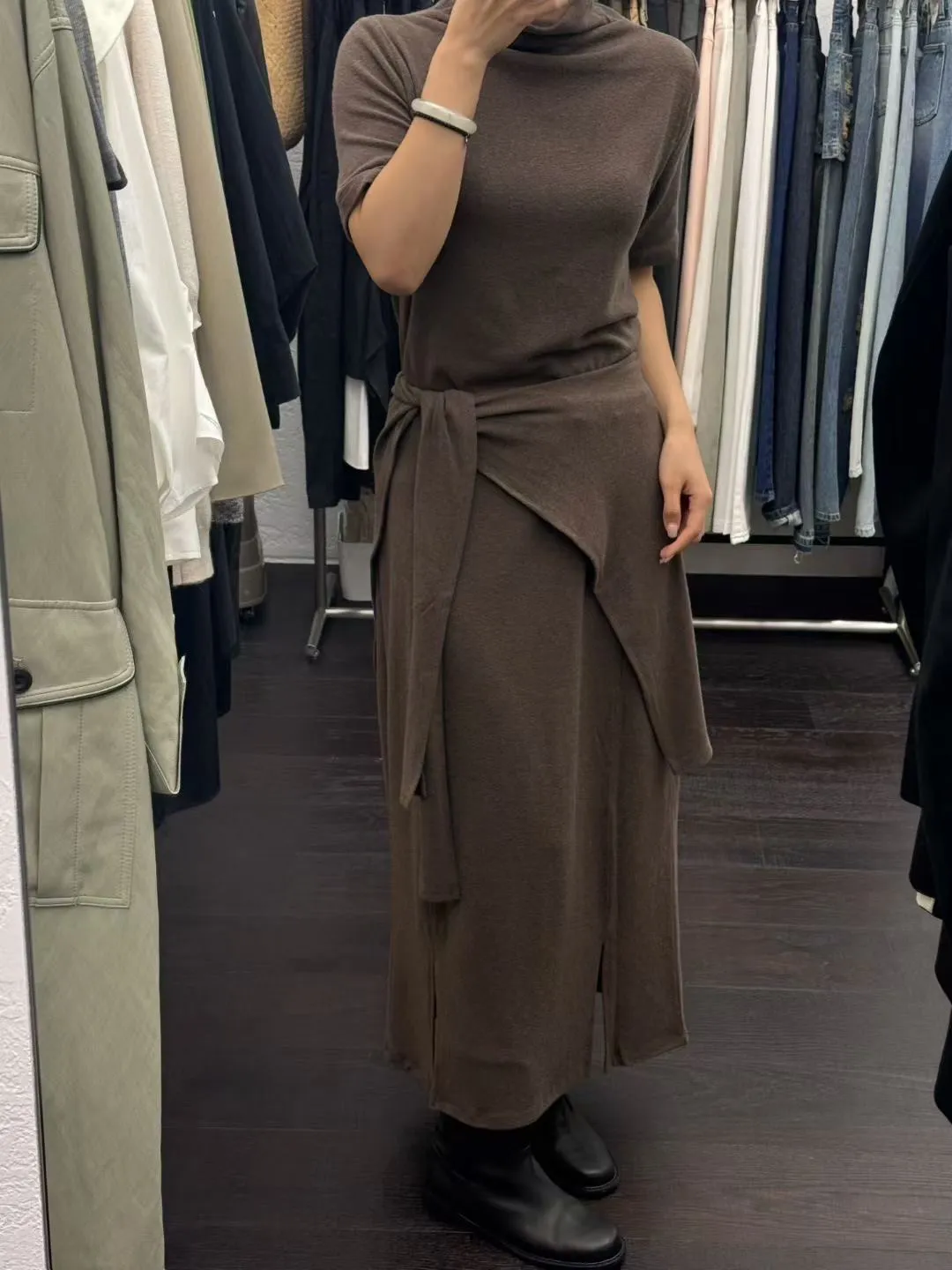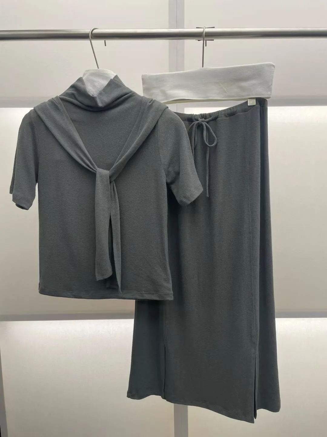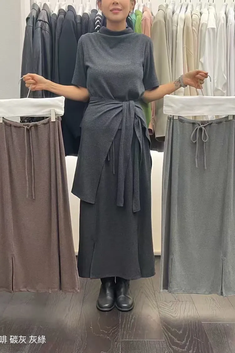 5-9混羊毛掛巾立領上衣+長裙套裝