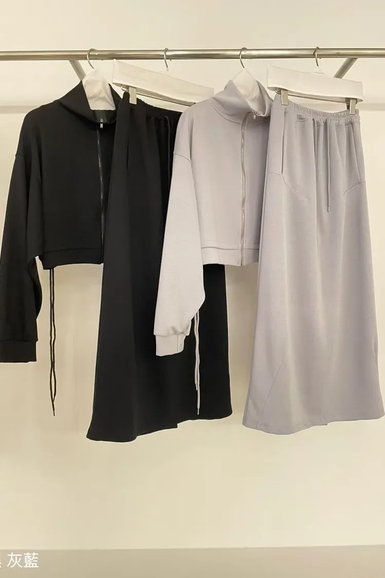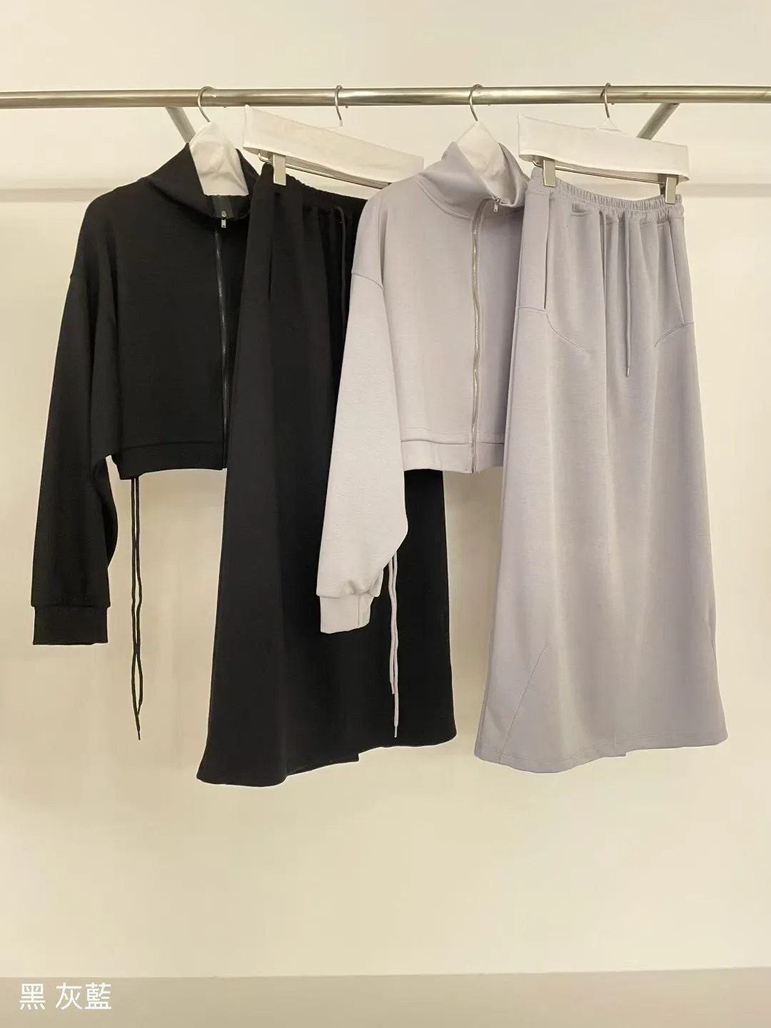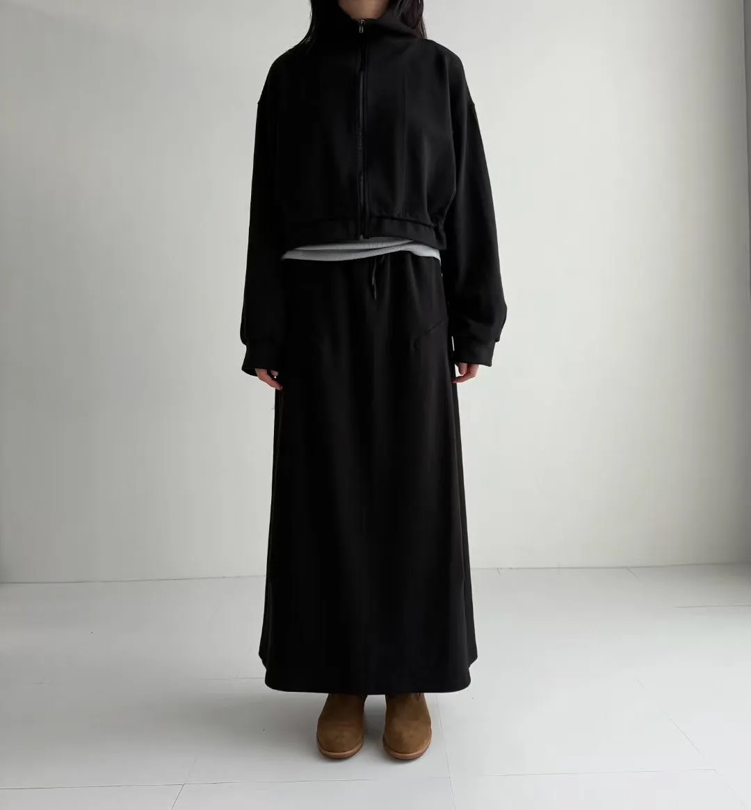 5-9立領棉質外套+鬆緊腰圍棉質長裙套裝