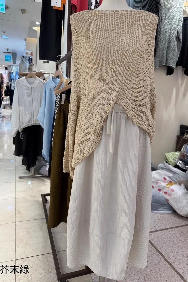 5-9下擺圓弧壓褶長裙