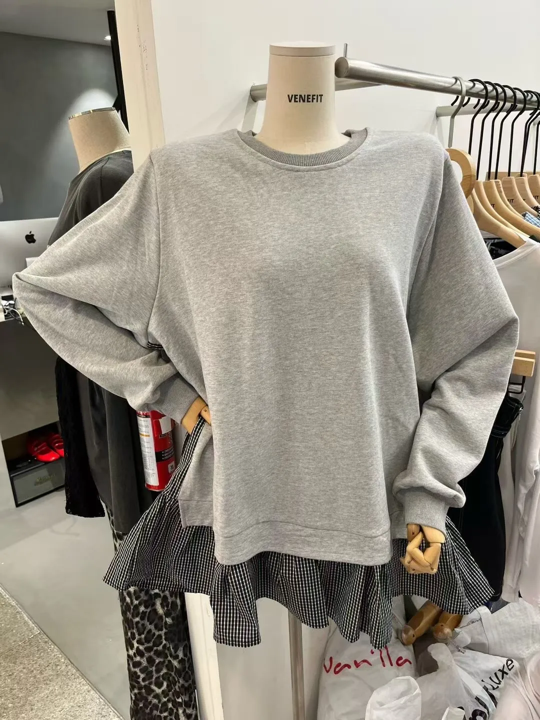 5-9拼接小格下擺棉質洋裝