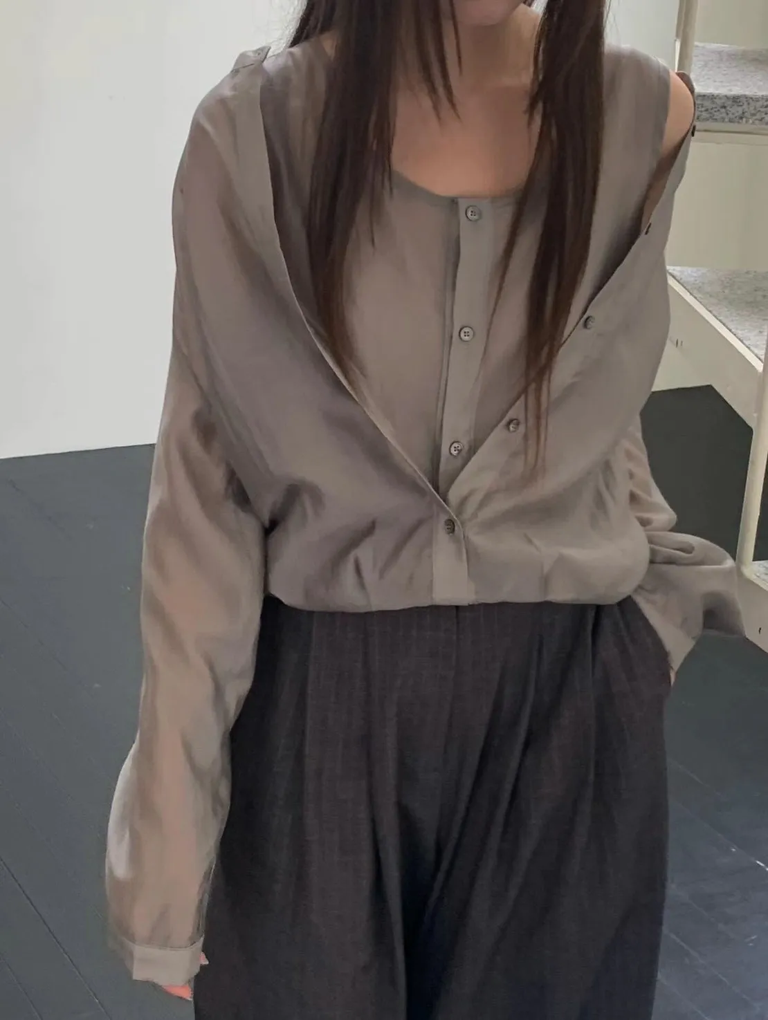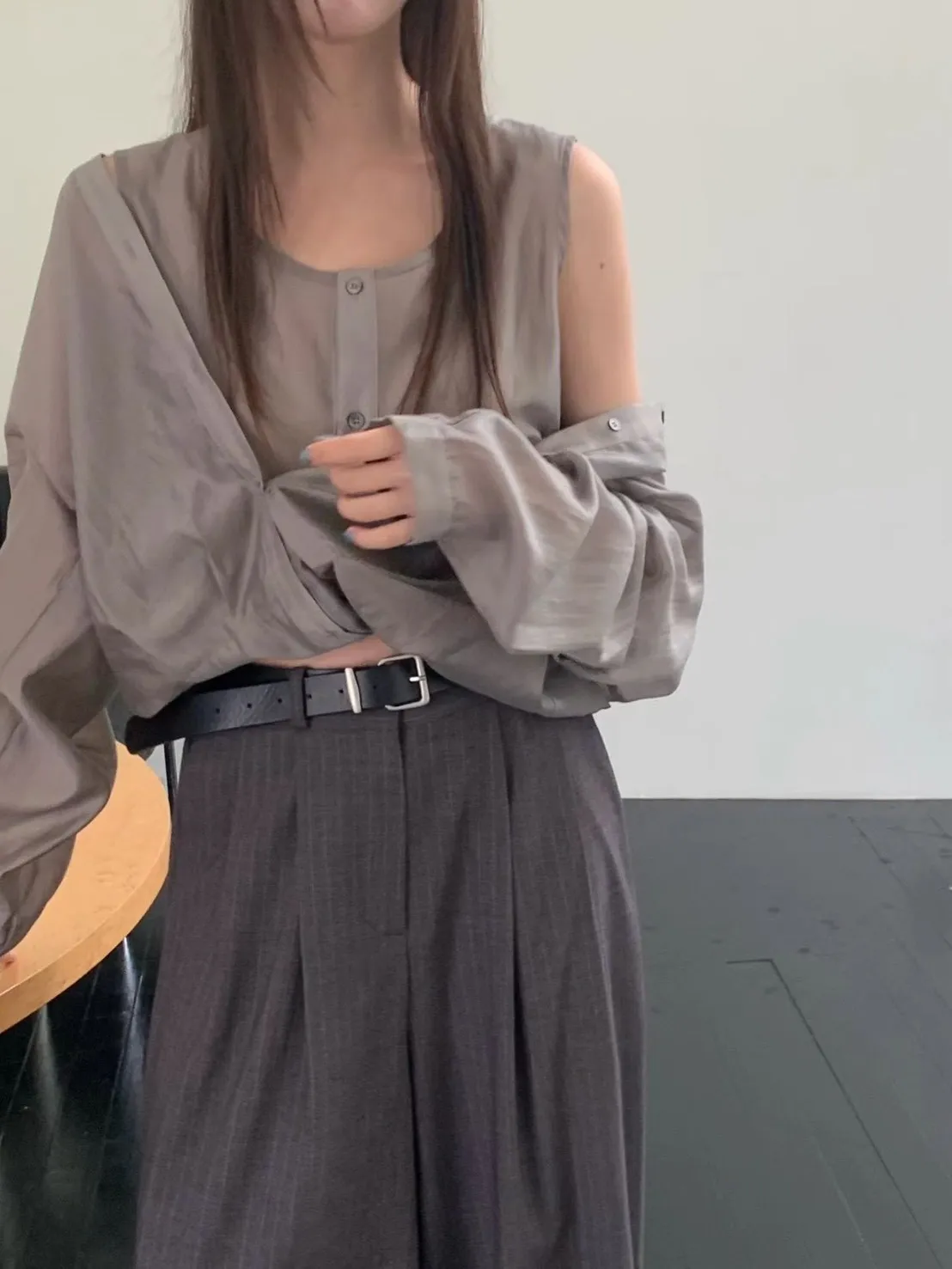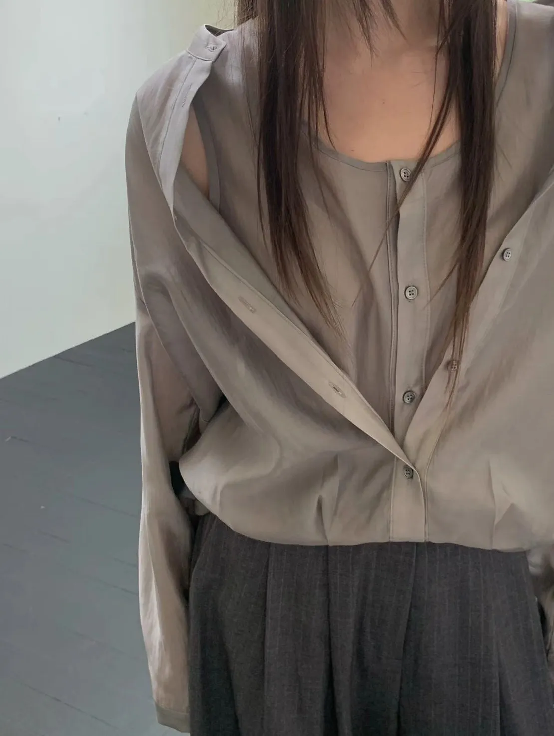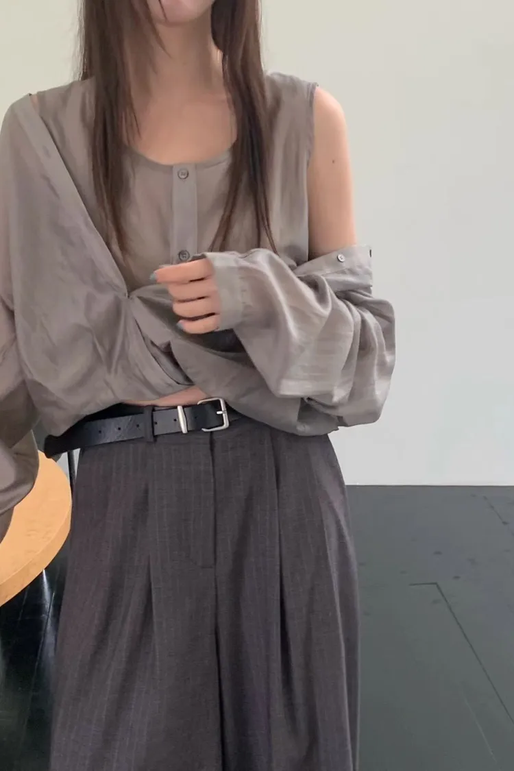5-10假兩件質感滑緞上衣