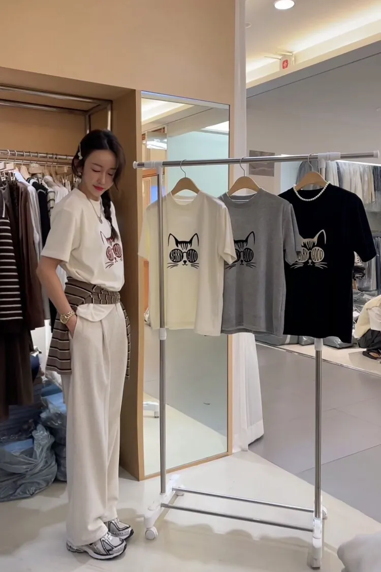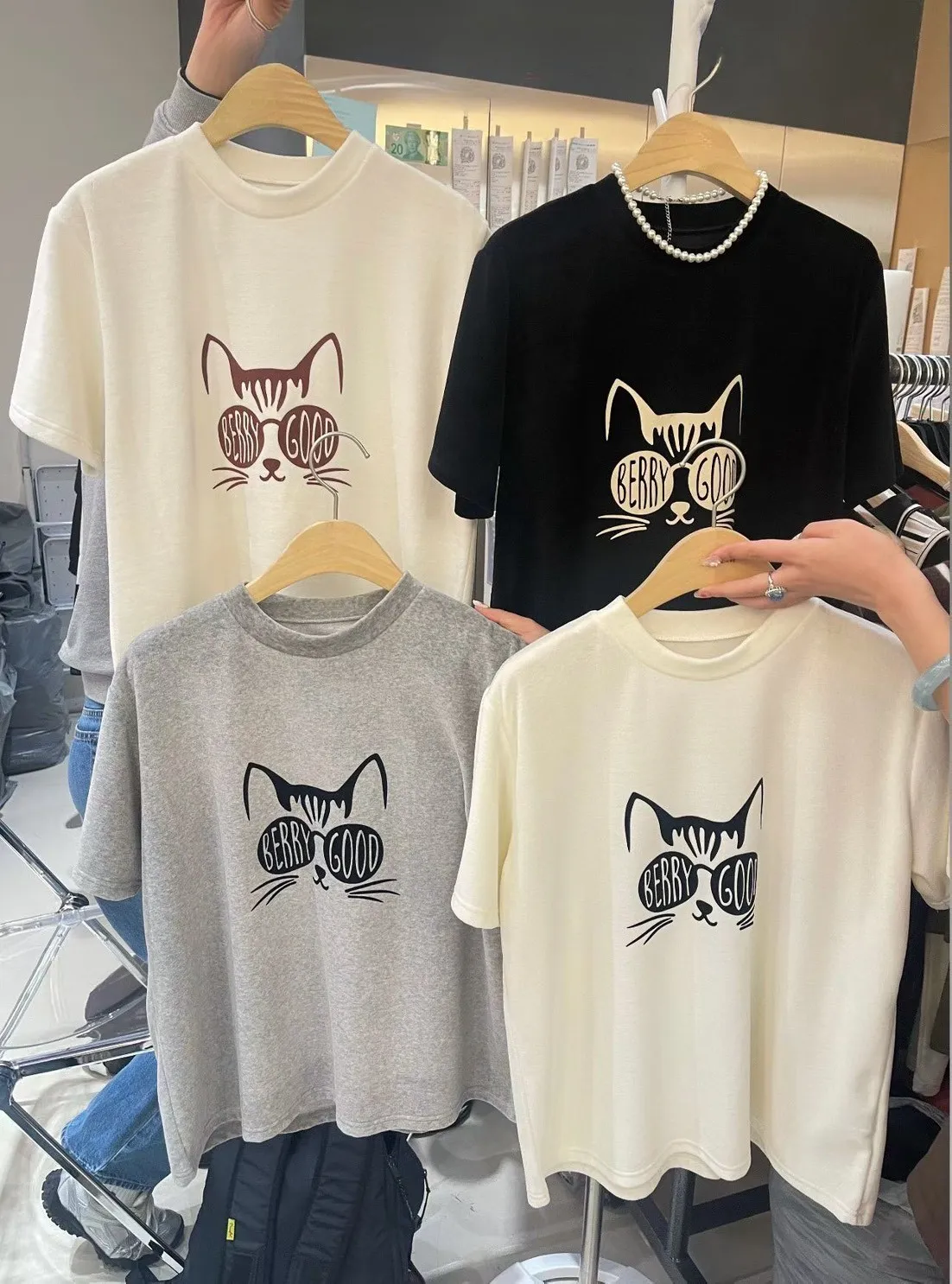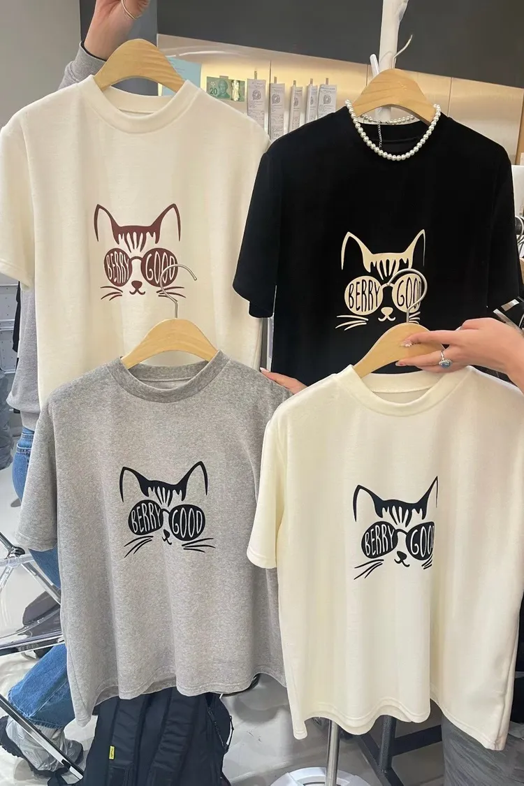 5-10酷酷墨鏡貓咪頭植絨棉T