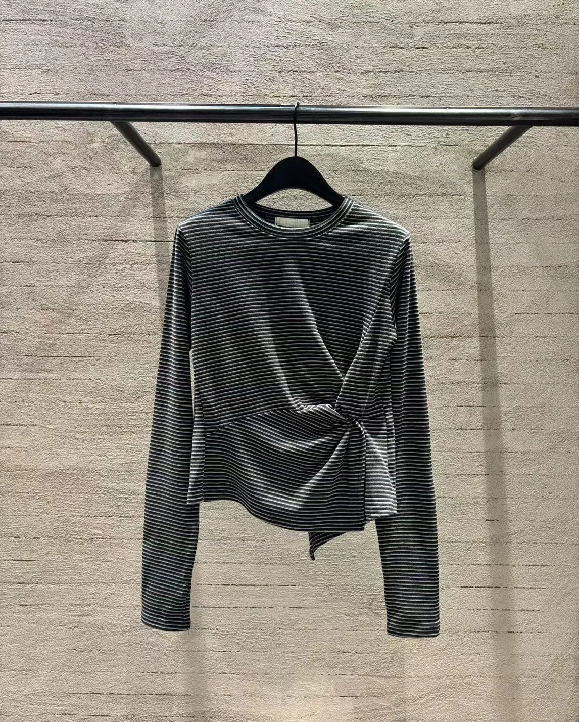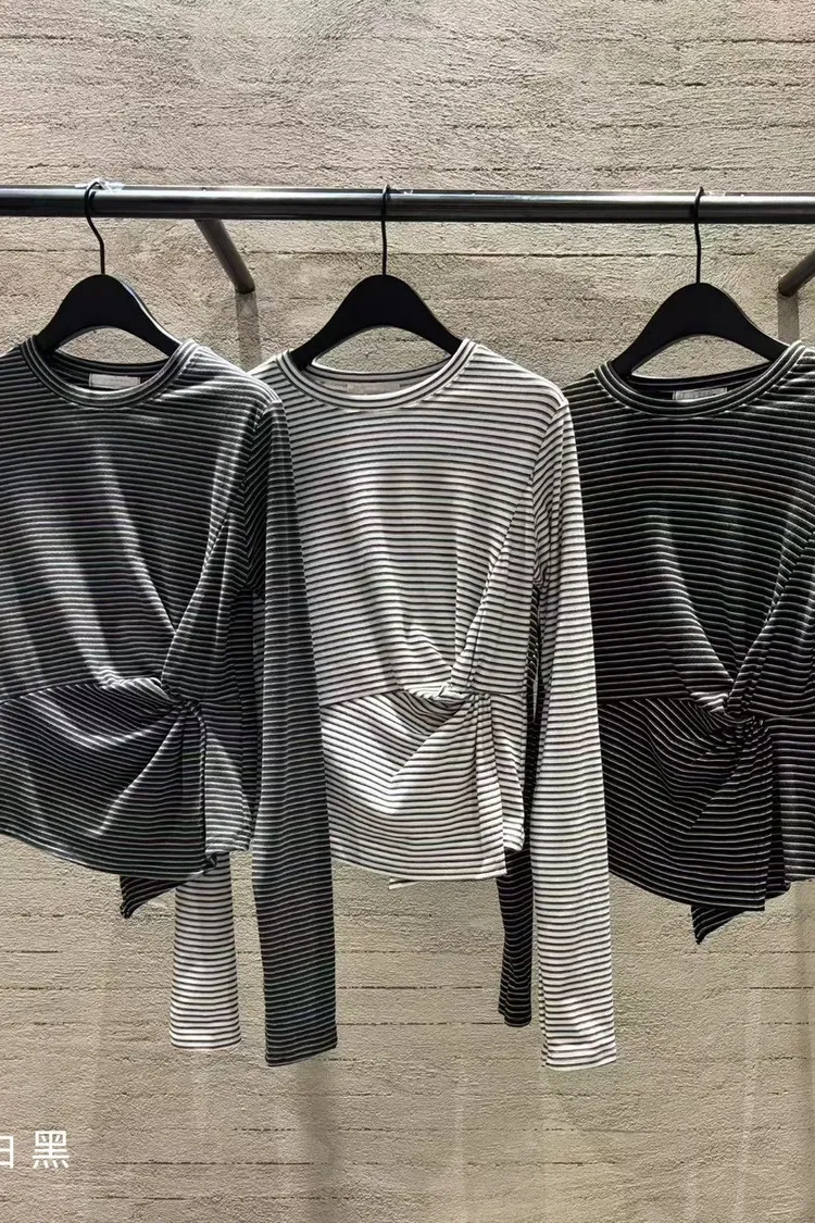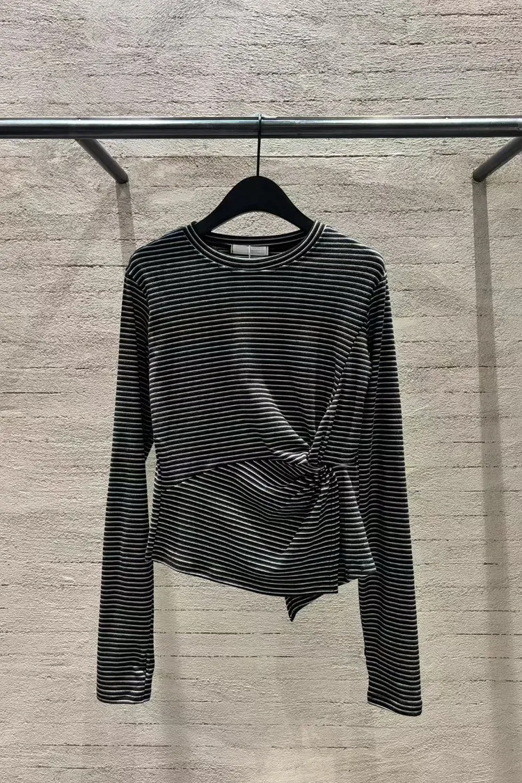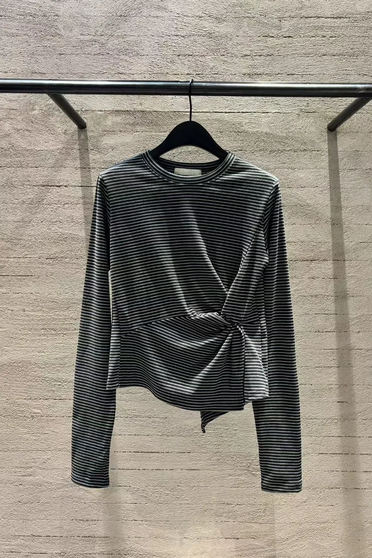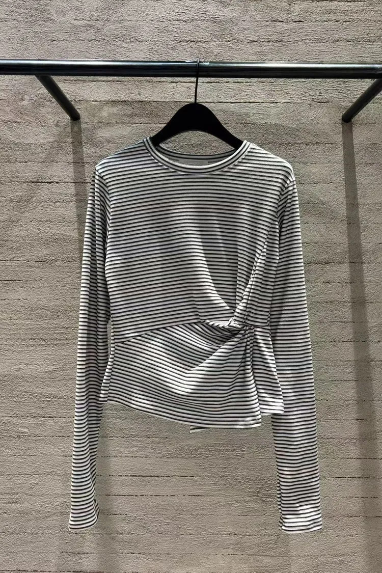 5-10側抓皺設計細橫條柔軟毛料衣