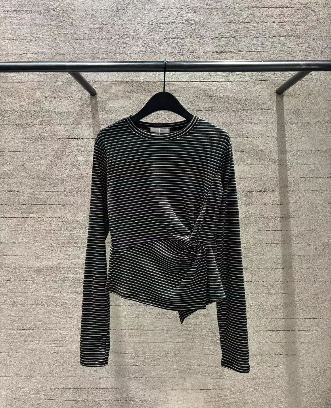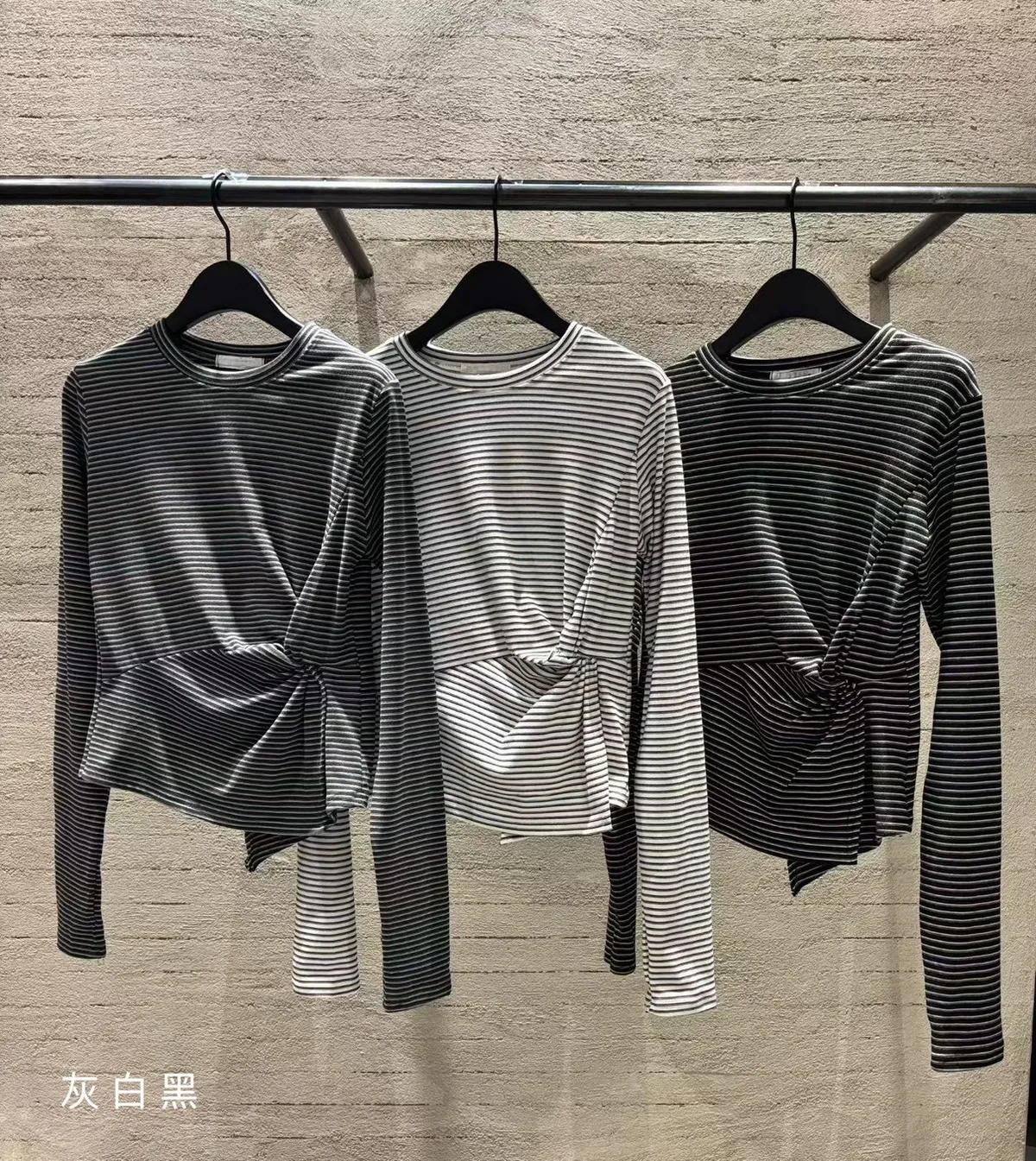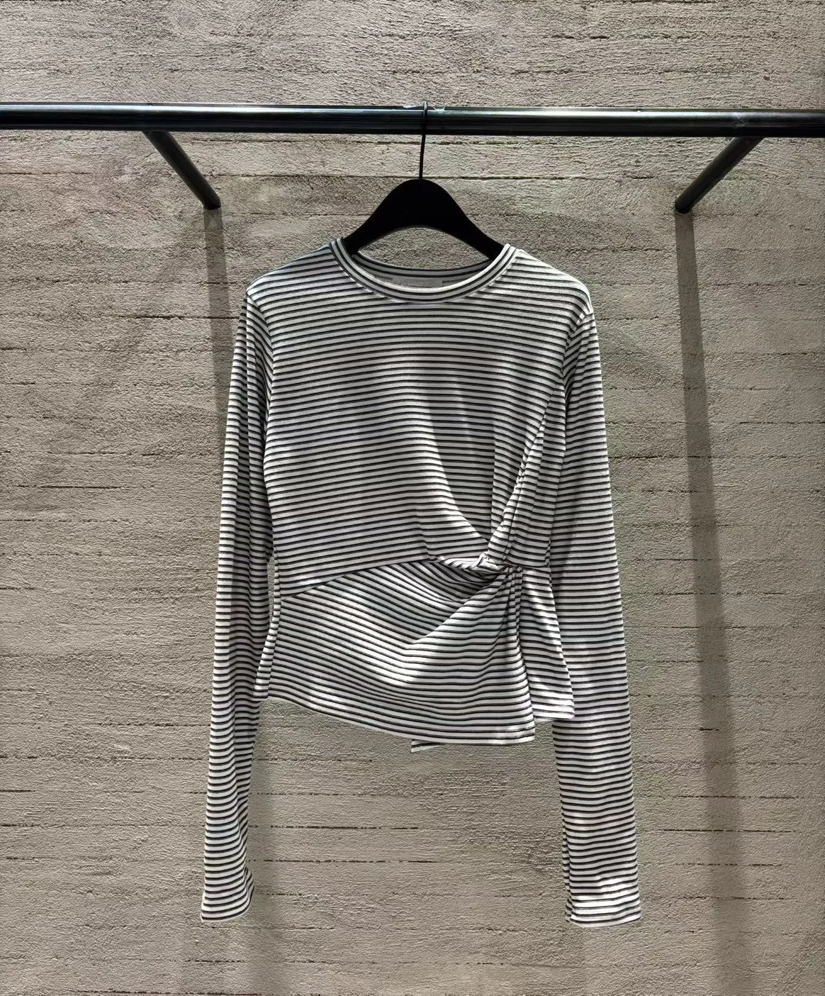 5-10側抓皺設計細橫條柔軟毛料衣