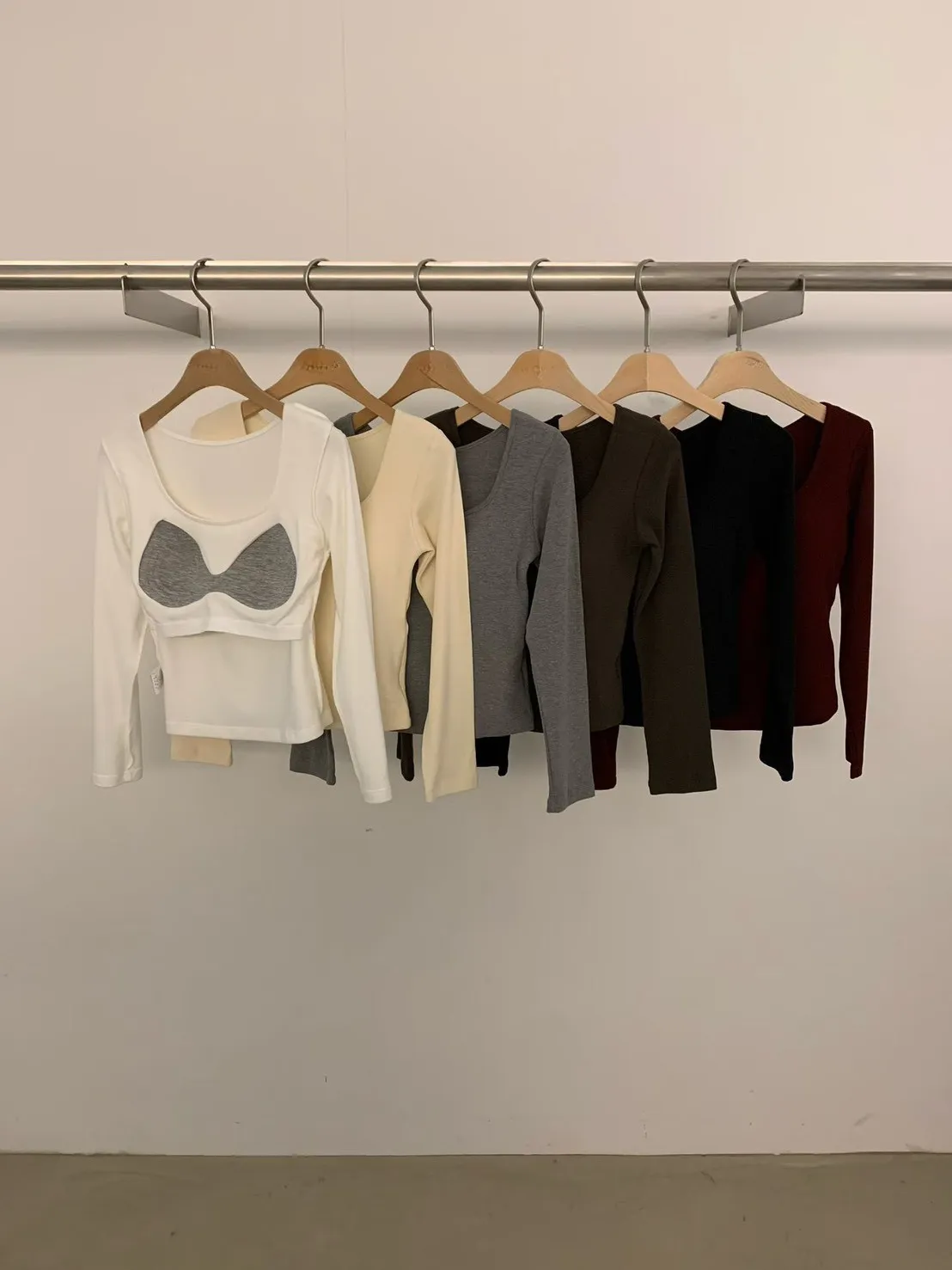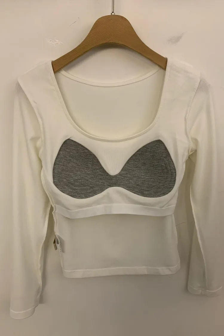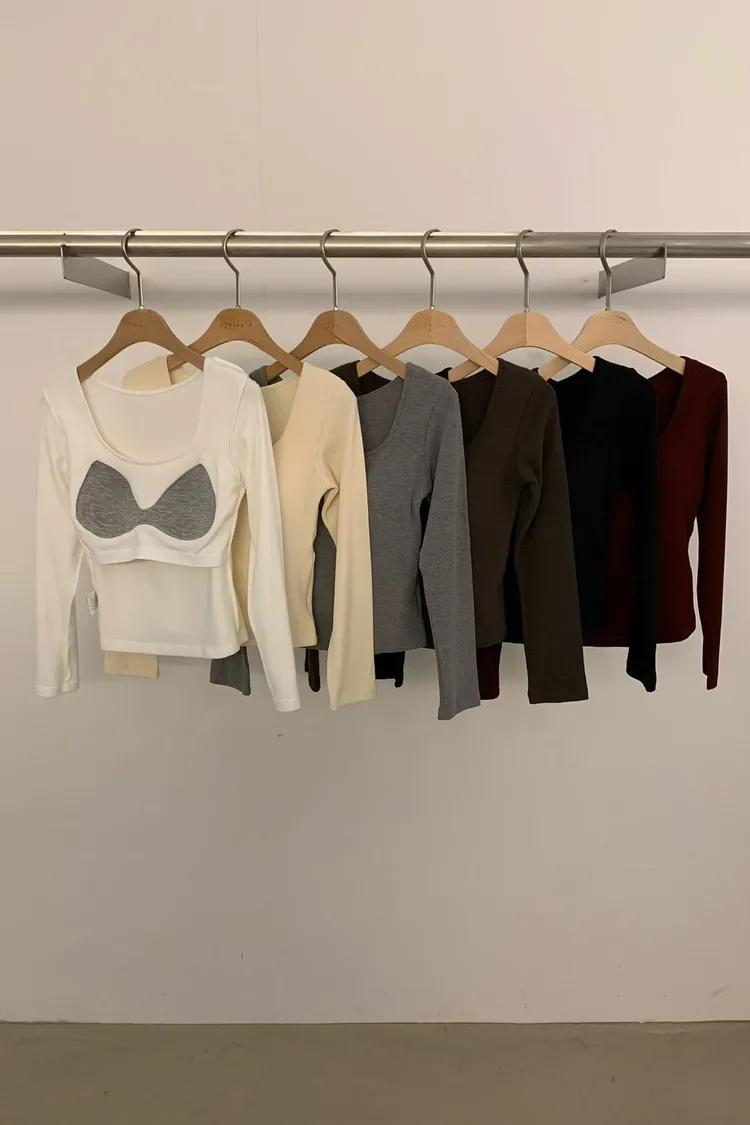 5-10胸墊長袖-U領