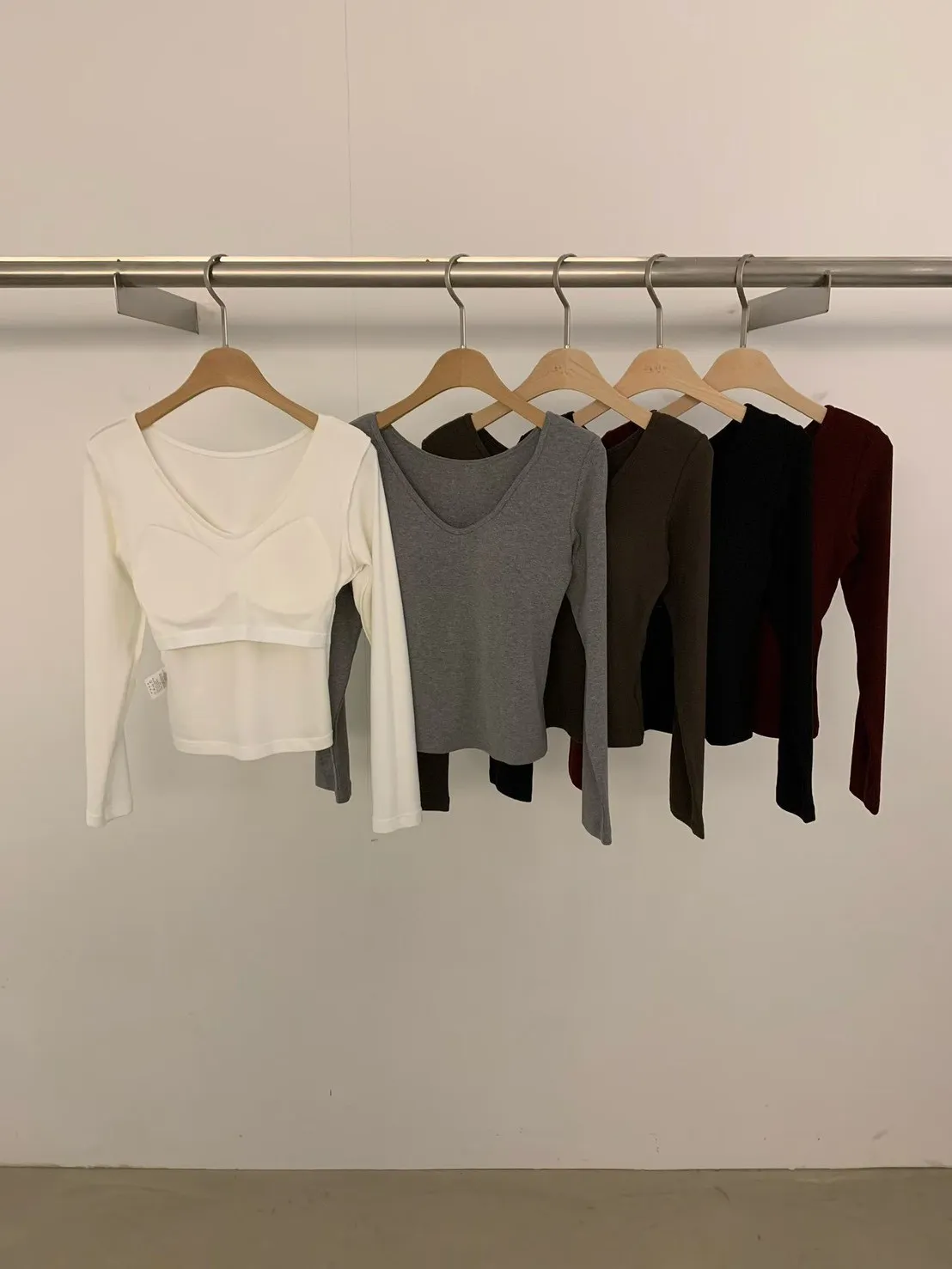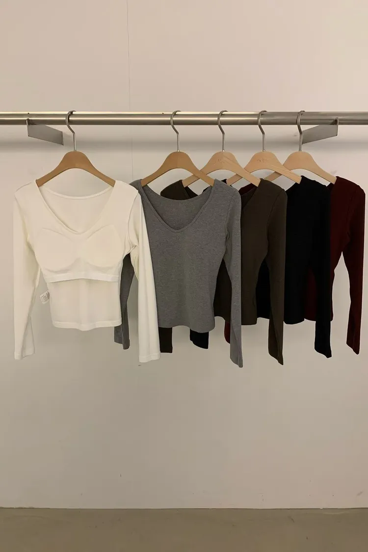 5-10胸墊長袖-V領