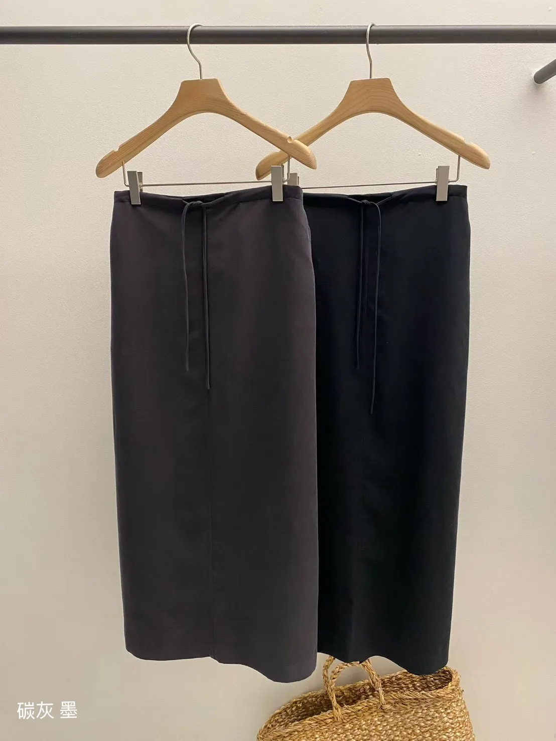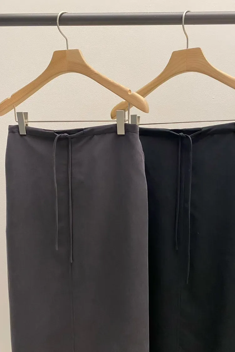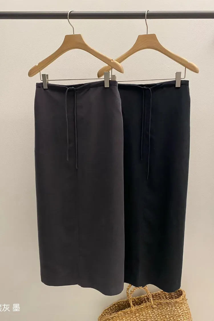 5-10鬆緊綁帶絨面長窄裙