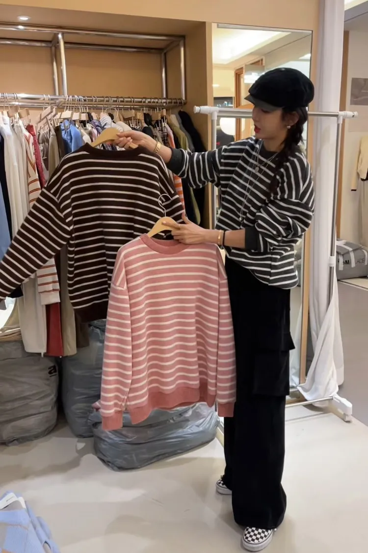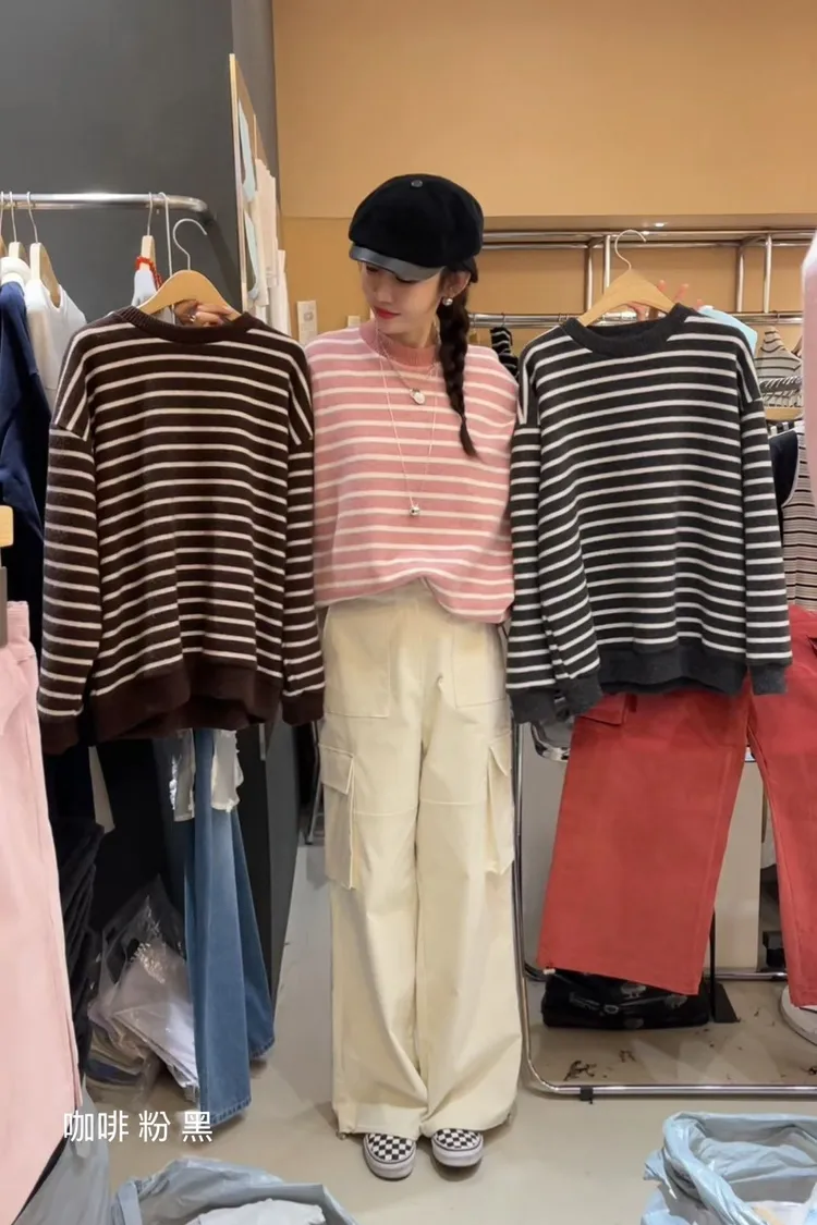 5-11圓領毛料橫條上衣 #漂亮歐膩