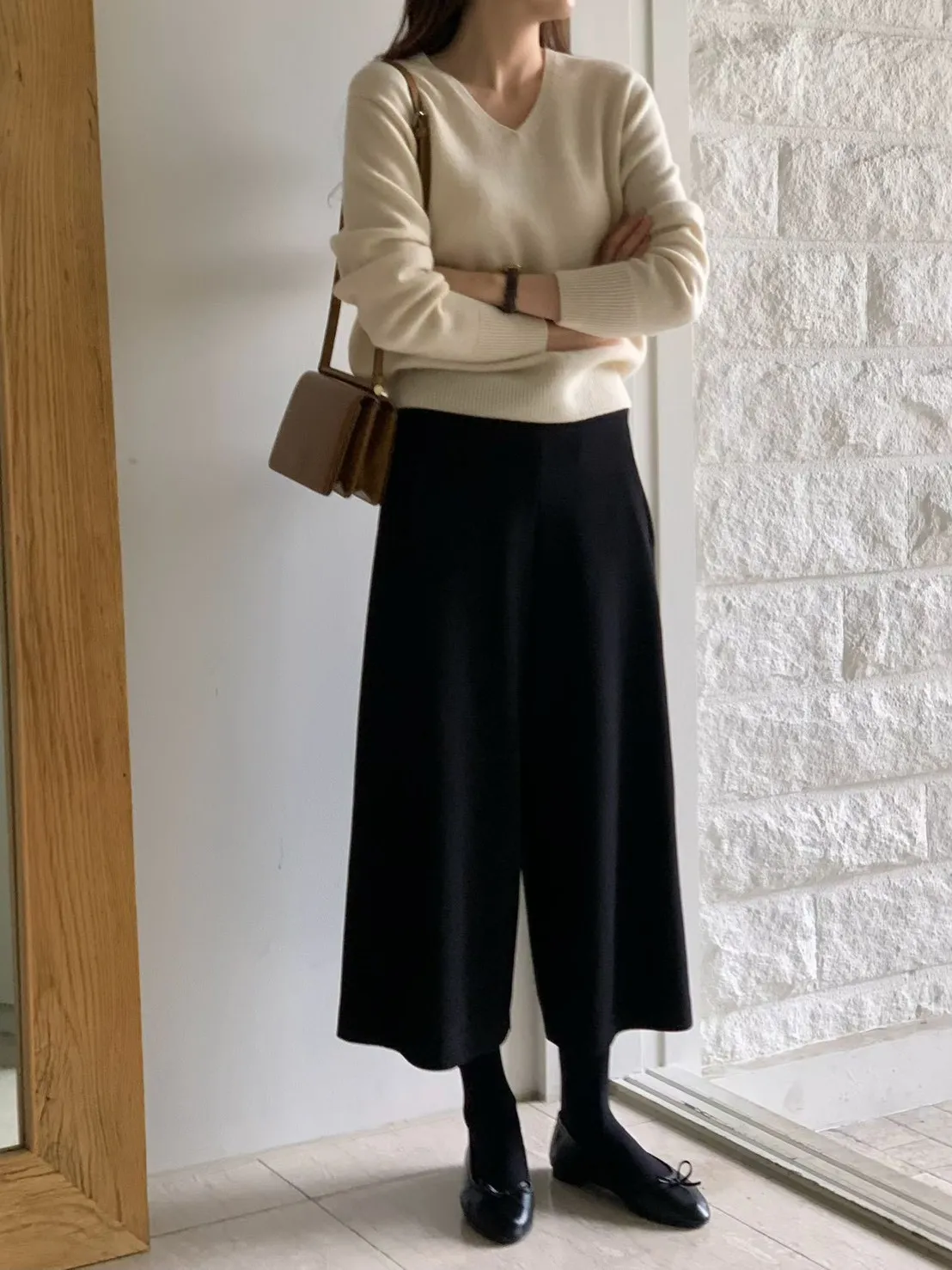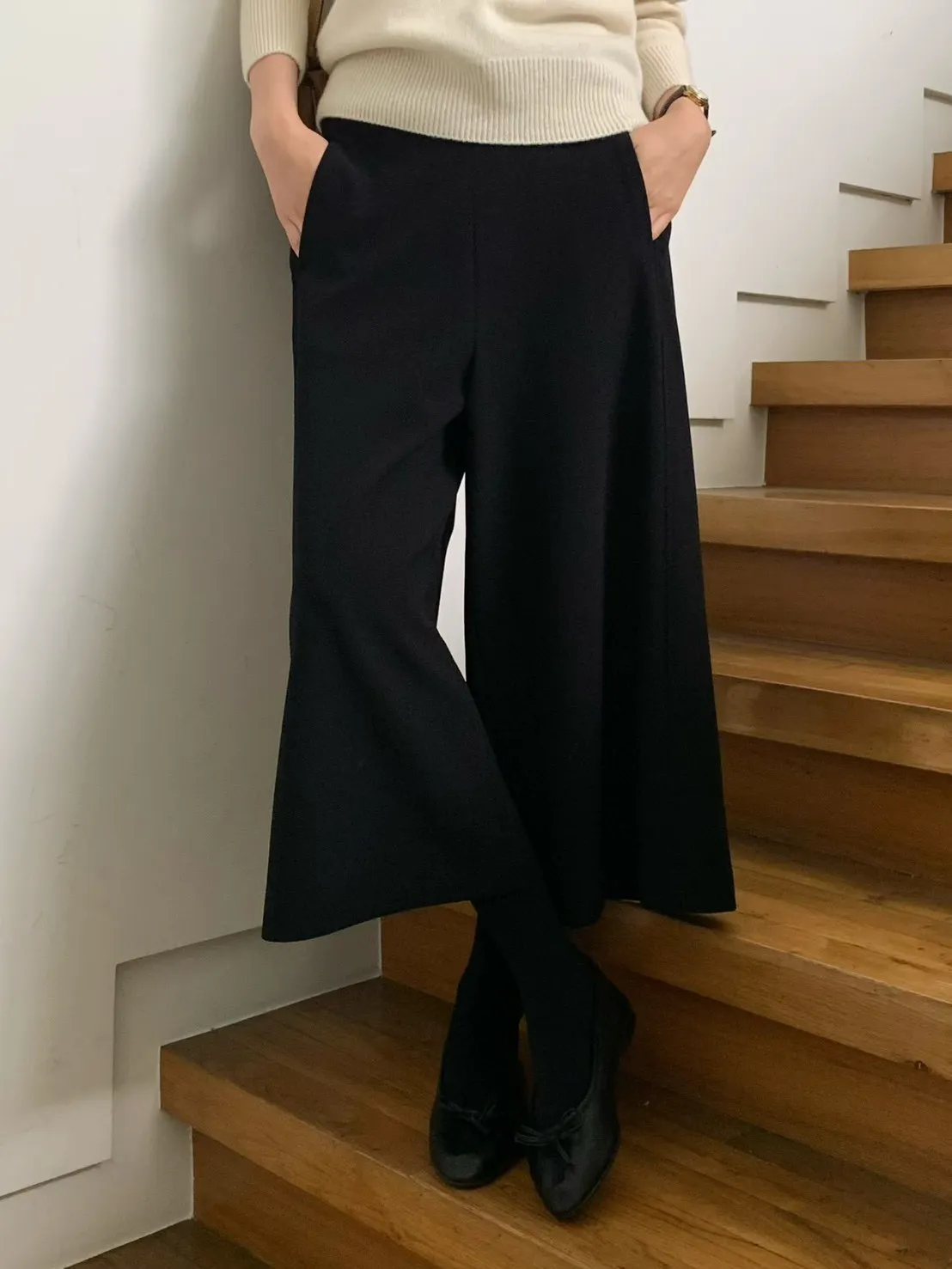 5-11西料內加絨八分寬褲 #喇叭褲店家