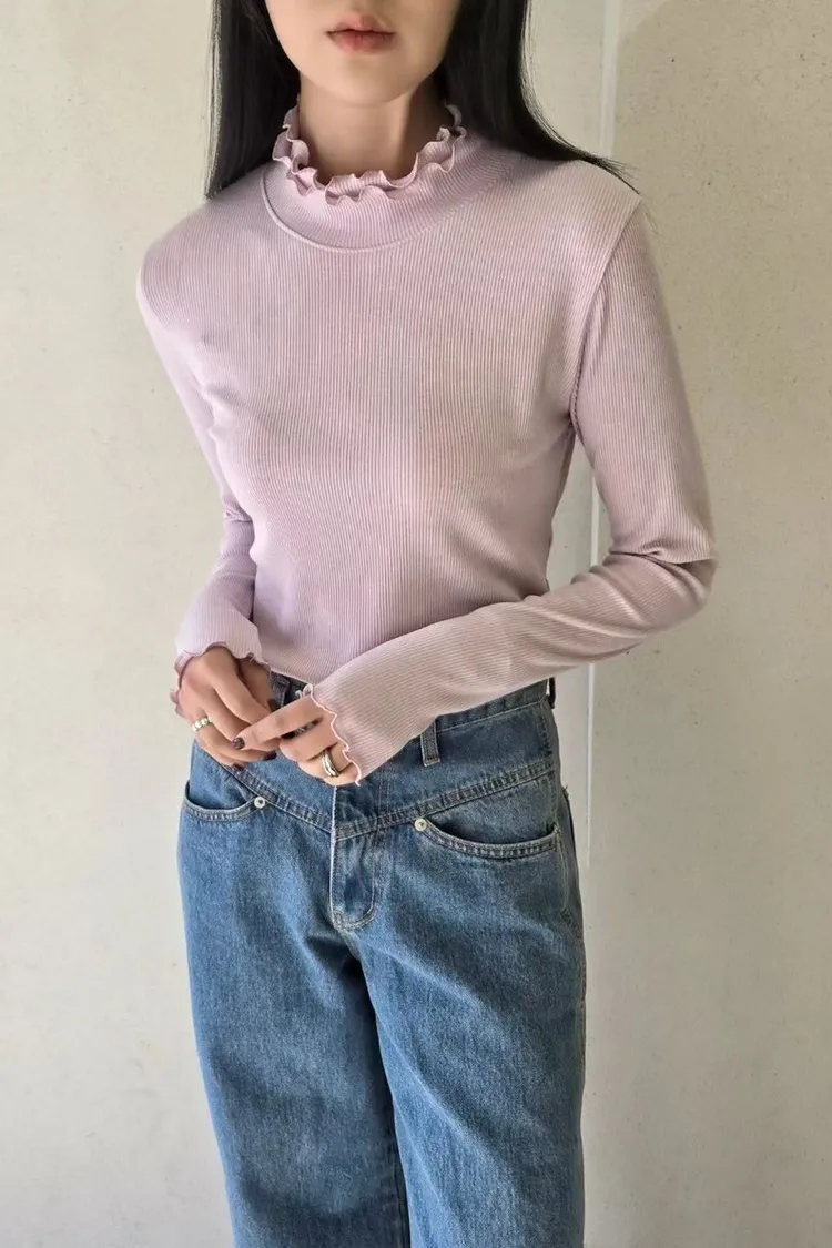 5-12雙層木耳領羅紋打底衣 512011