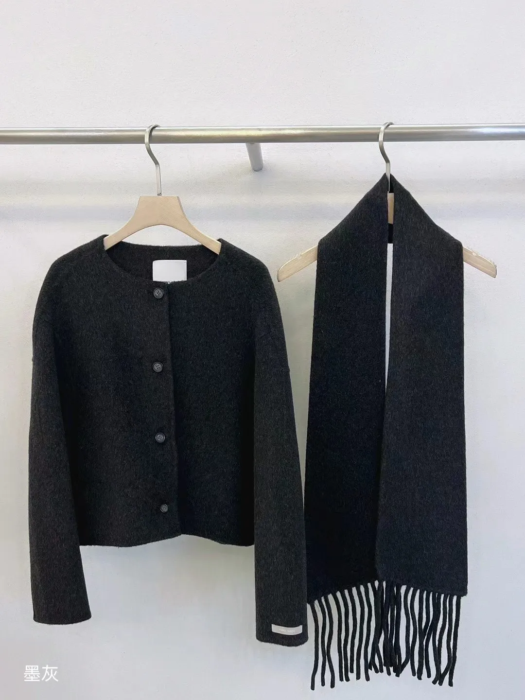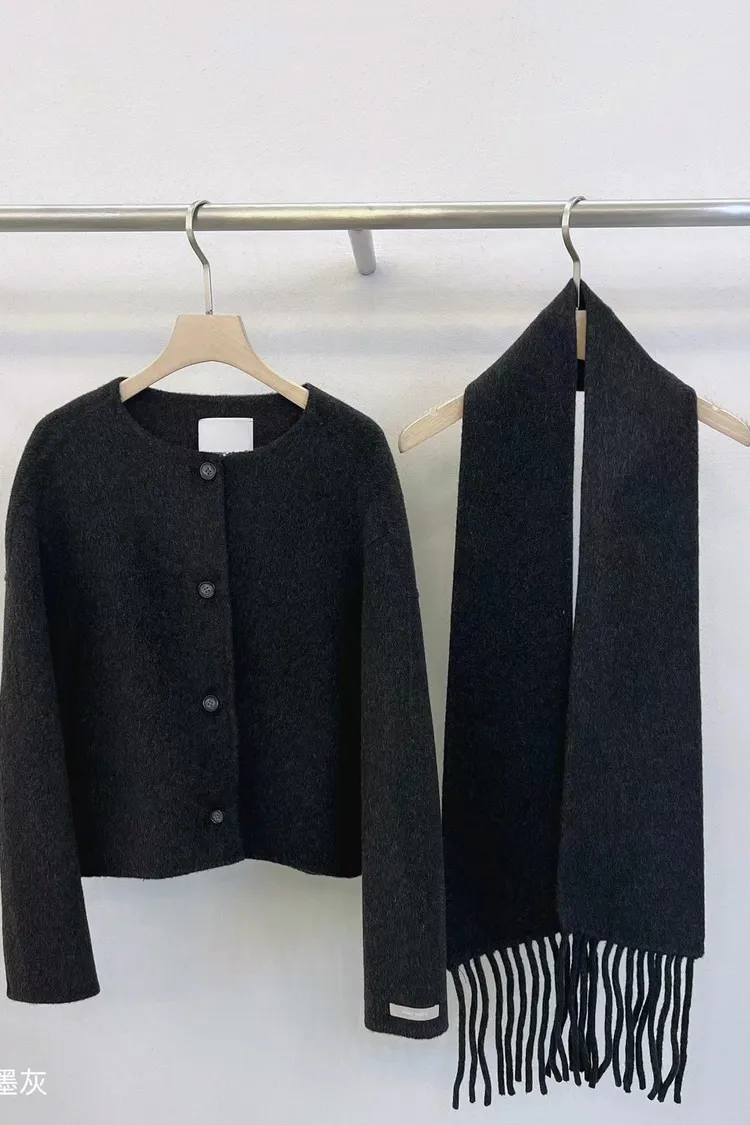 5-12圓領喀什米爾10%純羊毛短版大衣 512016