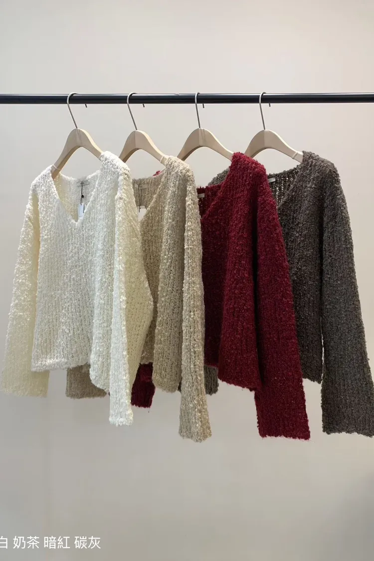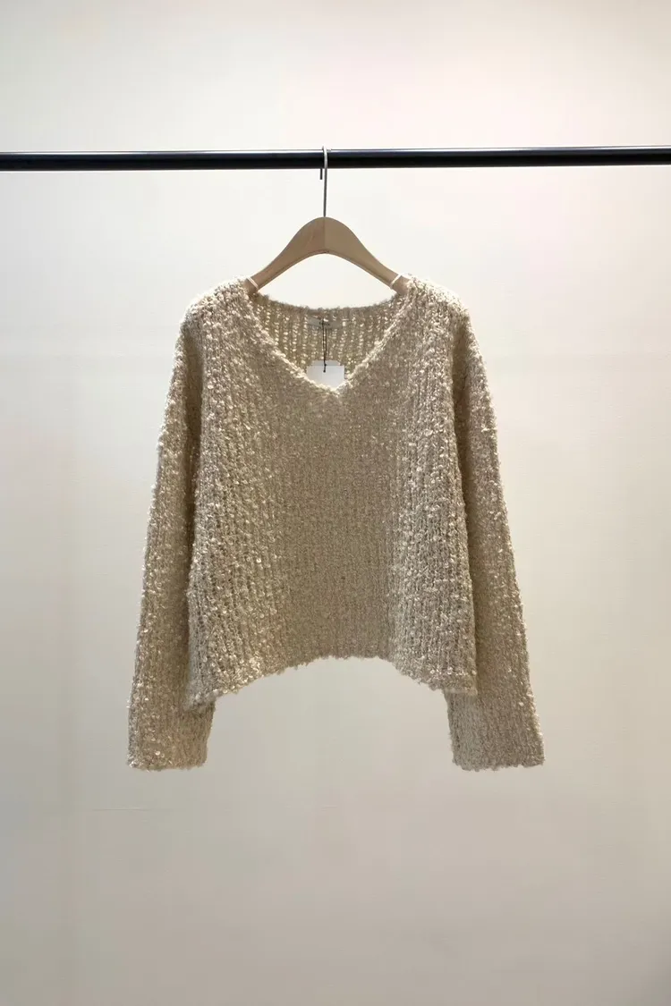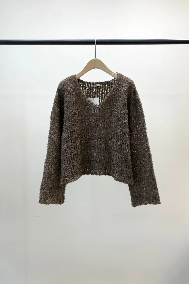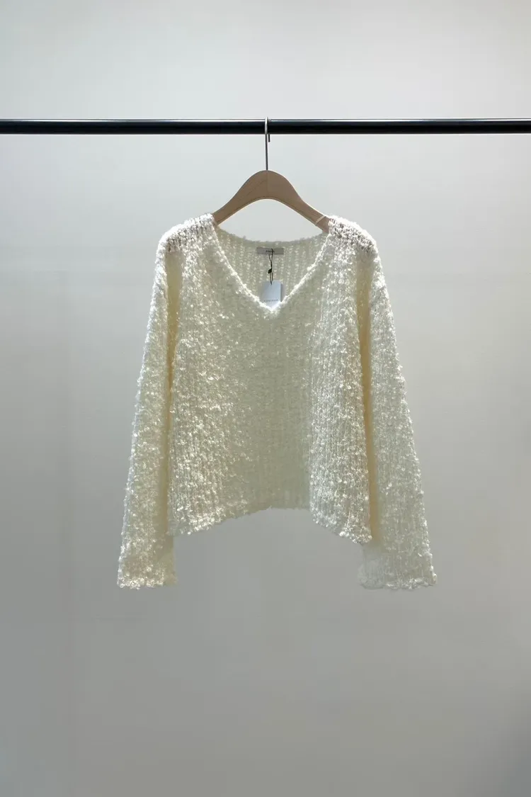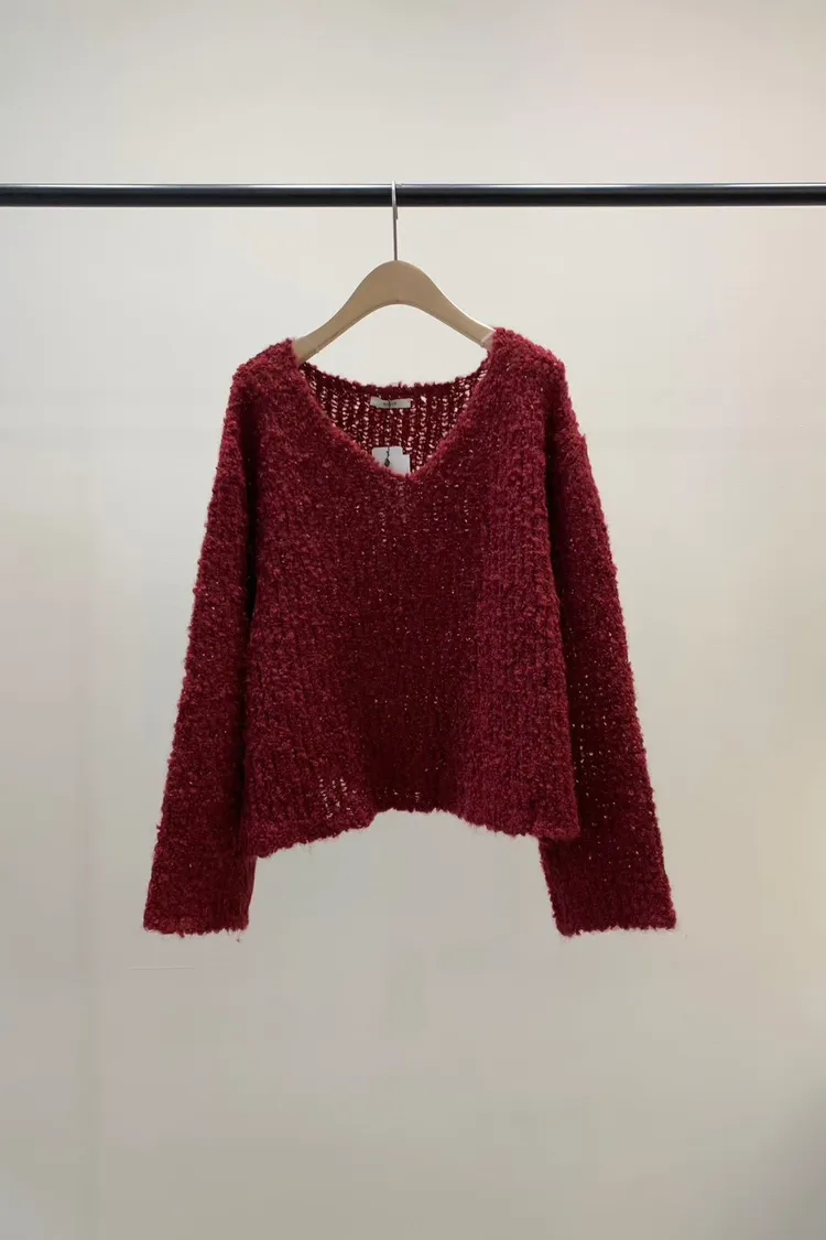 5-12寬V領鏤空捲捲羊毛上衣 512030