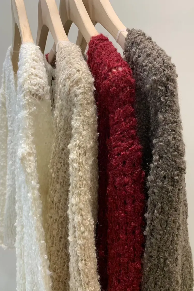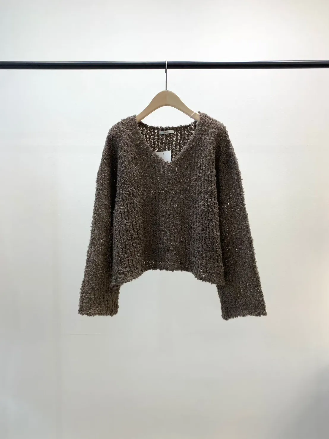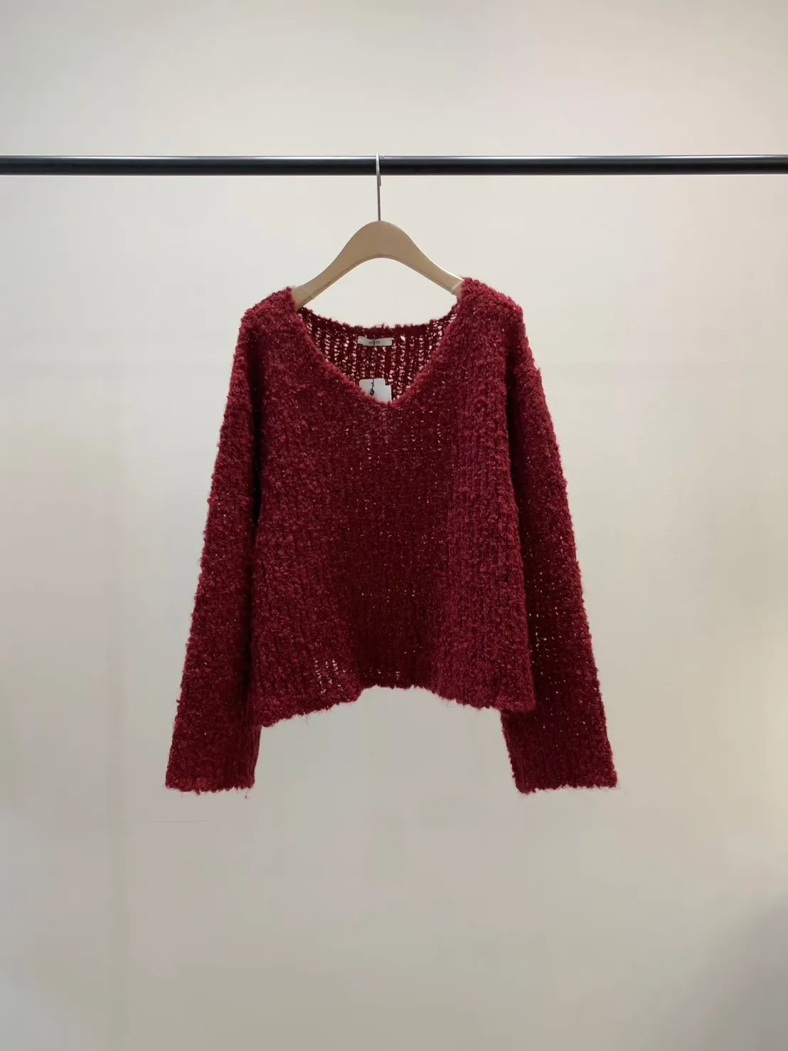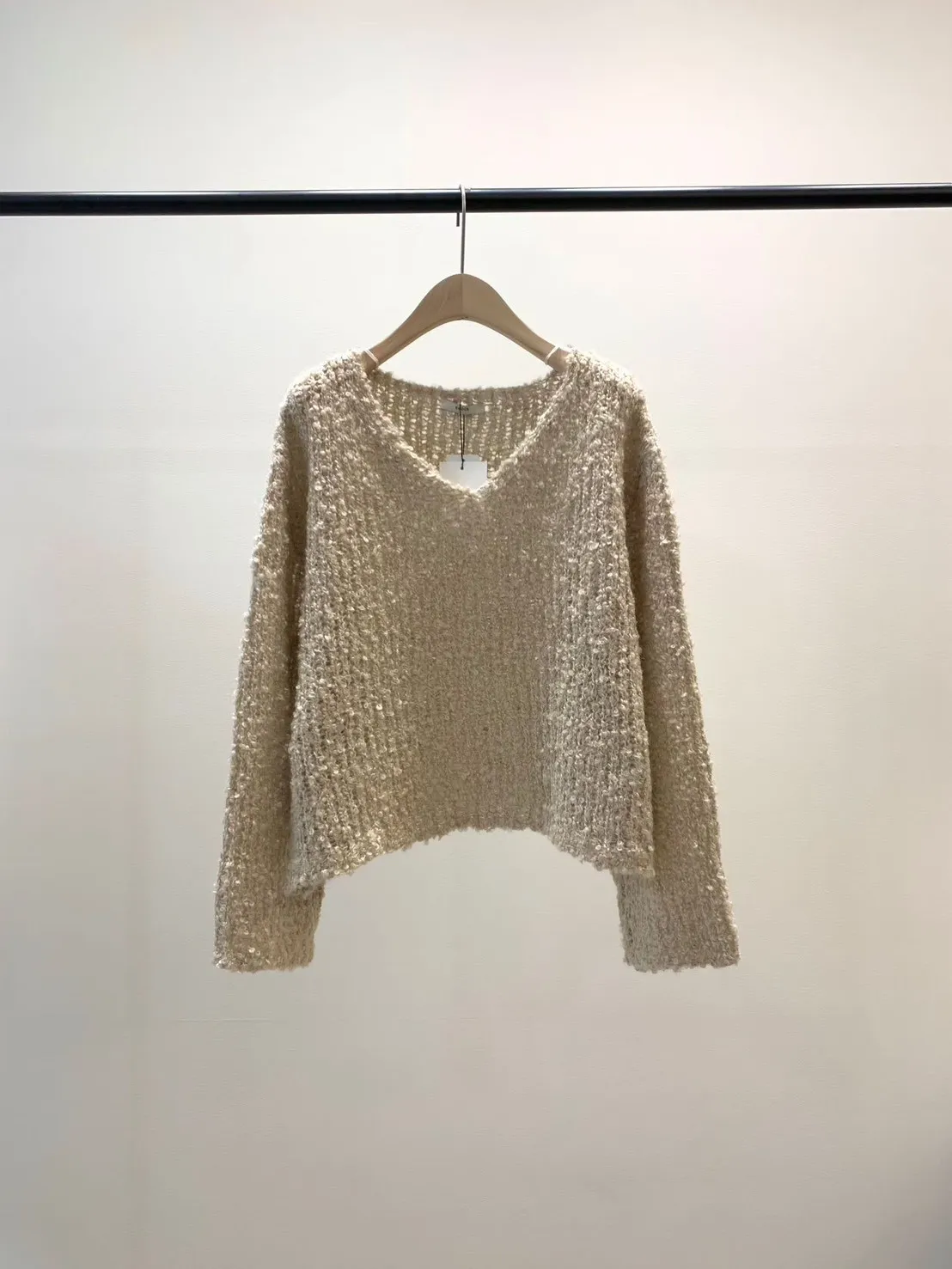 5-12寬V領鏤空捲捲羊毛上衣 512030
