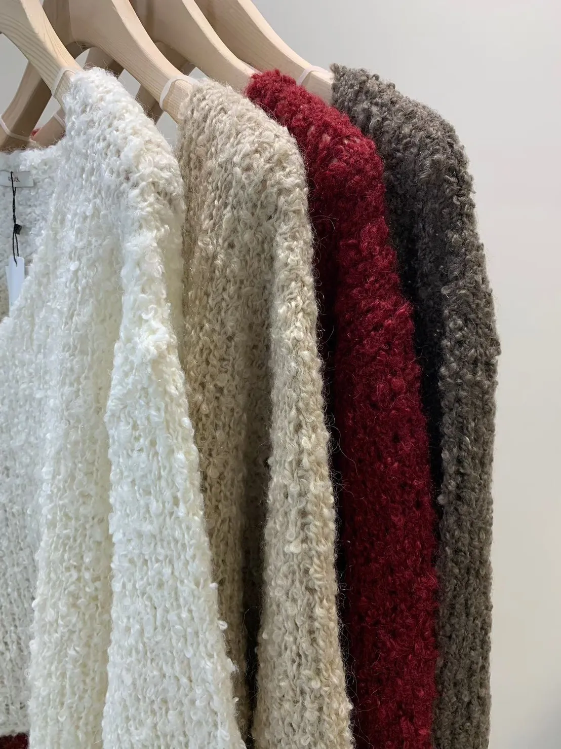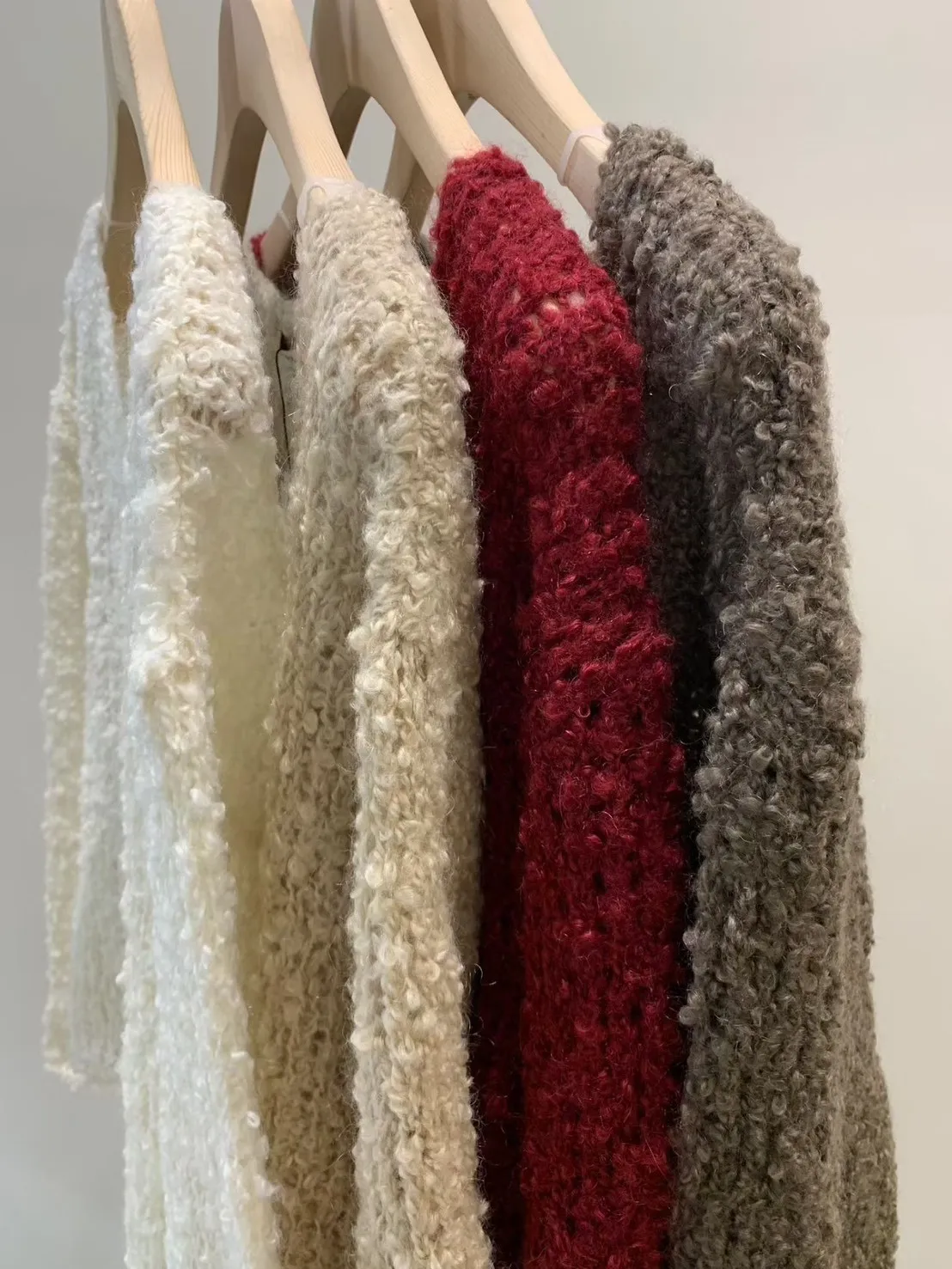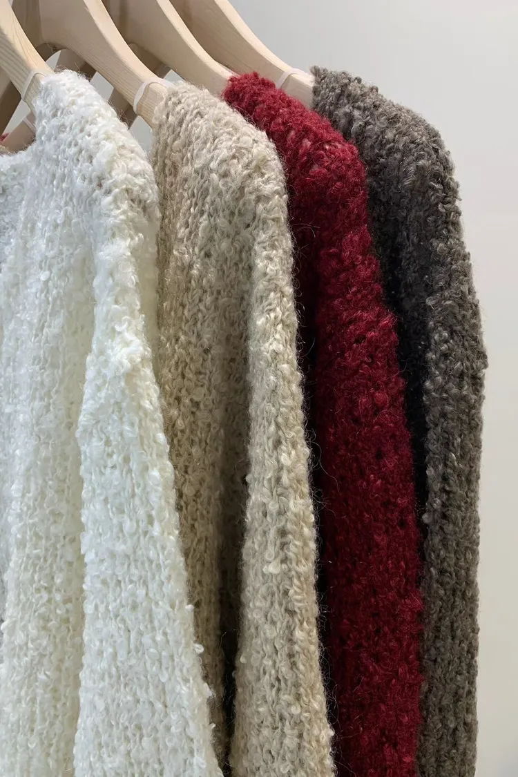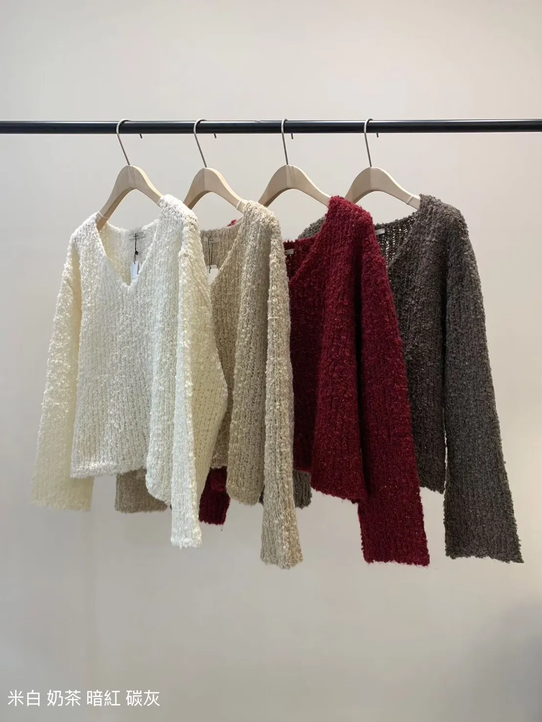 5-12寬V領鏤空捲捲羊毛上衣 512030